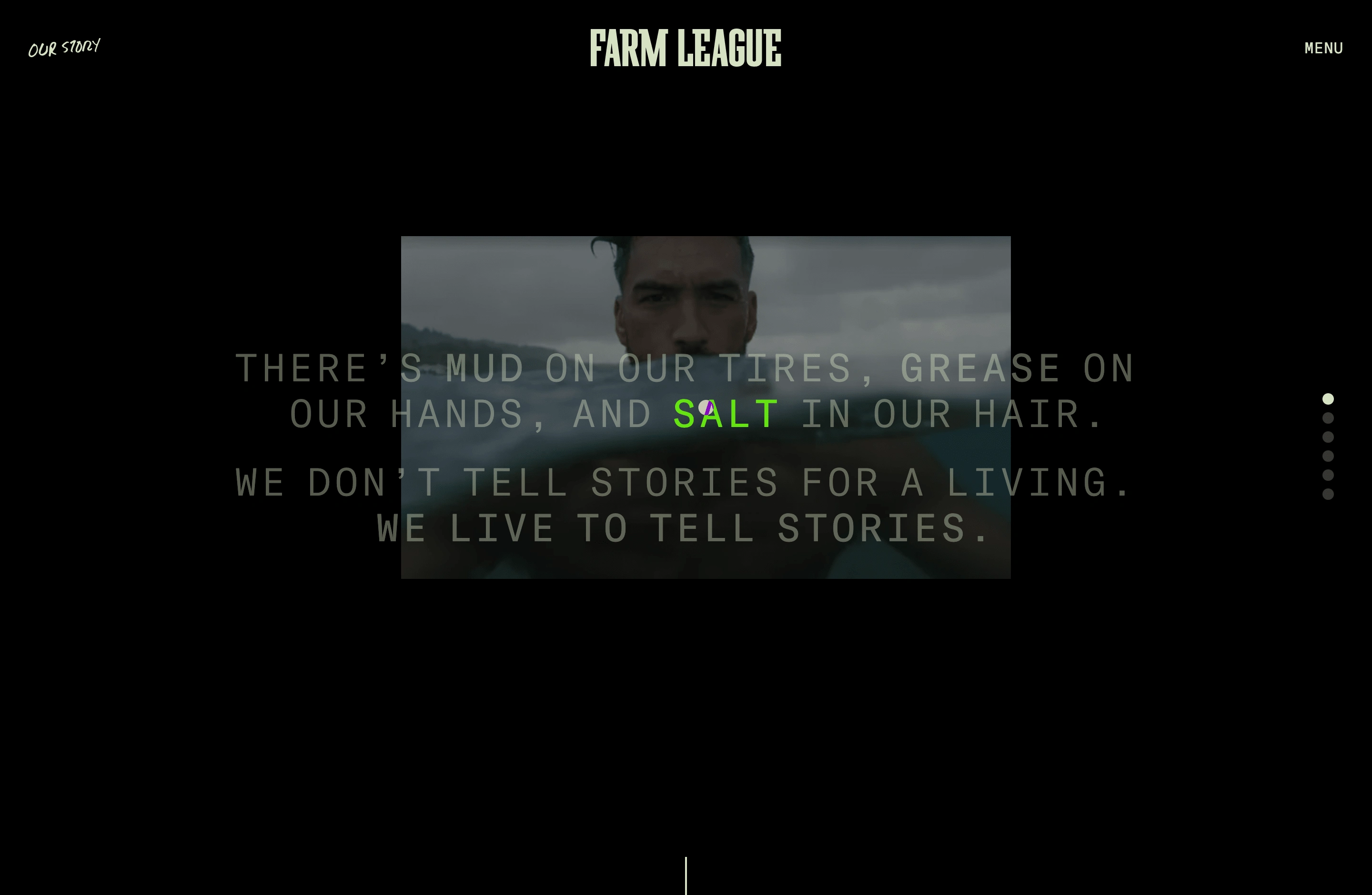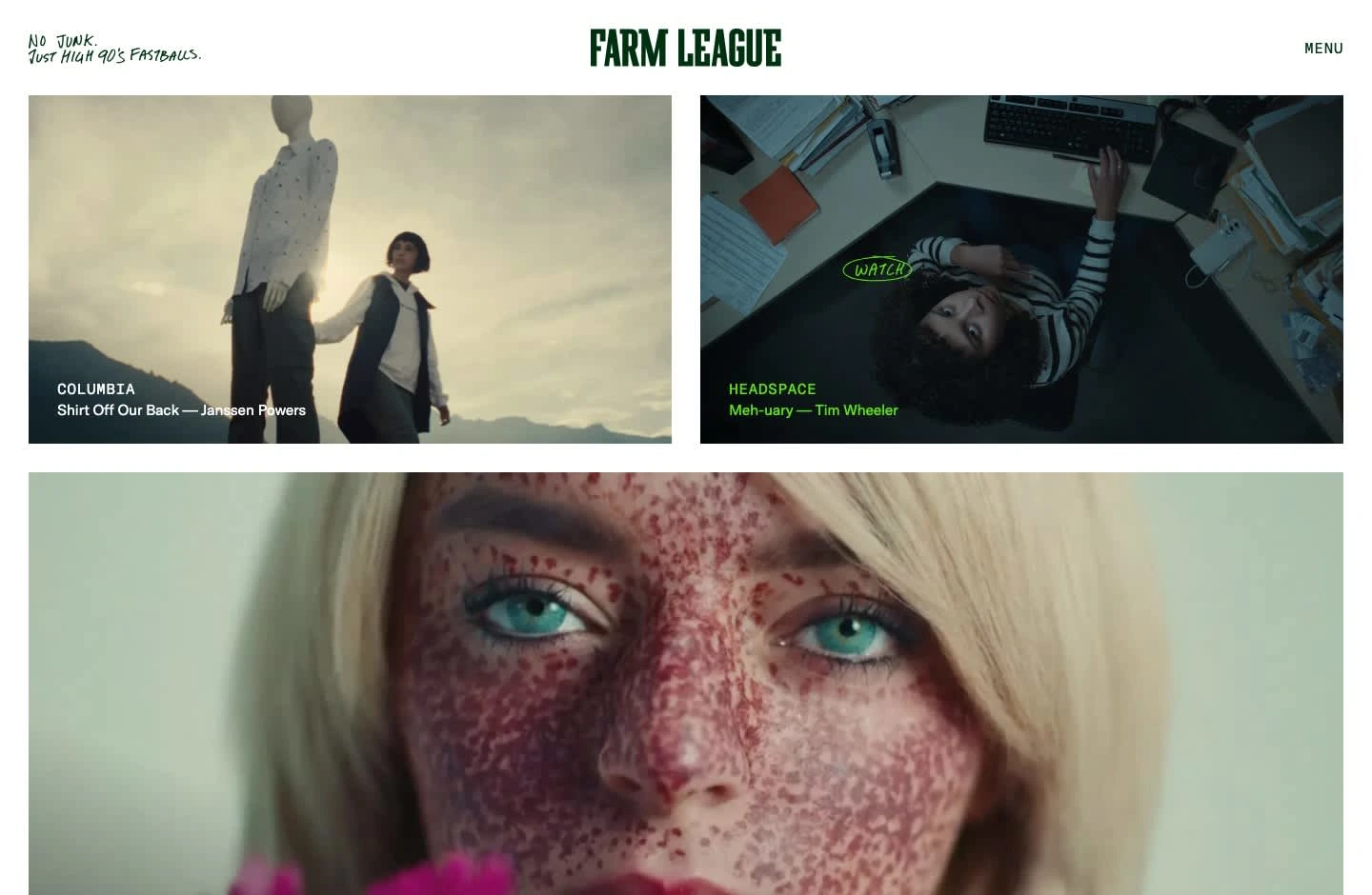 Custom portfolio website – design and development – for Farm League, a video production company.