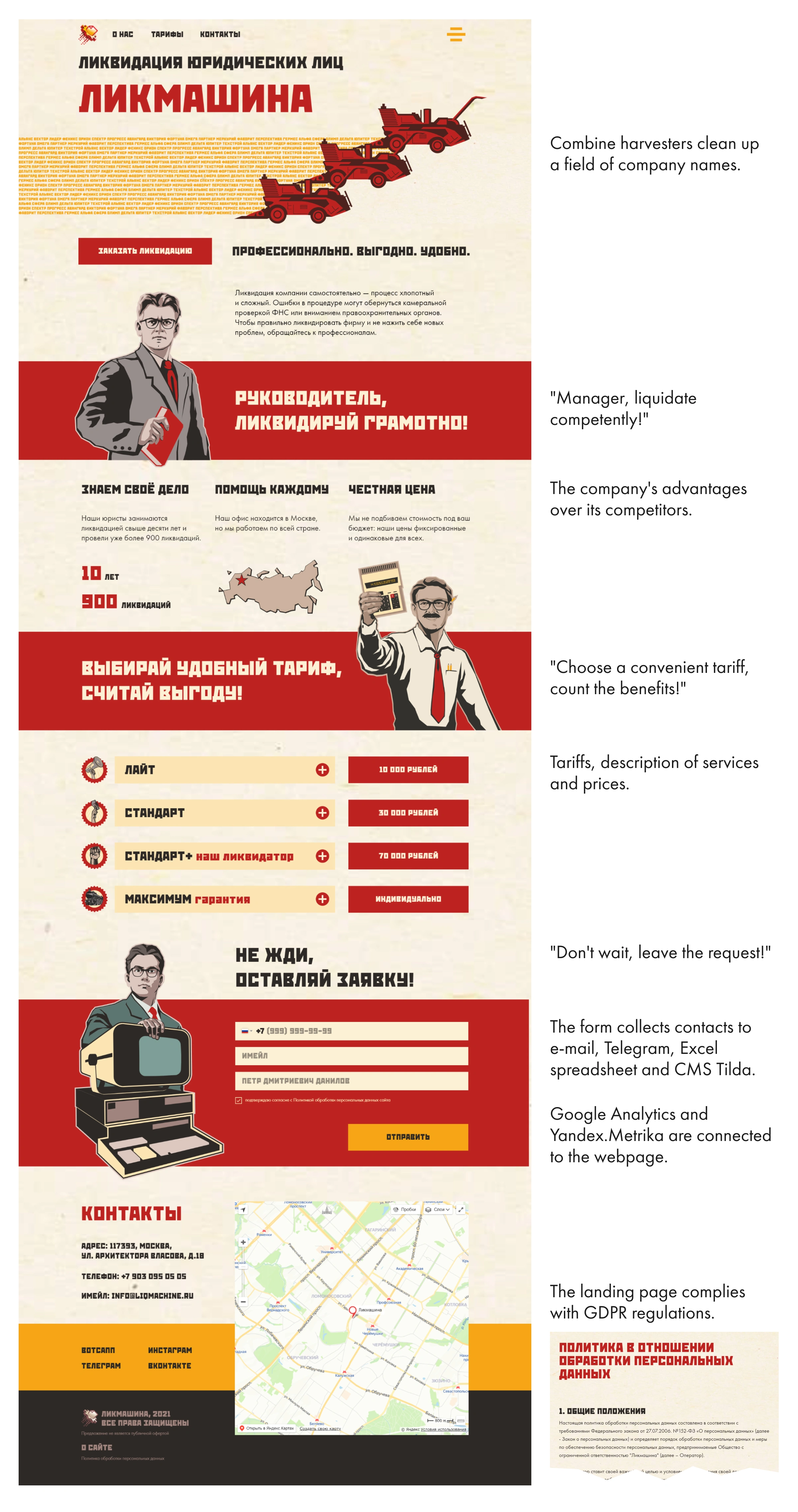 Landing page for B2B legal services, designed with a retro aesthetic and clean UX to ensure a memorable user experience and effective brand positioning.