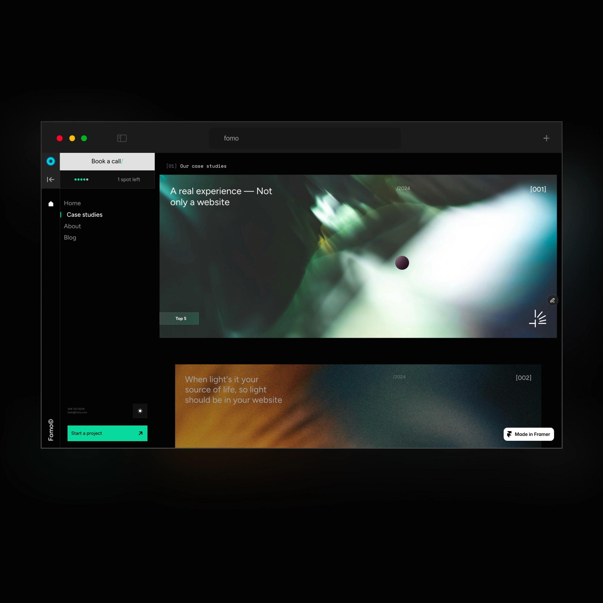 I designed and built a template for creative agencies with a strong focus on clarity, credibility, and lead generation. The content structure is intentionally simple and persuasive: hero → social proof → portfolio → process → team → insights → contact. Each section is supported by context-aware CTAs that guide the user toward booking a call or starting a project.