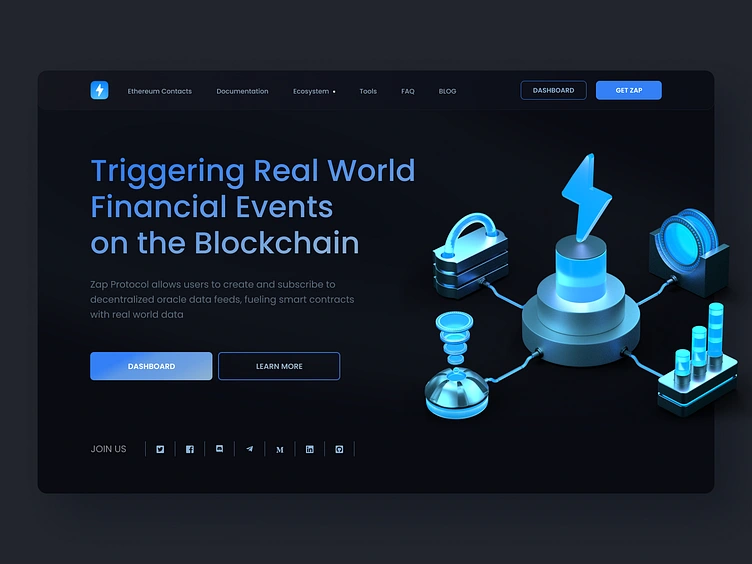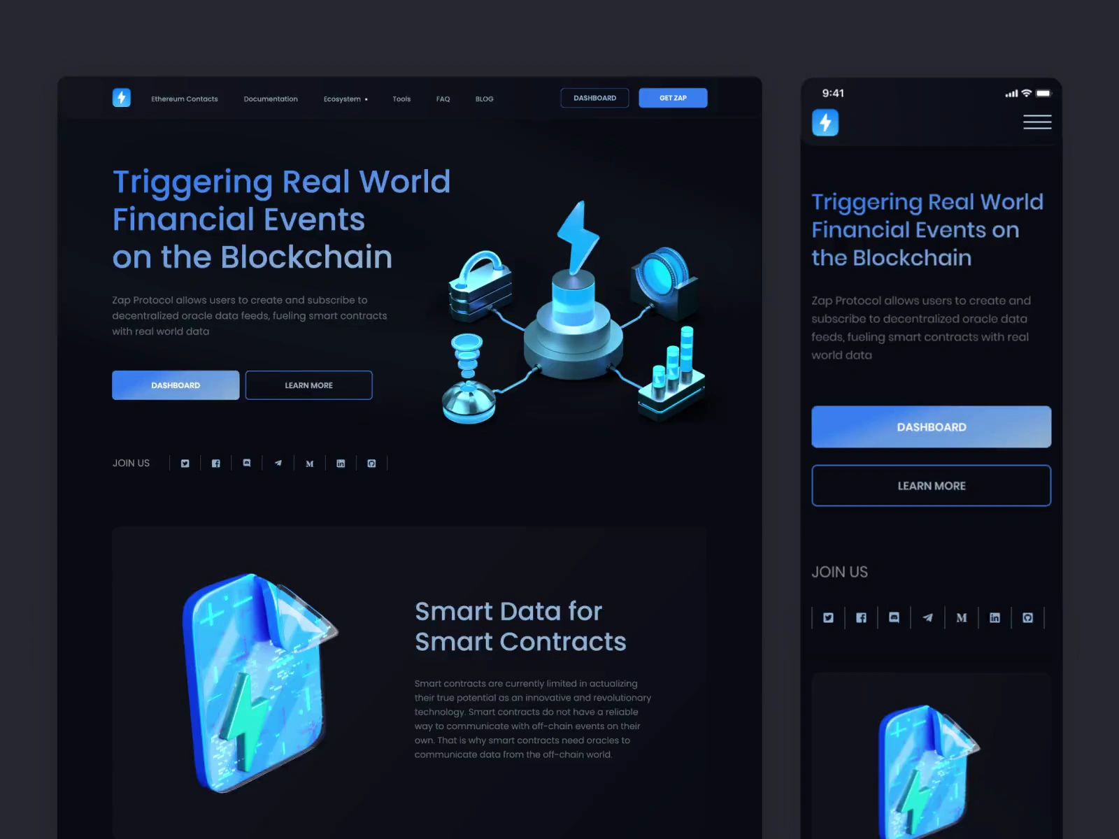 🔹 Protocol Overview & Storytelling: Hero section that explains how Zap connects smart contracts to real-world data, with clear CTAs to the dashboard and docs.