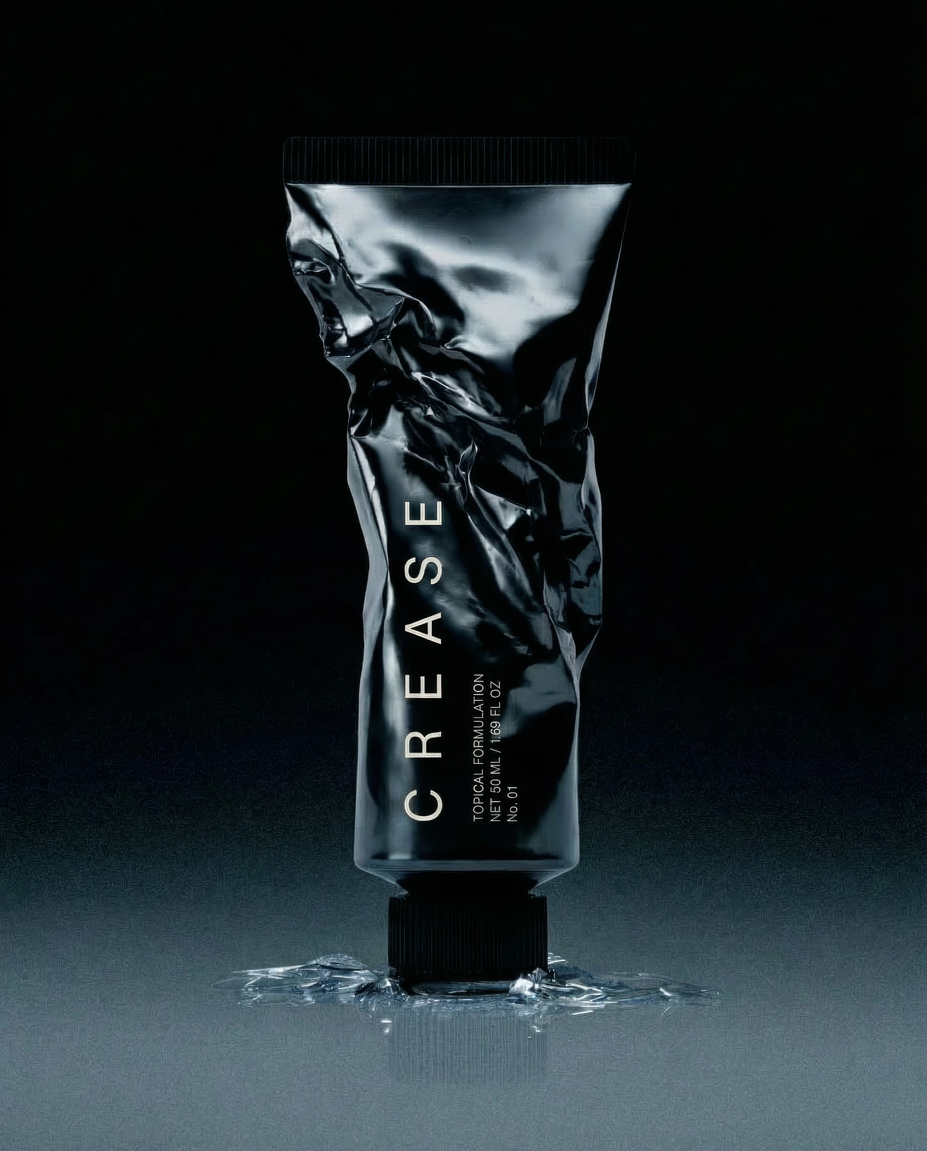 C R E A S E is a speculative dermal skincare brand developed to explore launch-level visual systems rooted in tension, pressure, and surface interaction. The visuals emphasize macro texture, material deformation, and controlled contrast to create a clinical yet cinematic brand world.