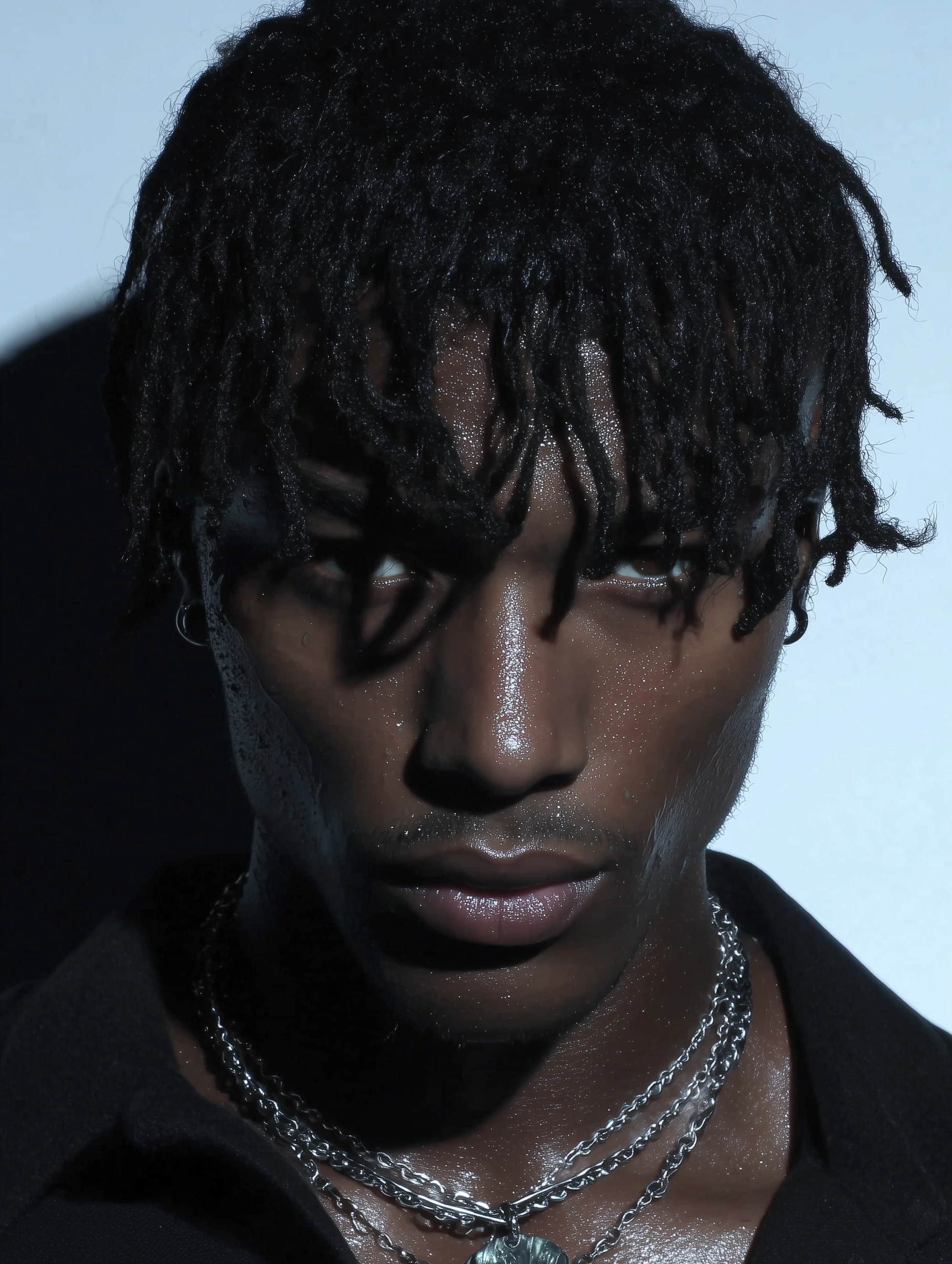 Skin-focused portrait emphasizing texture, moisture, and controlled tension.