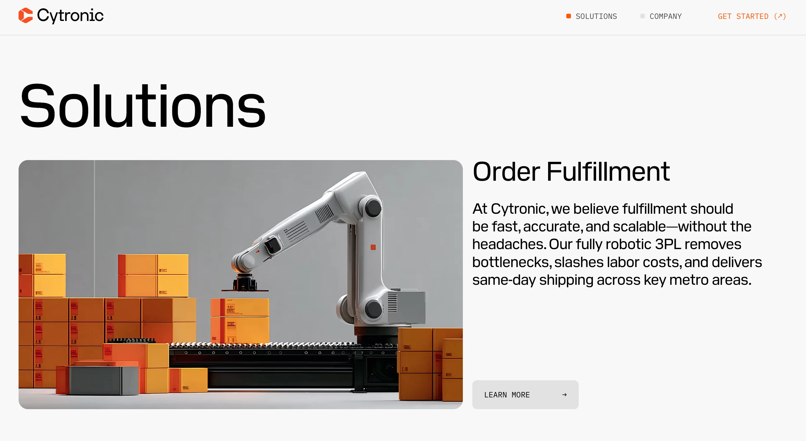 Cytronic is redefining the future of fulfillment by eliminating human inefficiencies entirely. Their automated, location-optimized micro-fulfillment network runs like software — always on, infinitely scalable, and relentlessly precise. With robots picking, packing, and shipping orders nonstop at 99%+ accuracy, Cytronic cuts fulfillment costs by up to 80% and delivers same-day within a 40-mile radius — all without extra fees or delays.