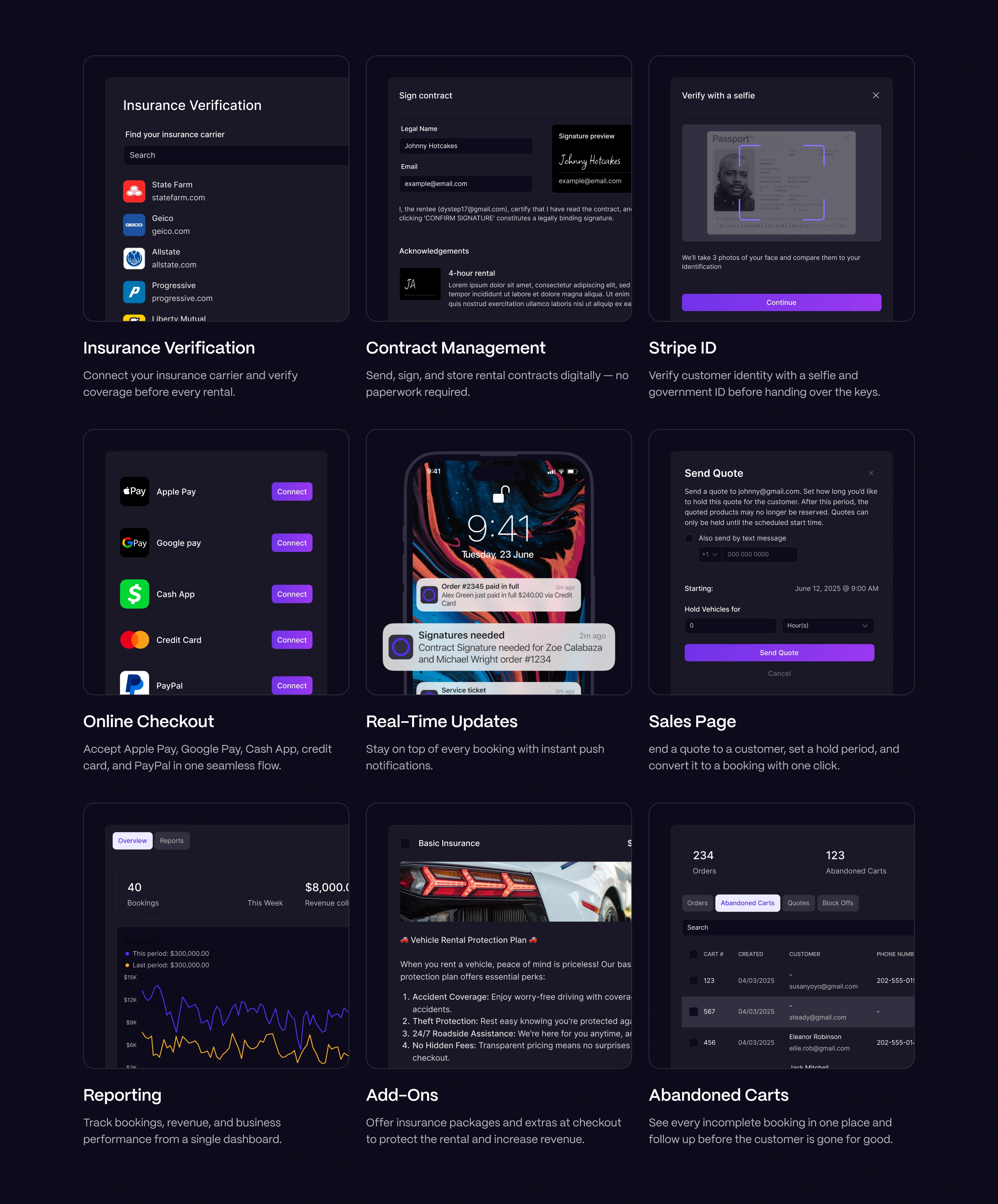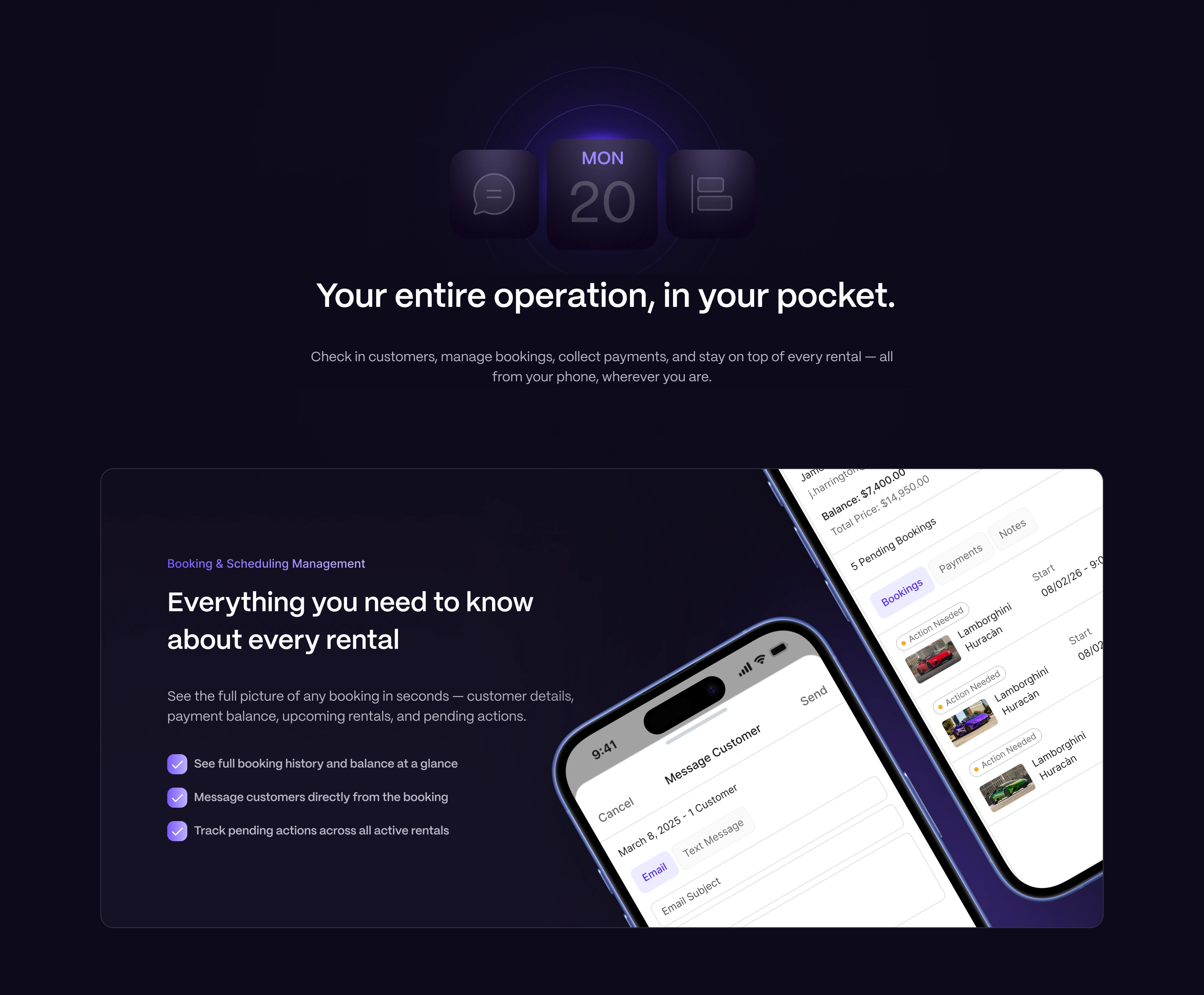 A marketing website for a full-stack rental management platform. The product handles everything from listings and payments to fleet tracking and customer interactions — built for businesses managing anything from apartments to car fleets.