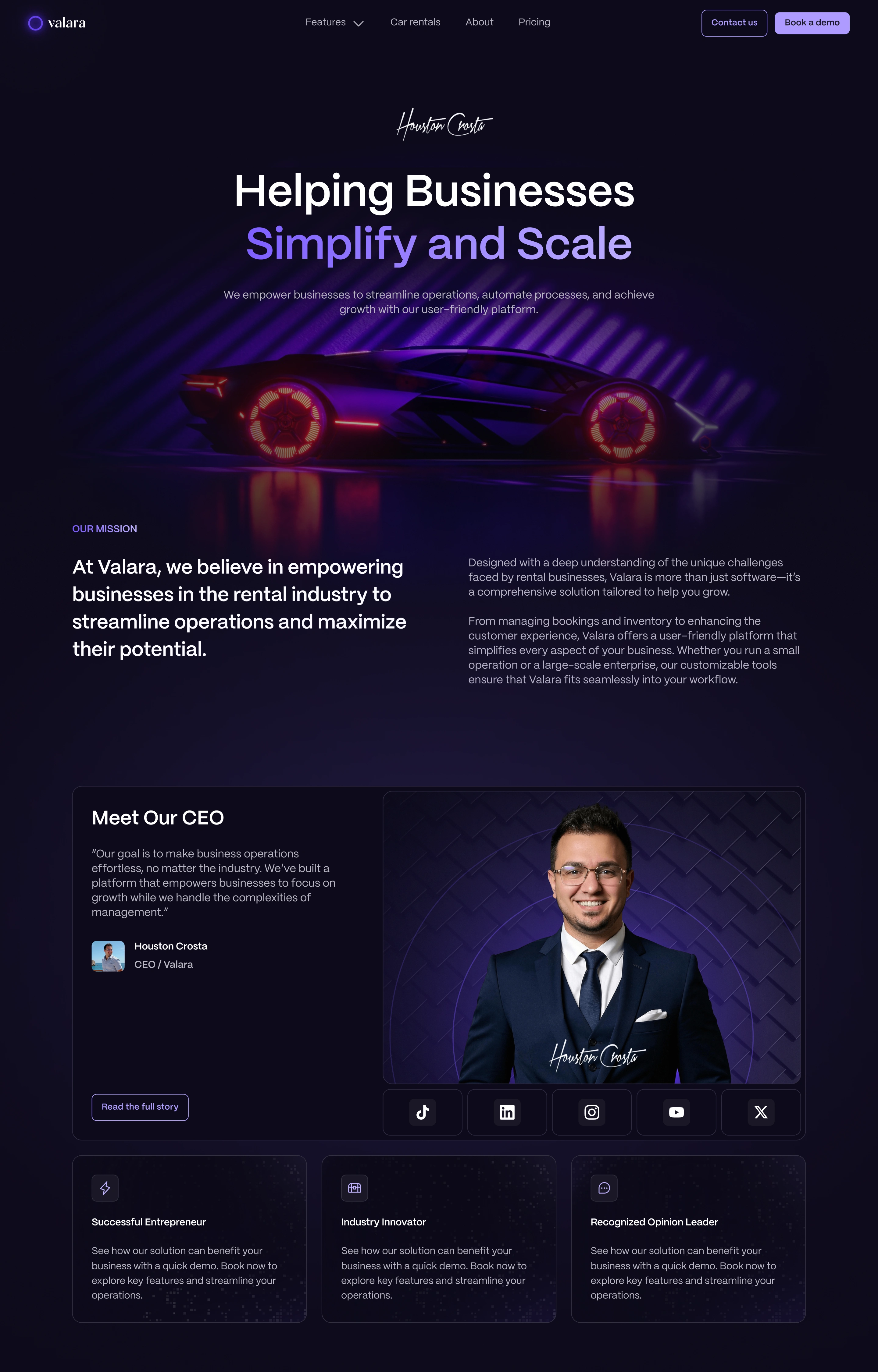 Valara is a full-stack rental management platform serving everyone from independent hosts to large fleet operators. The website needed to make a deeply complex, multi-vertical product feel immediately clear and compelling — without oversimplifying it.