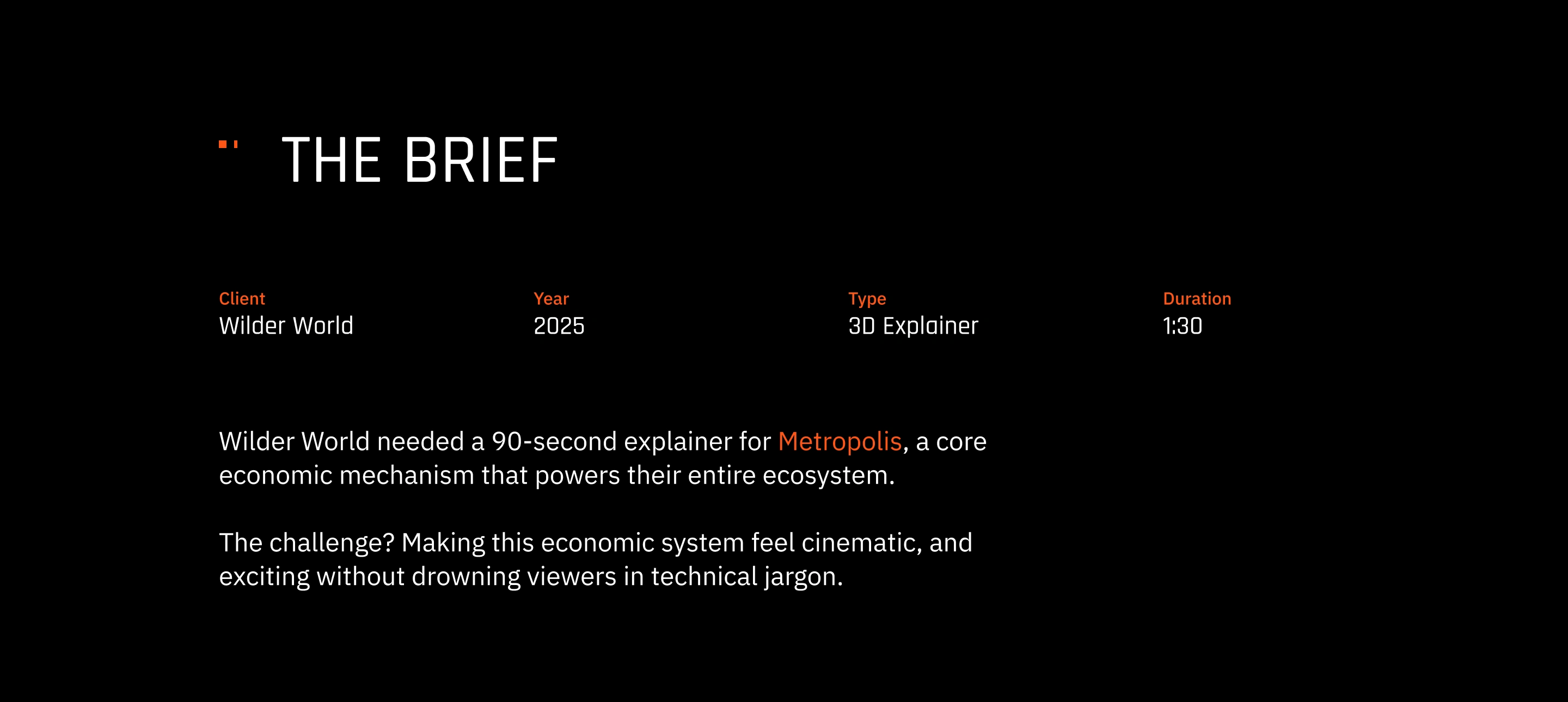 Wilder World needed a 90-second explainer for Metropolis, a core economic mechanism that powers their entire ecosystem.