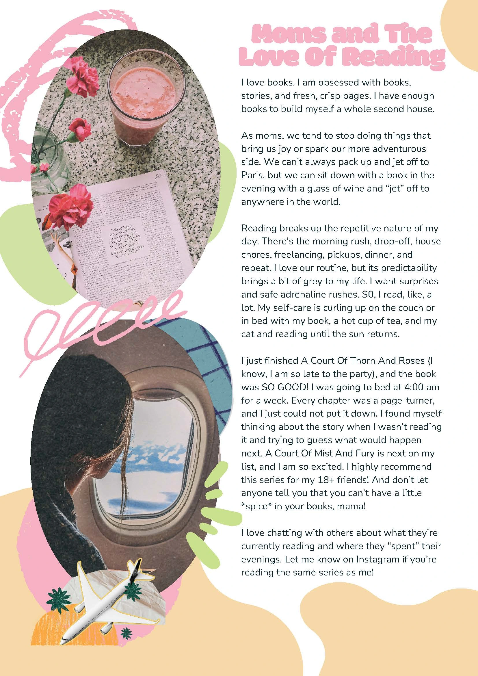 Lifestyle article for moms who love books, cozy vibes, and a little spice, written in a fun, relatable voice to feel like a DM from a best friend. ✨