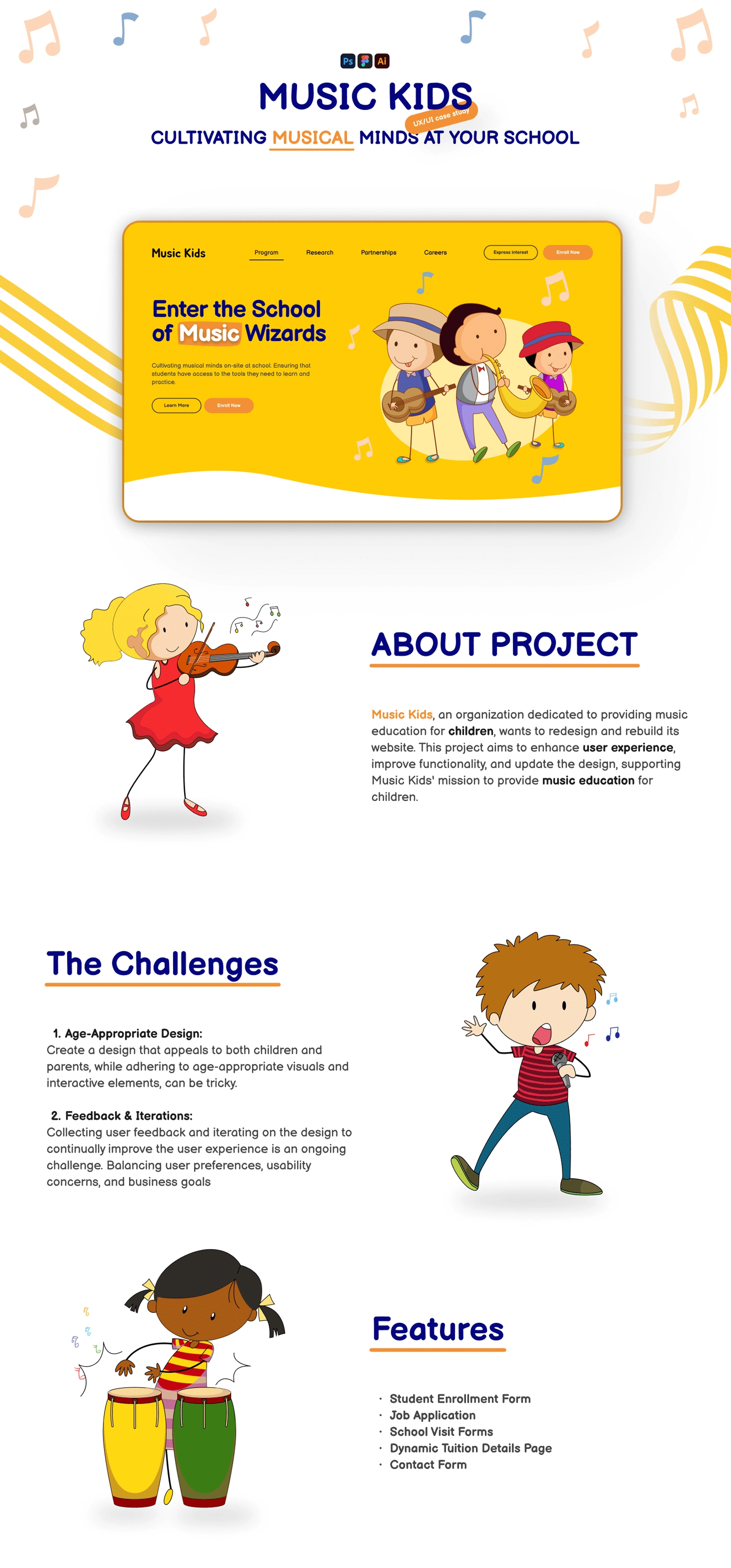 Our design focused on creating a fun, intuitive, and interactive experience that encourages creativity and learning through songs, dances, and musical activities.
