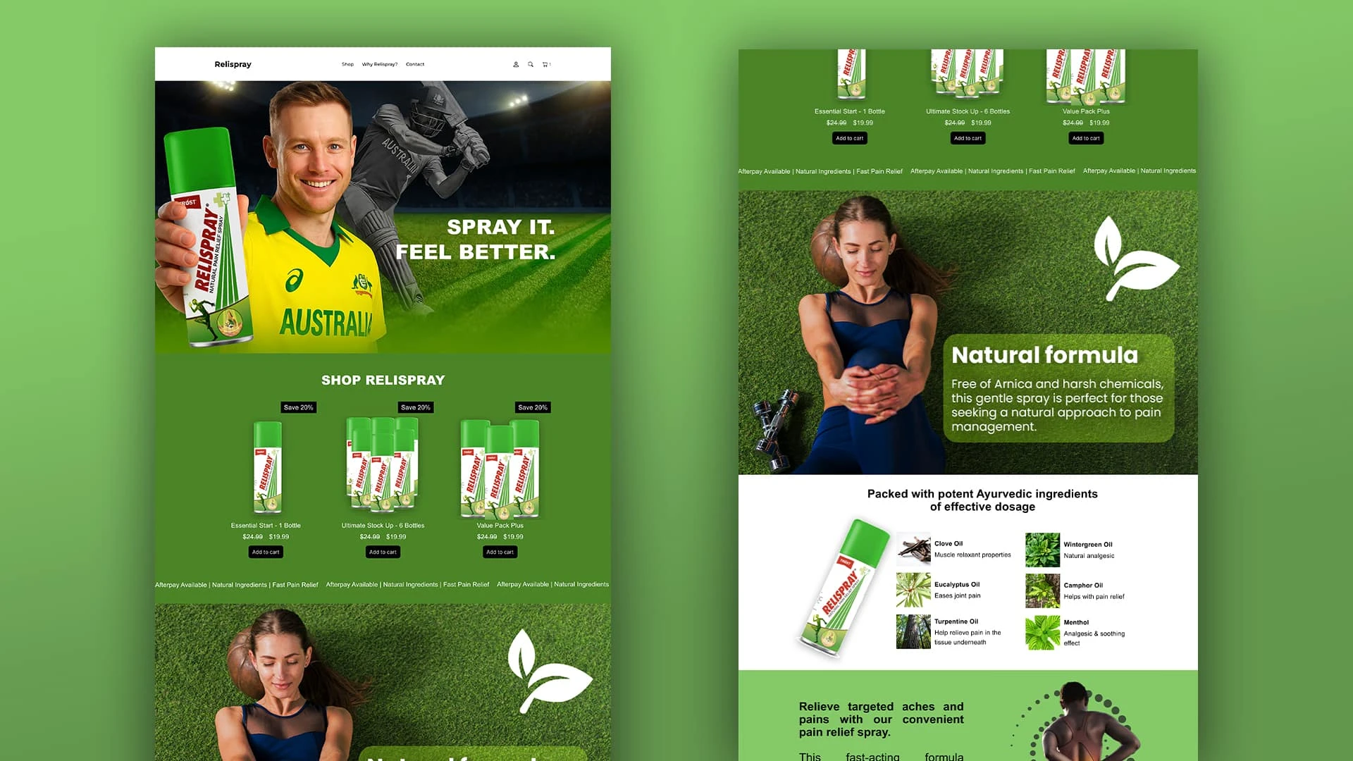 Added a sticky note bar: “Afterpay Available | Natural Ingredients | Fast Pain Relief.”