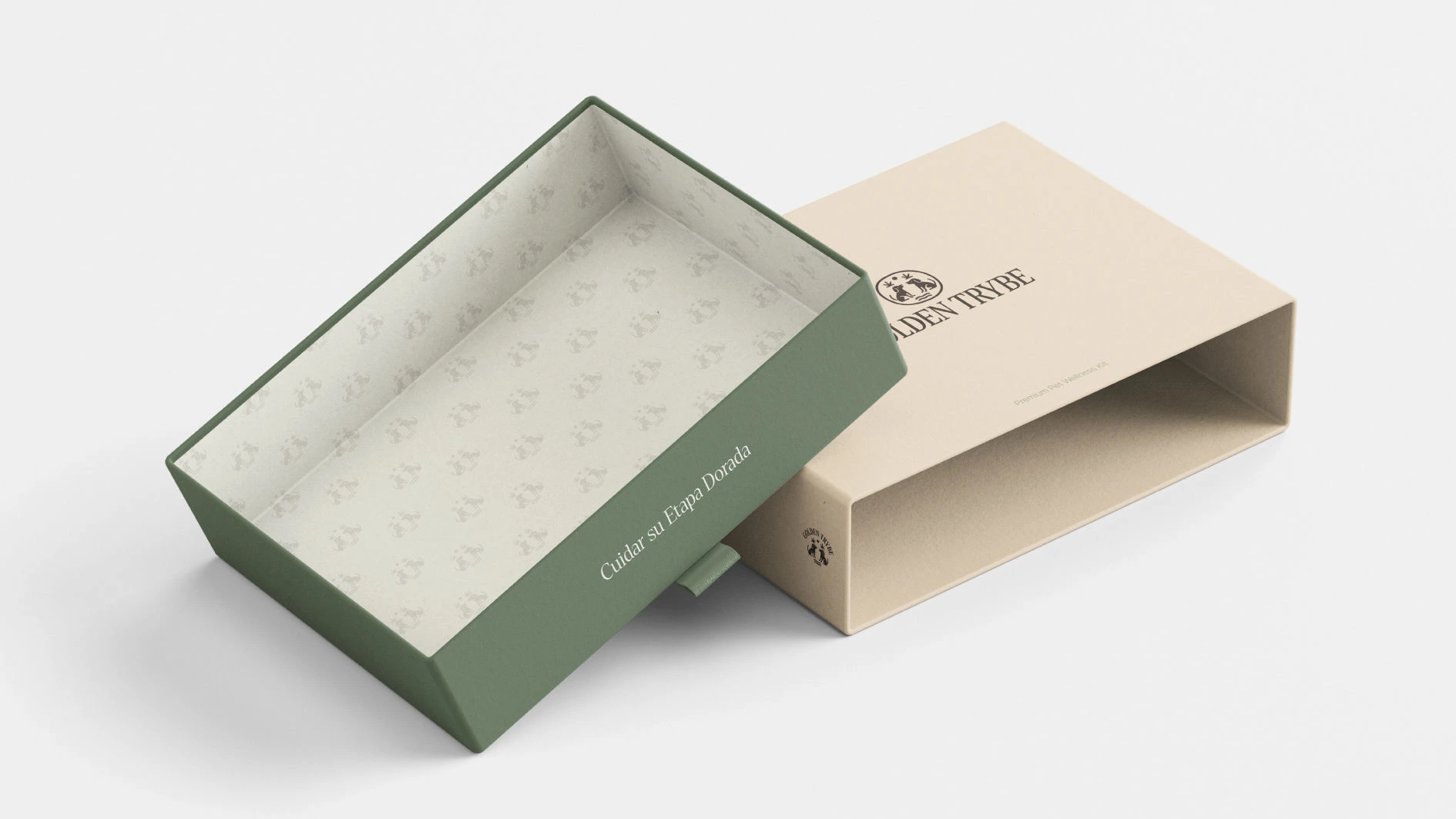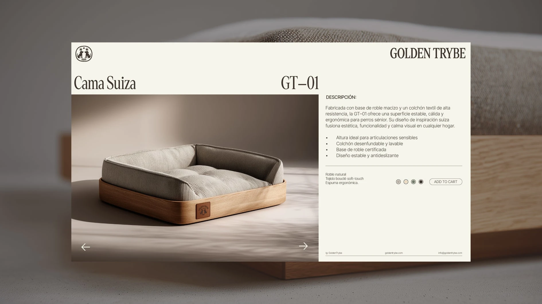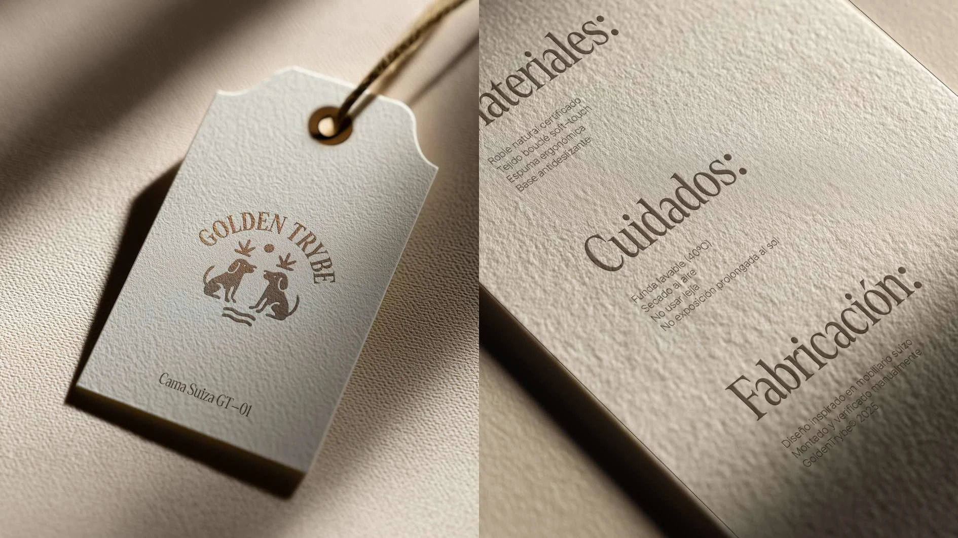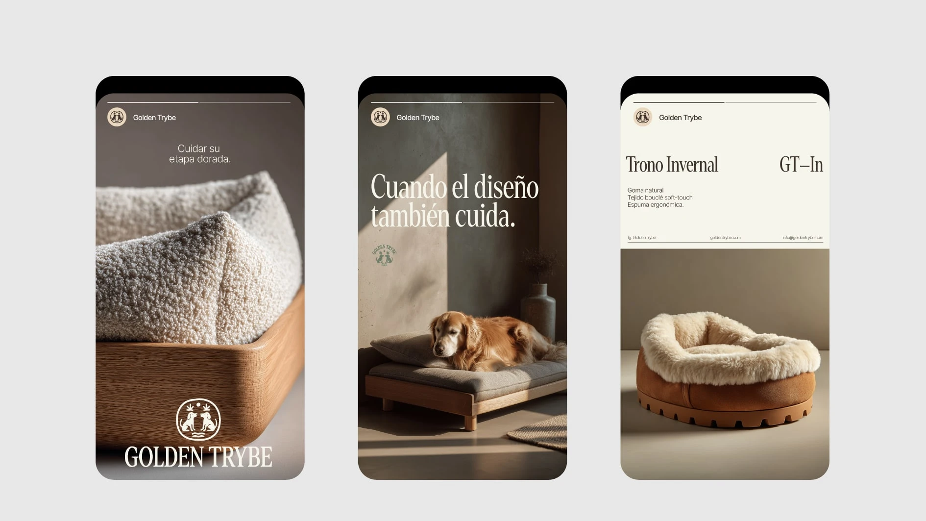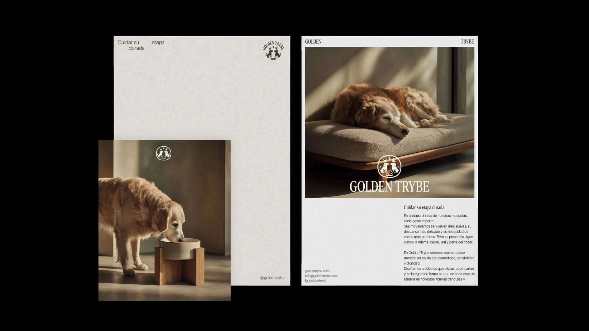 Premium identity system for Golden Trybe, crafted to bring calm, dignity and tactile design to senior dogs through Swiss-inspired visuals and warm storytelling.