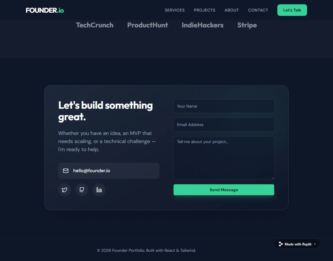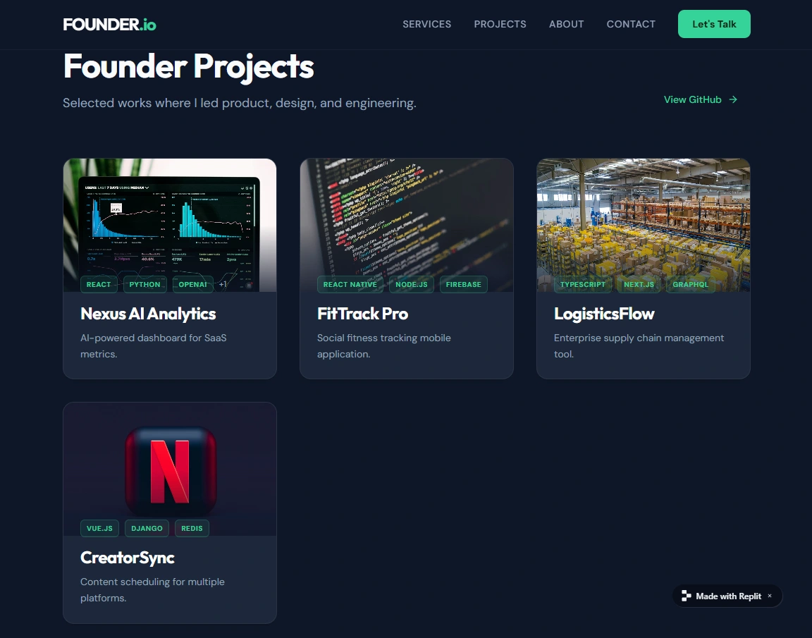 The result is a polished, production-ready co-founder portfolio that clearly communicates my ability to build, ship, and iterate on real products. It serves as a strong foundation for conversations with founders, investors, and early-stage teams looking for a technical co-founder or product partner.
