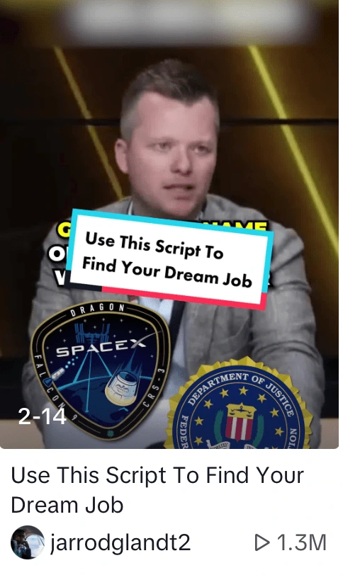 Started with the most boring clip EVER from a YouTube video. Dude was talking to a random lady about how to get a job in the middle of nowhere. YAWN π₯± Spiced it up by cutting out all the boring bits, and my secret weapon - adding the logos of the FBI and Space X to make it look like he was gonna call Elon. Knew that would get tons of comments of "yea right, bruh". Boom. 1 million views, playa.