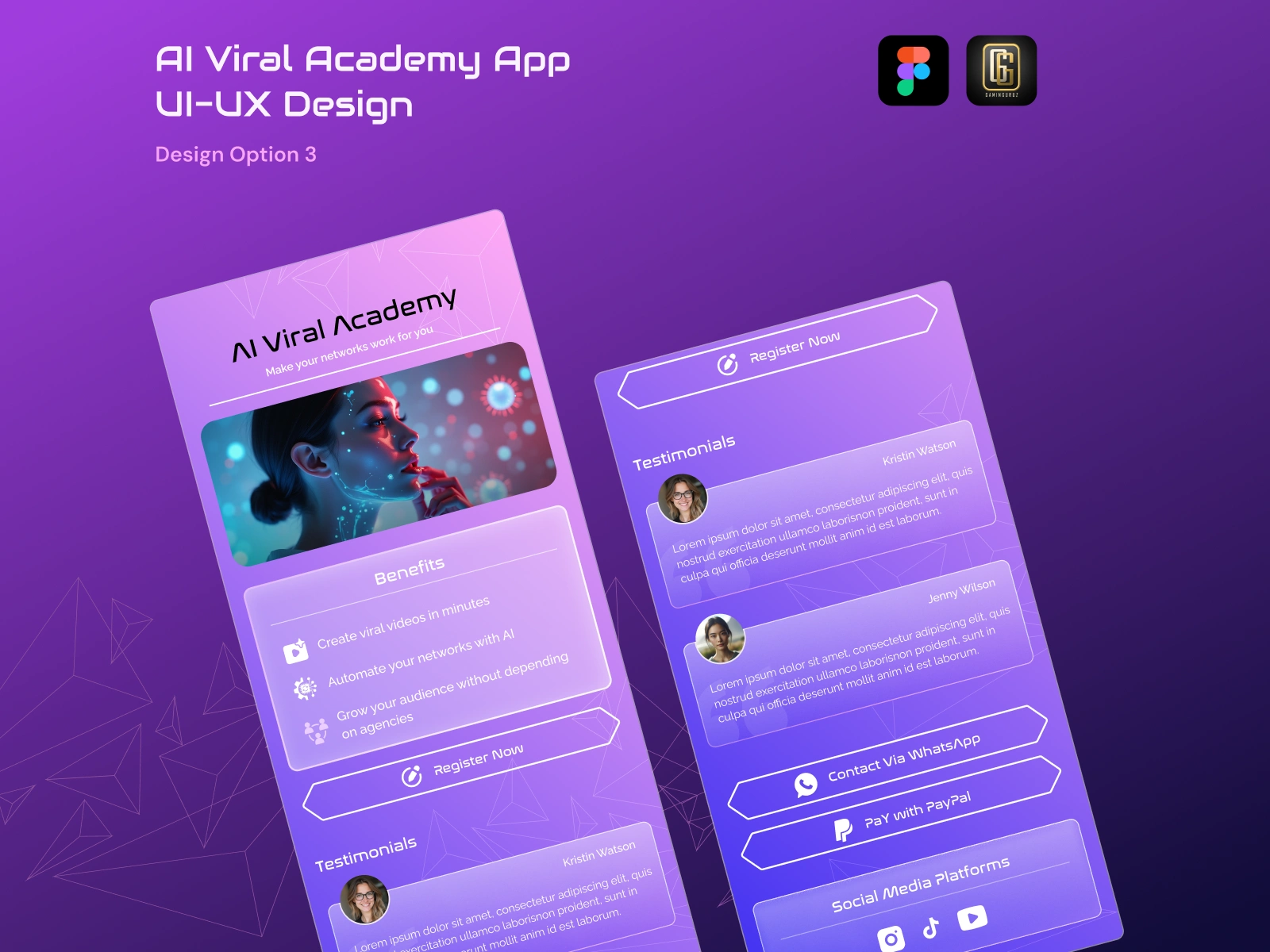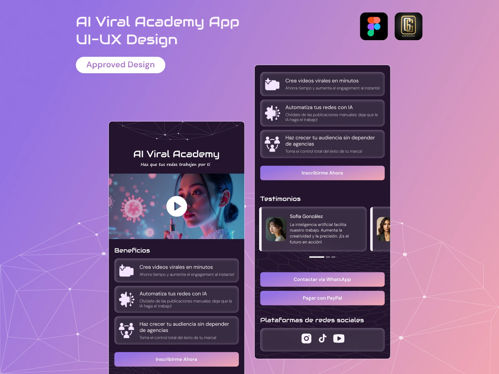 Designed a sleek one-page Figma UI for AI Viral Academy—an online course app for beauty pros to explore AI tools for content creation and marketing.