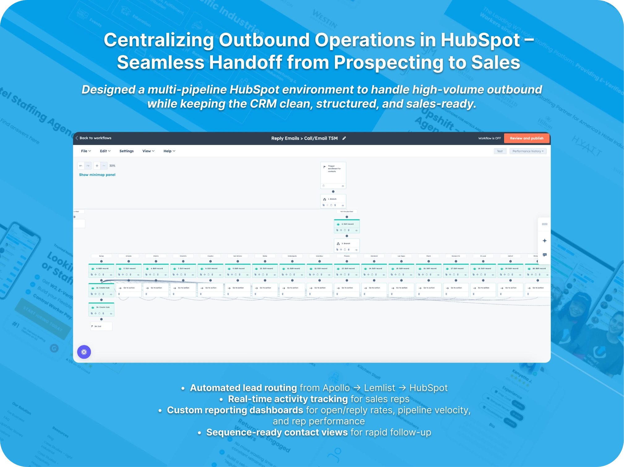 Inbound wasn’t reaching hard B2B buyers. To hit targets, we needed a reliable way to manufacture qualified conversations—at scale—without losing replies in the CRM. ICP: Directors of Ops, COOs, and GMs in low-tech sectors with fragmented 6–12 month cycles.