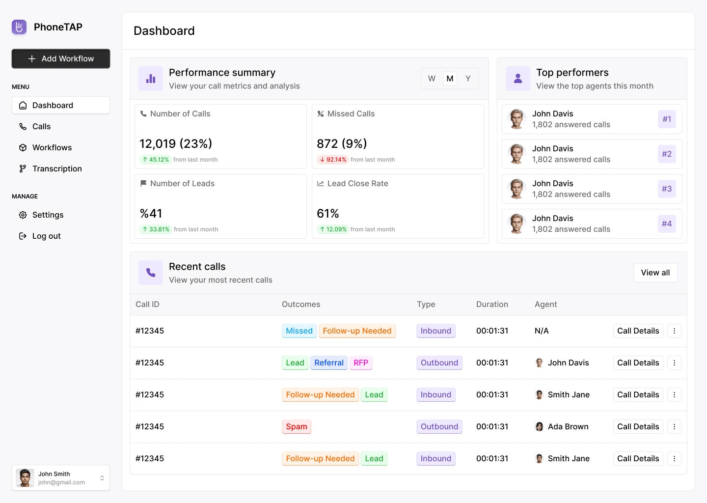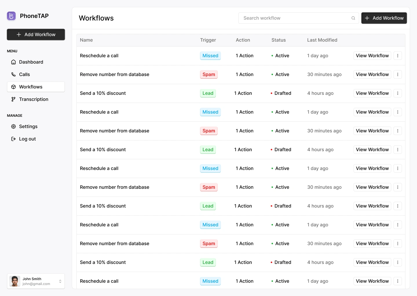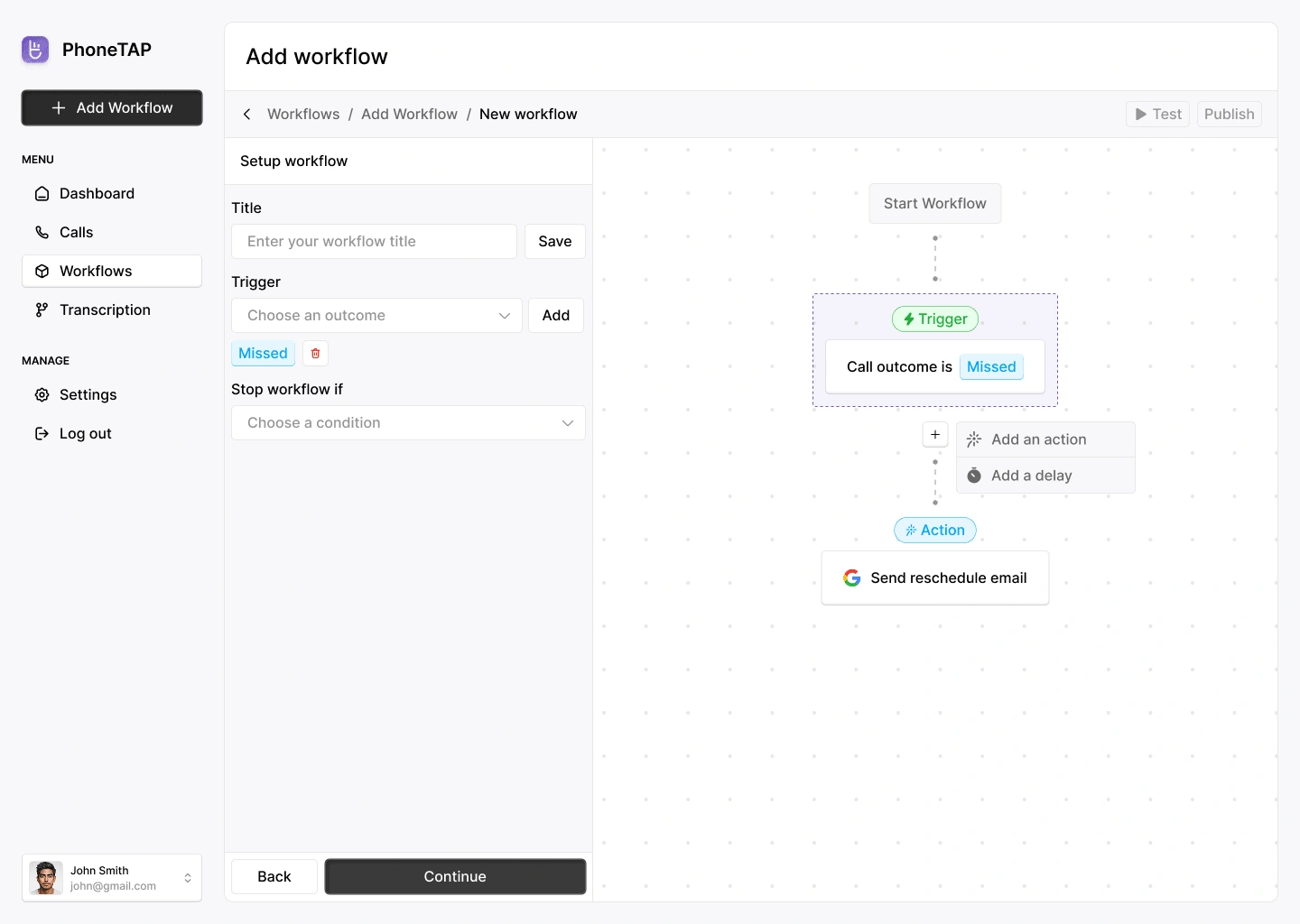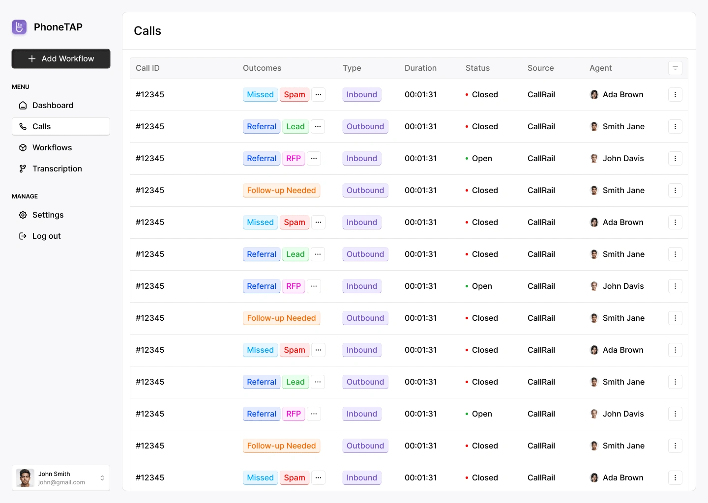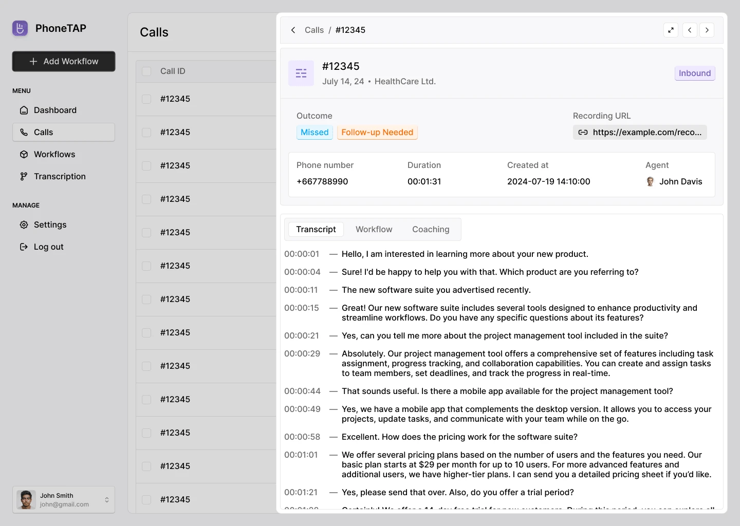 A call center conducts hundreds of calls a day. With AI and transcripts, it was possible to define the outcome of each call. After the outcome was set, users should be able to automate the next step: send texts and emails.