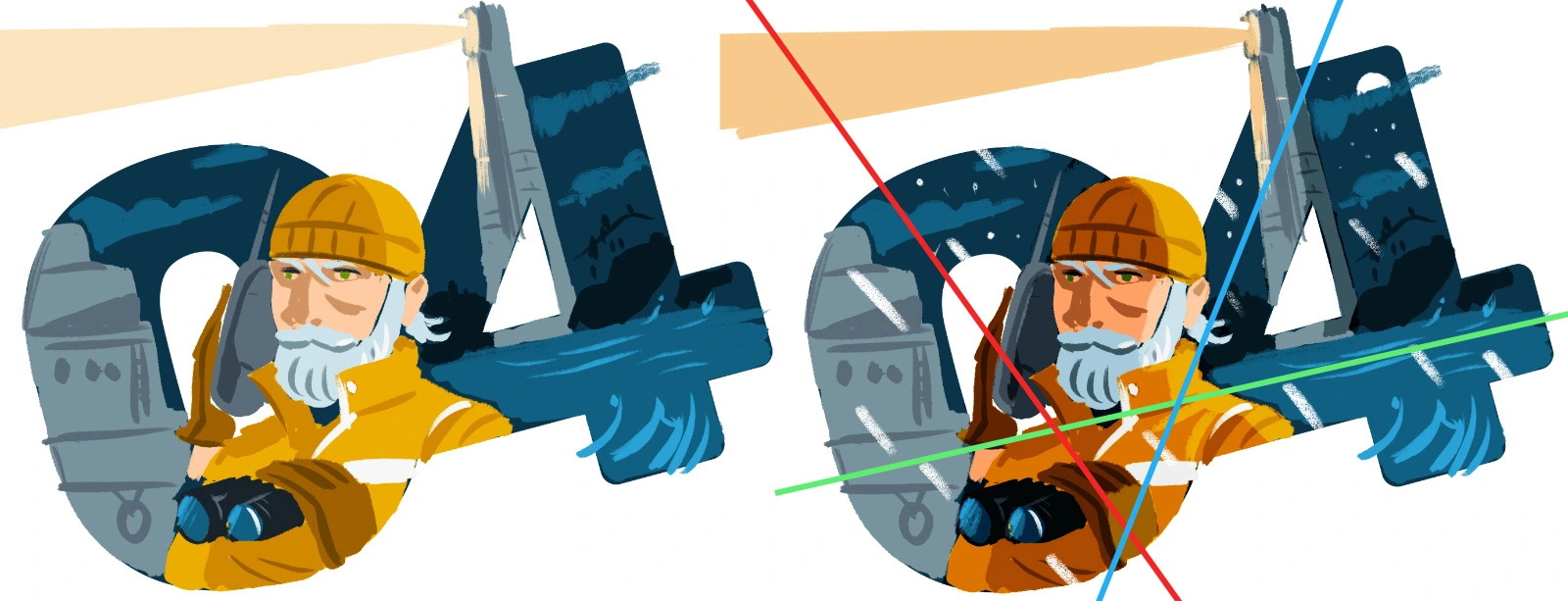 For the cover: we based the illustration on one of the stories inside. In this case: 'Lost & Found' by Don Fazio. Essentially a sea rescue adventure, in which the camaraderie between the two main characters, Cappie (at sea) and Marge (at the lighthouse), turns out to be something more. The story has an adventure component alongside a proto-romance one that we liked a lot, and remains one of my favourite stories in this collection.