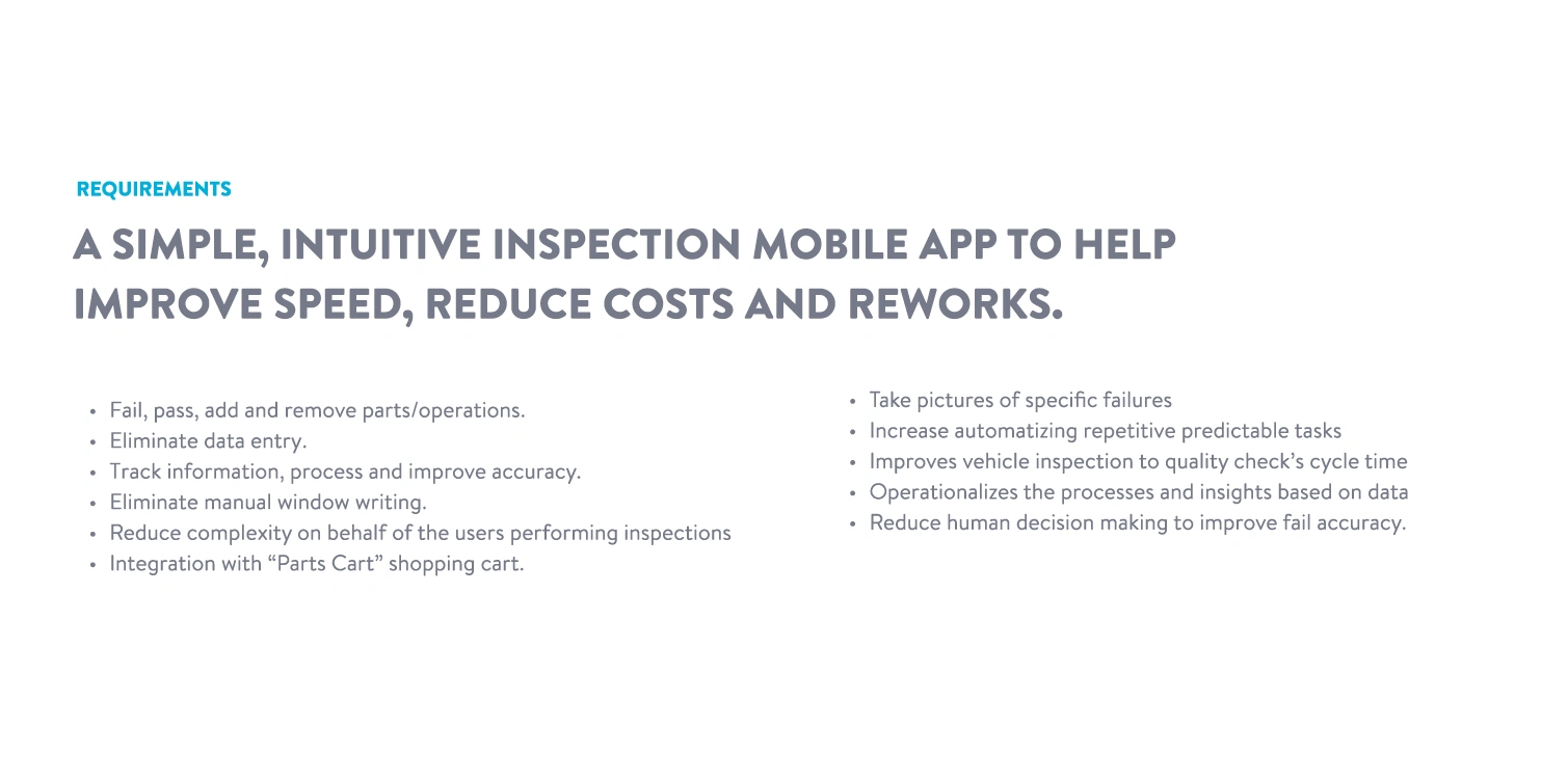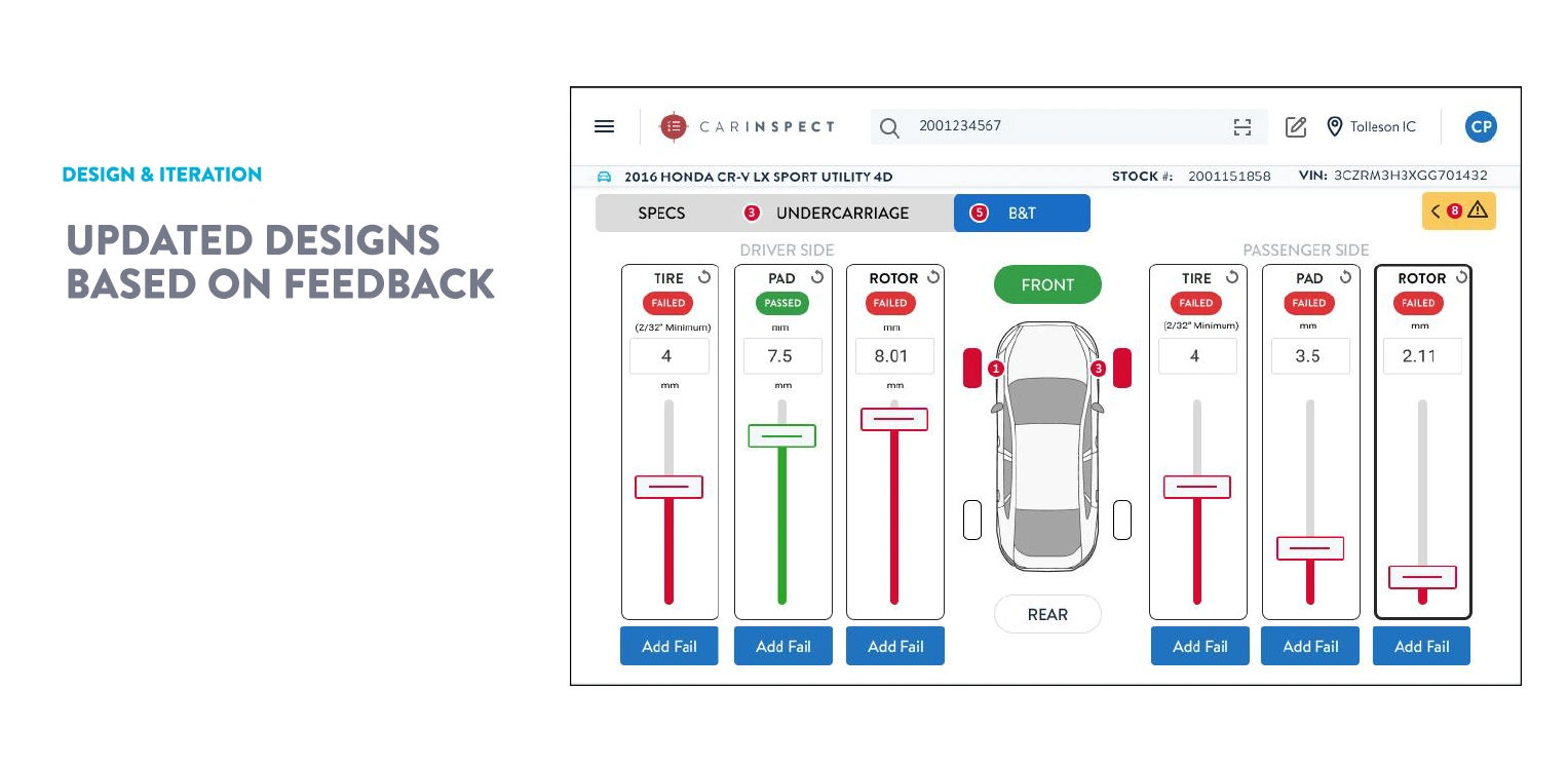 Designed CarInspect, an inspection app that streamlines workflows, reduces rework, parts errors, improving accuracy and speed across 17 inspection centers.