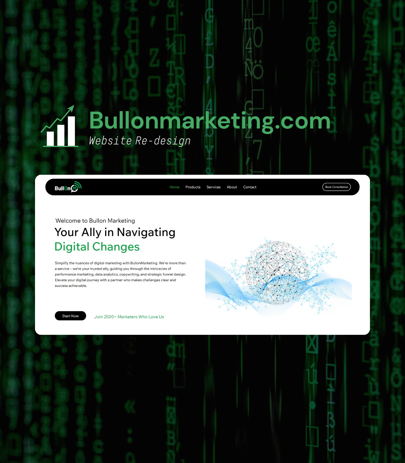 Redesigned BullonMarketing.com during my role at Bullon Marketing, creating a modern, responsive website that strengthened brand identity and usability.