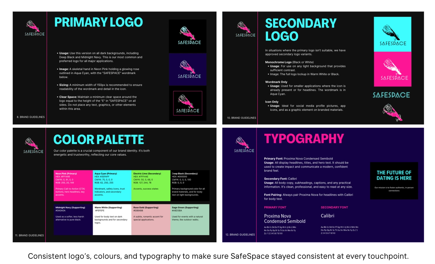 A vibrant color and type system (Neon Pink for energy, Aqua Cyan for trust) brought the brand to life and made it instantly recognisable.