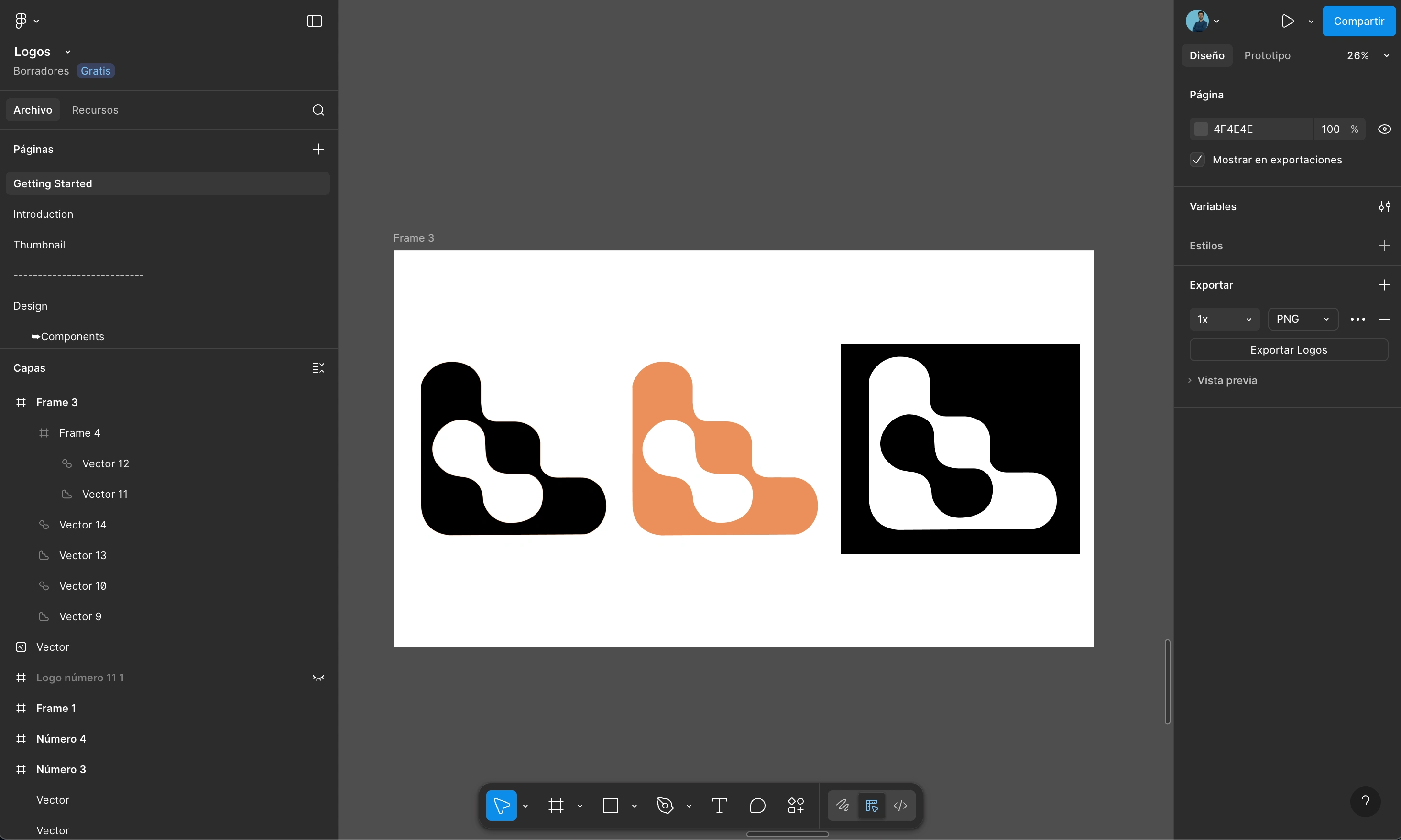After defining the final shape, I recreated the logo in Figma, focusing on precision, symmetry, and scalability. I tested multiple vector versions, experimented with weight and spacing, and created variations in black, white, orange and different sizes to ensure versatility across platforms.