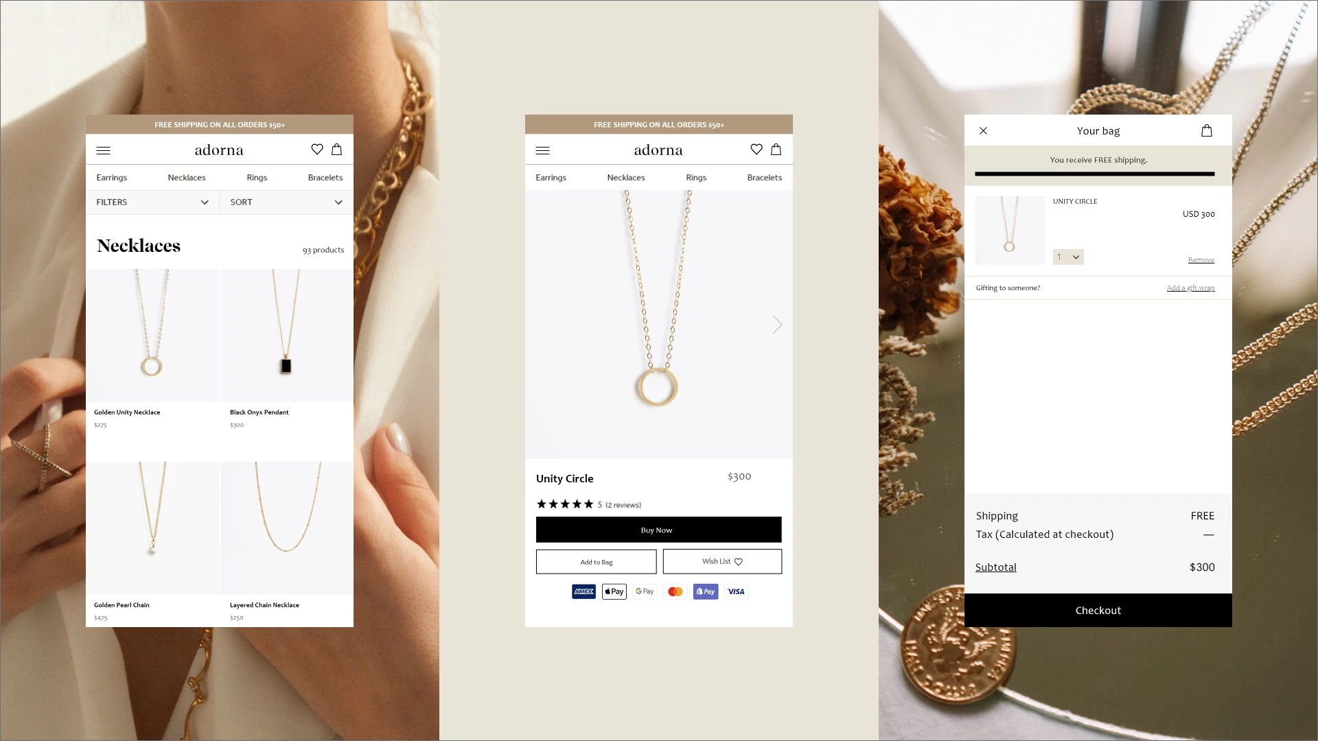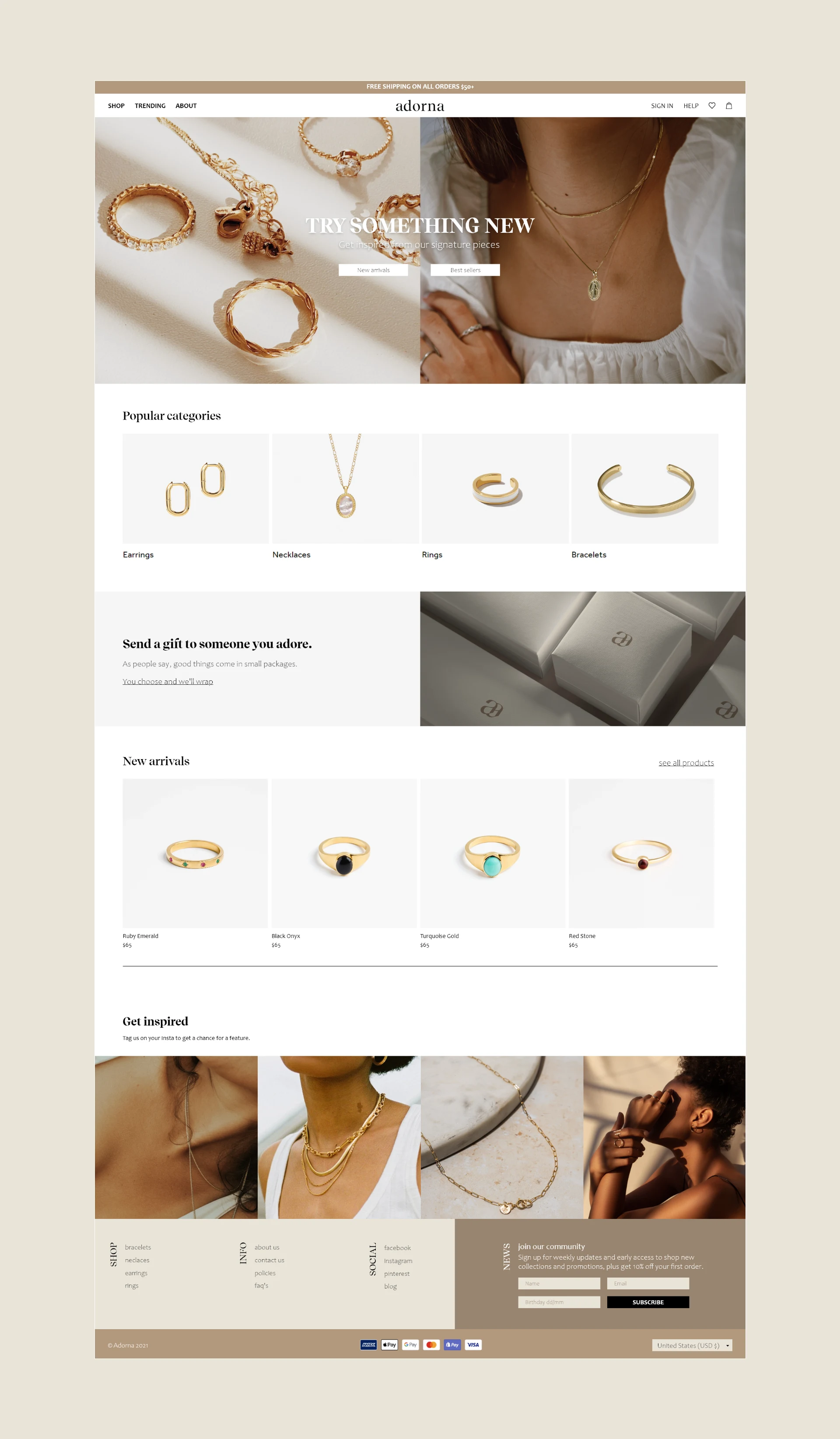 A fresh new start, Adorna came to us to bring their project alive from scratch. To do it first they needed a total overhaul of their brand strategy to get their vision aligned by creating logos, color pallet, fonts, printables, social media direction and packaging. Since they don't have physical locations, the eCom platform they chose was Shopify in which custom sections were developed to suit the brand.