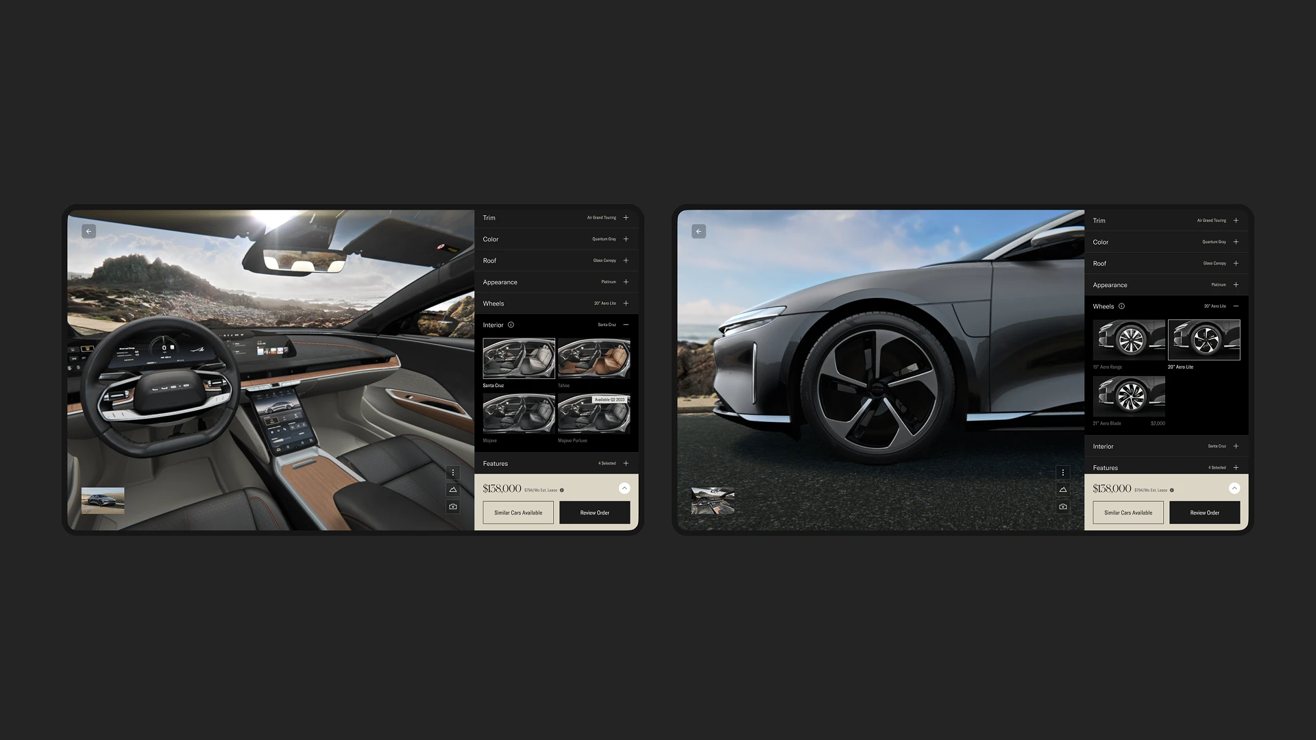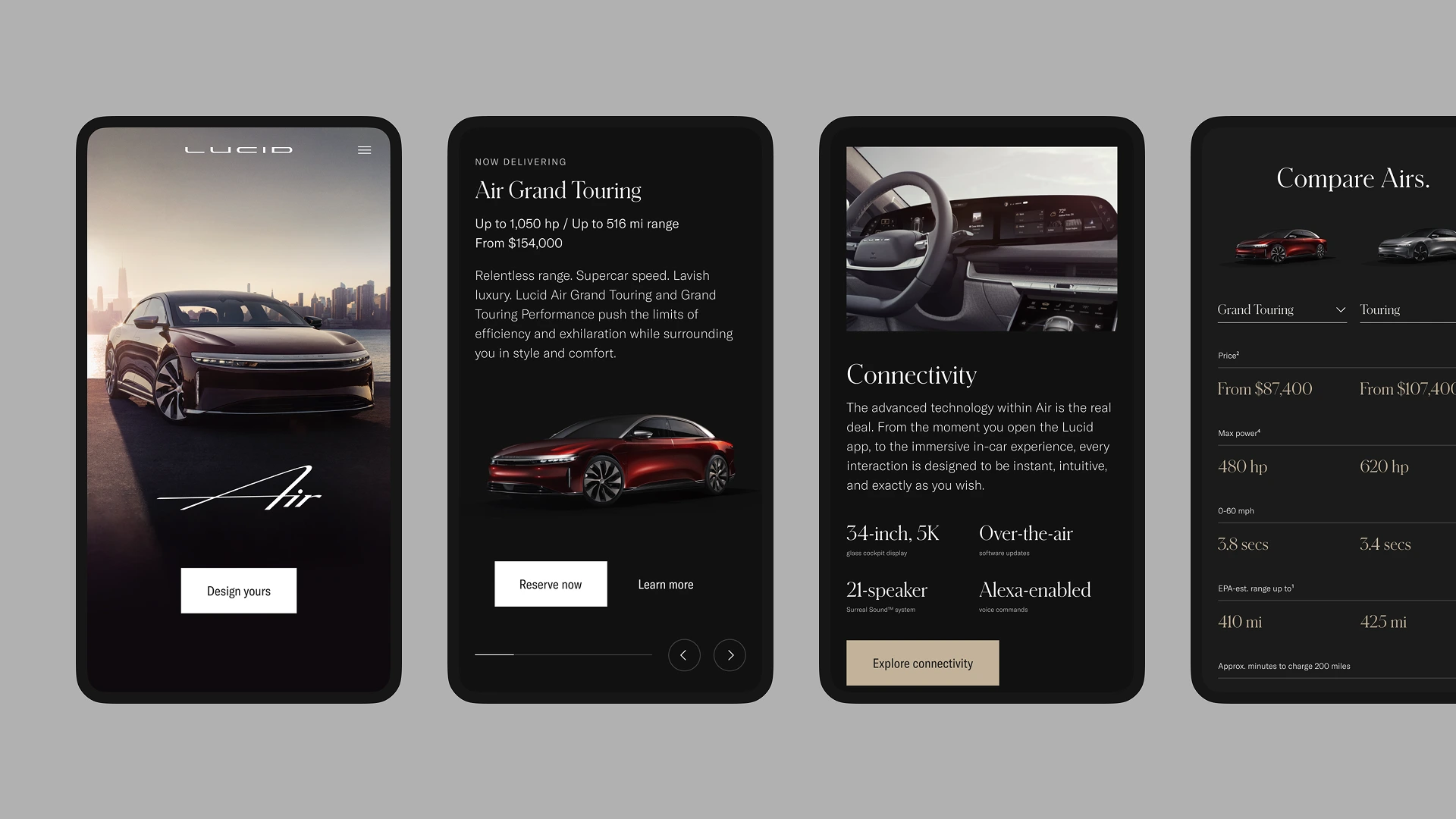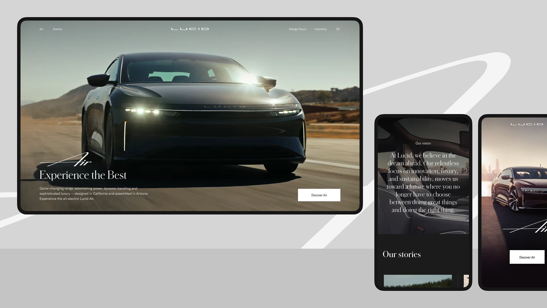 Led the design of lucidmotors.com, including the customer-facing marketing site, configurator, and portal.