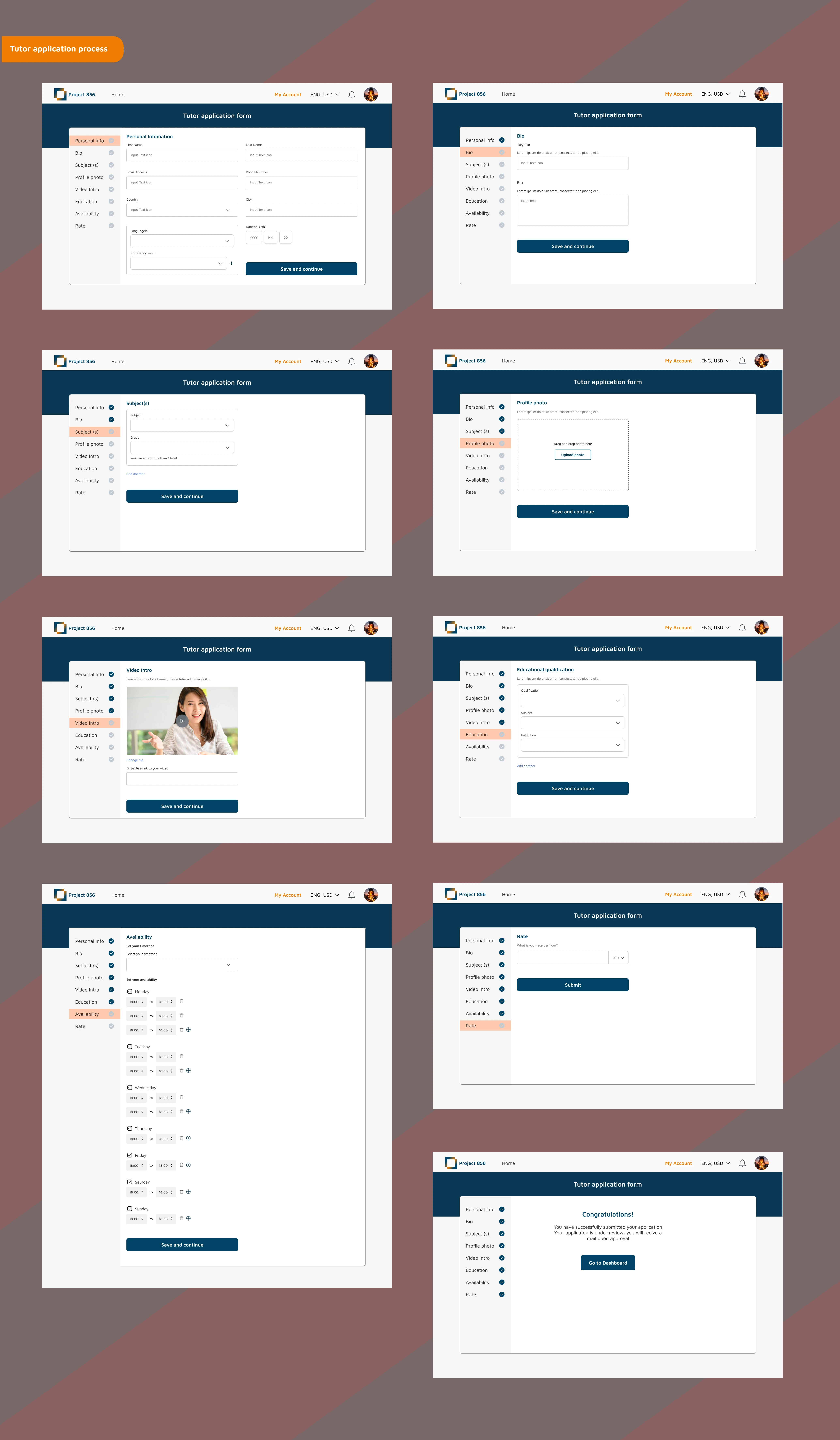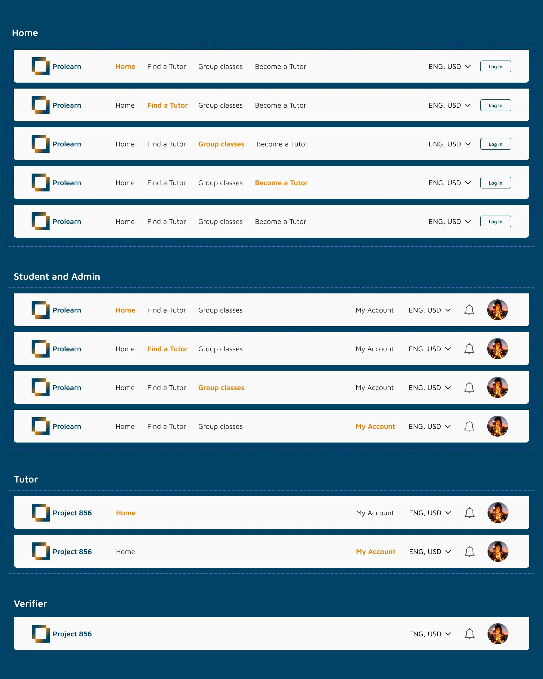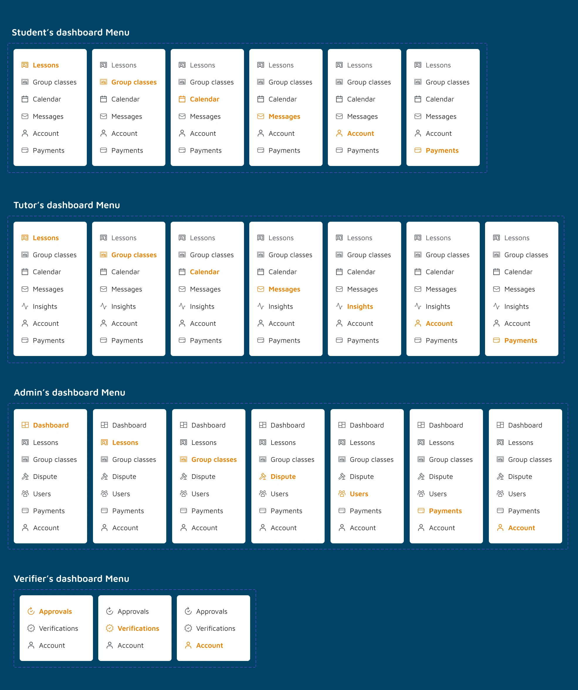 I moved on to creating task flow for the product. These task flows maps the pages the product will have, how it will function and the process it will take to perform a task successfully on the app. These task flow are created for the home page, student’s dashboard, tutor’s dashboard, admin’s dashboard and the verifier’s dashboard.