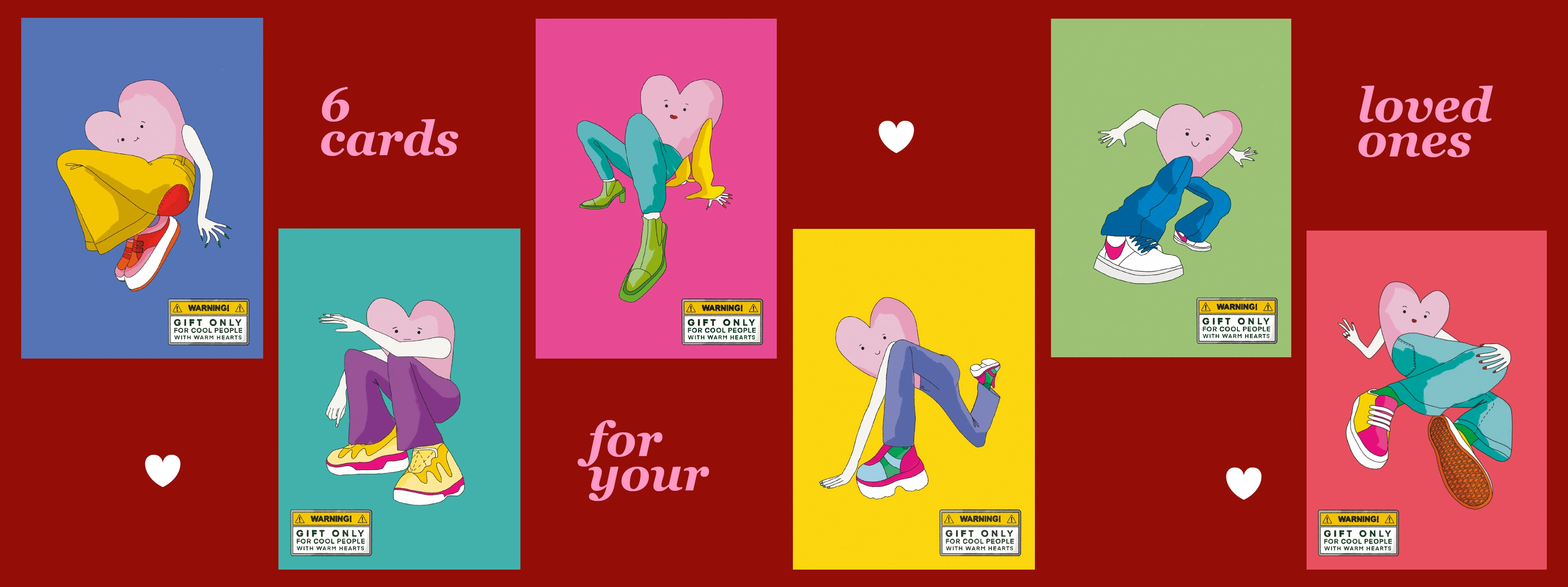 A playful and romantic set of six illustrated Valentine's Day cards.