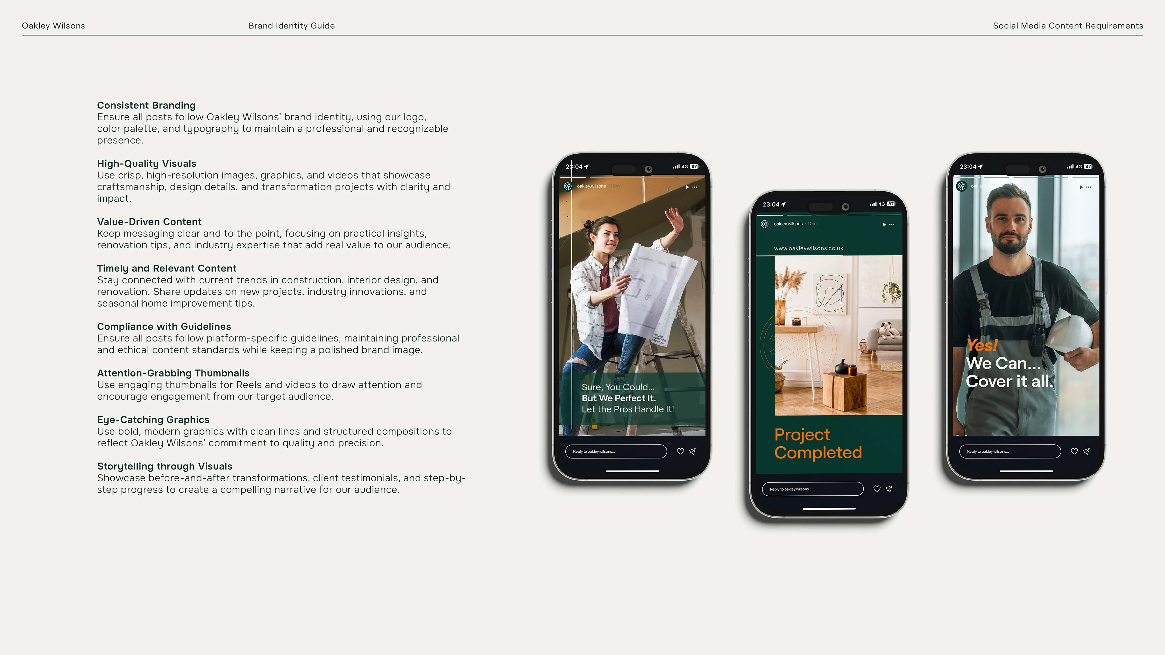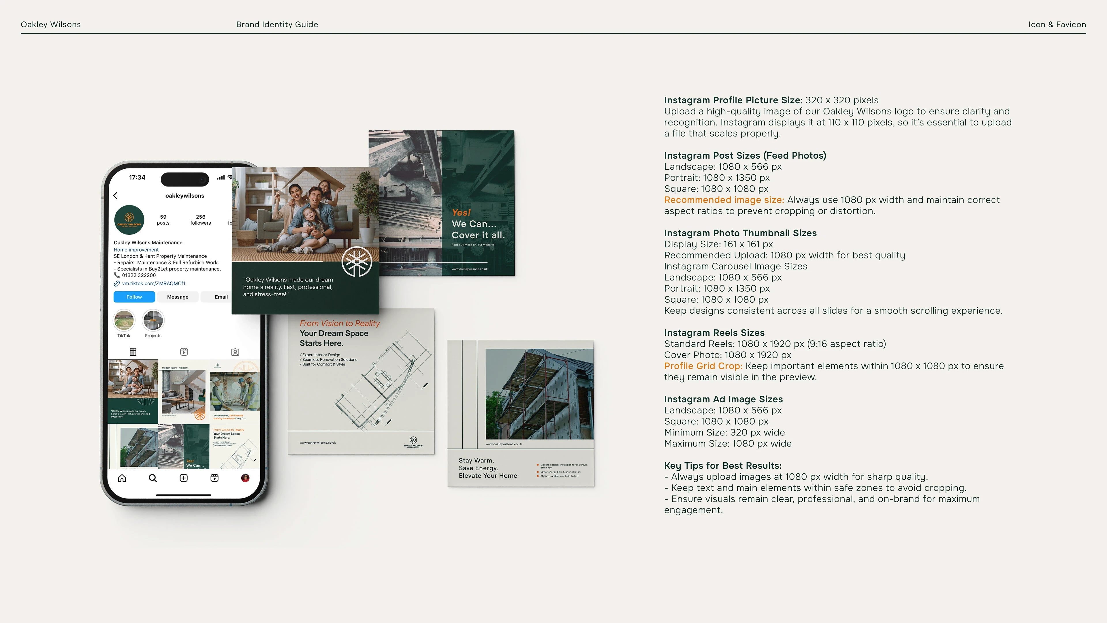 Logo & Icon: Designed a strong, distinct logo that clearly expresses Oakley Wilsons’ refined construction identity.