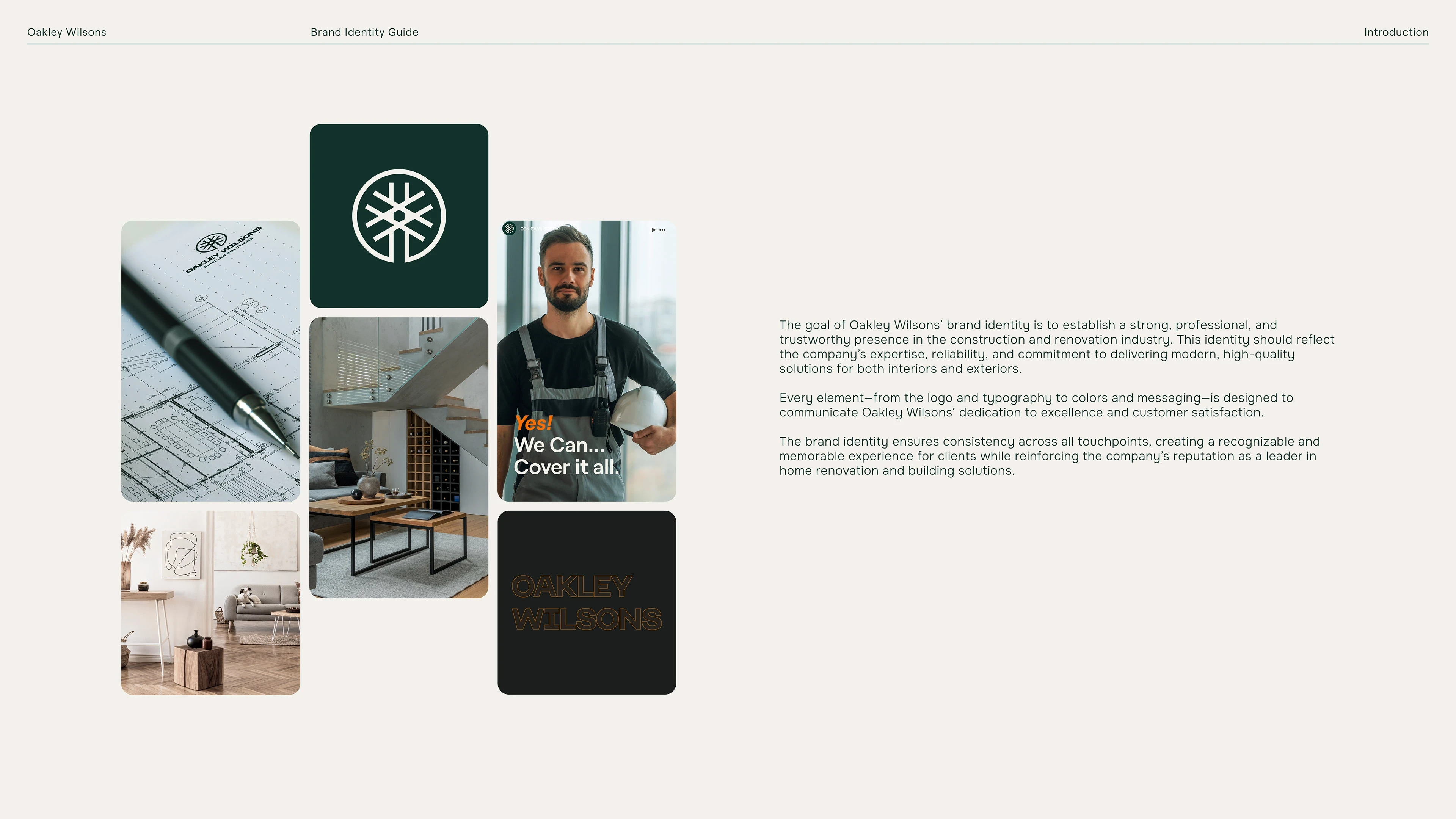 Oakley Wilsons is a UK-based construction and renovation company focused on high-quality, modern, efficient building solutions. My objective was to develop a brand identity that communicates craftsmanship, trustworthiness, and a contemporary edge.