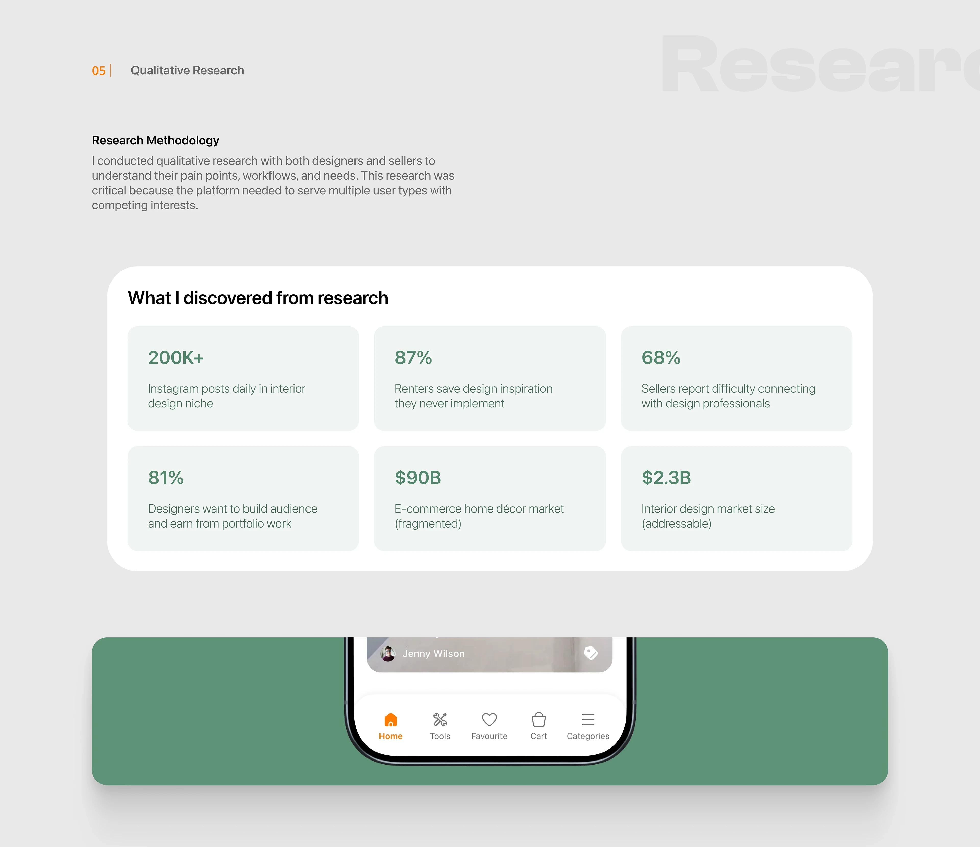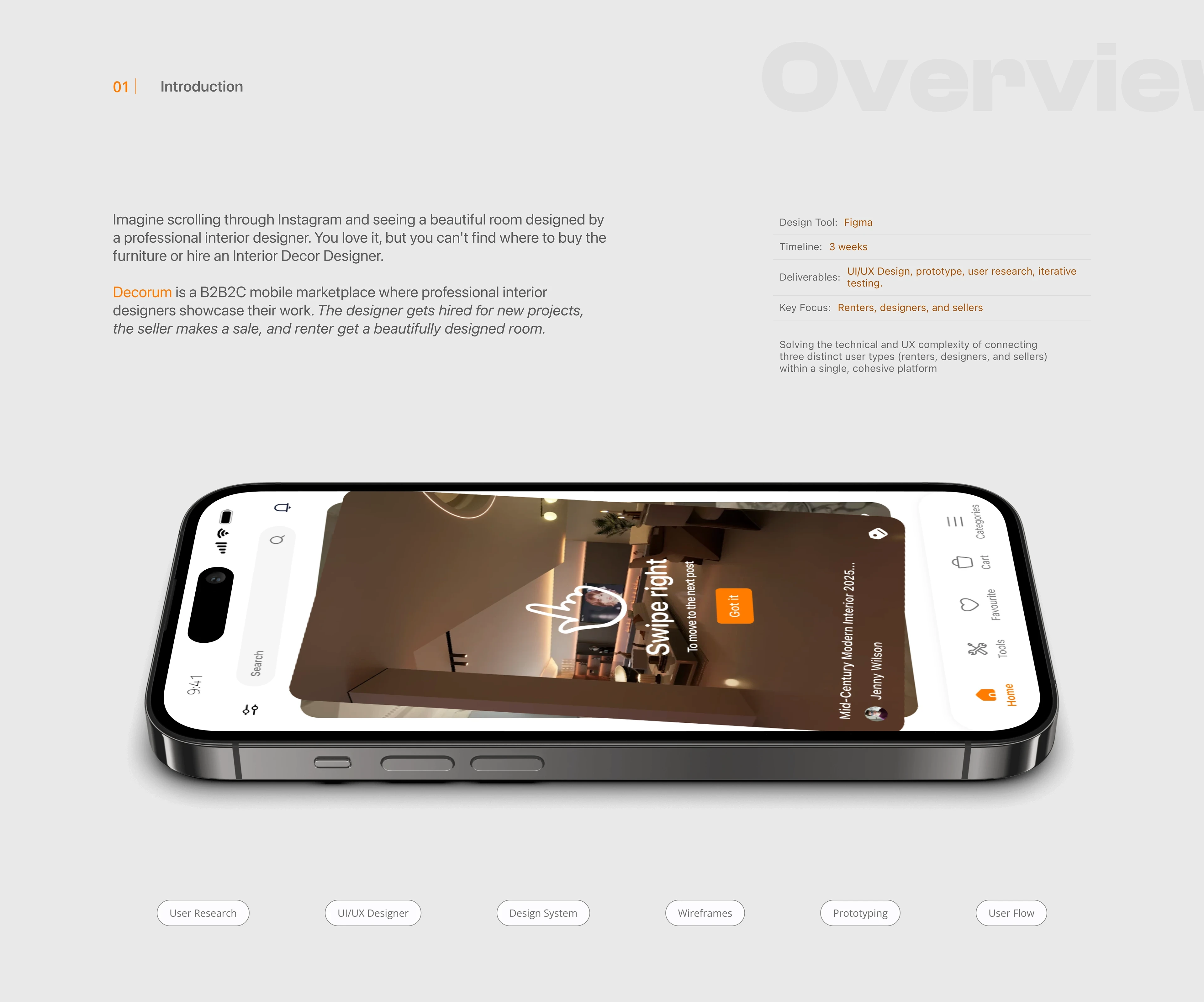 Decorum is a B2B2C Social Mobile App For Interior Decor Businesses. Built for Renters, Designers, Sellers.Its a UX Case Study to showcase the research and UX t…