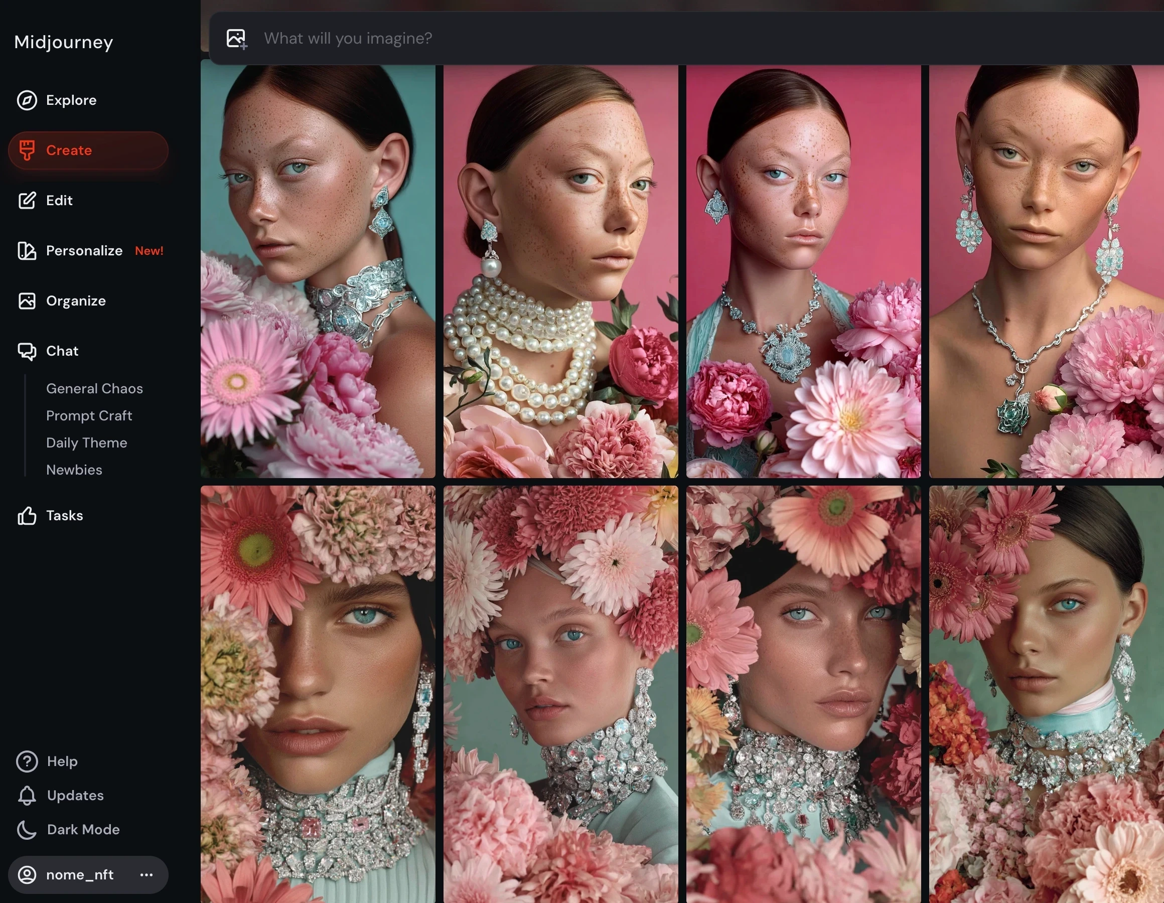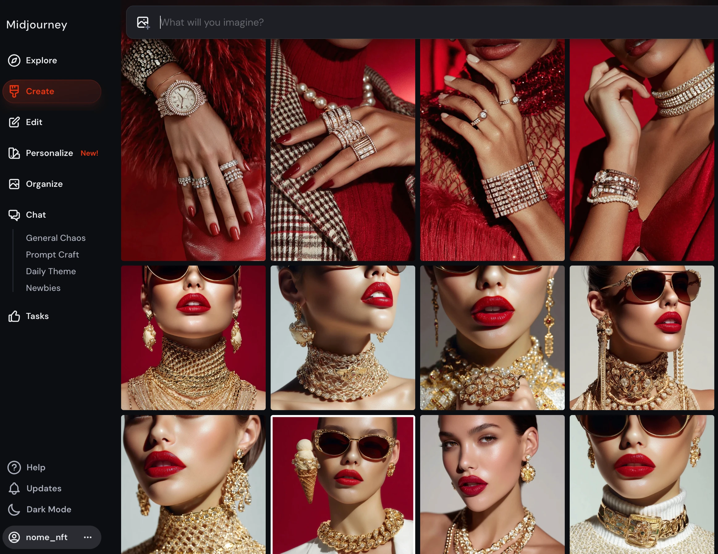 I created fashion content using Midjourney, leveraging AI to produce high-quality, visually striking concepts in minutes. This approach simplified the design process, allowing me to experiment with styles, themes, and aesthetics that would be time-consuming to create manually.