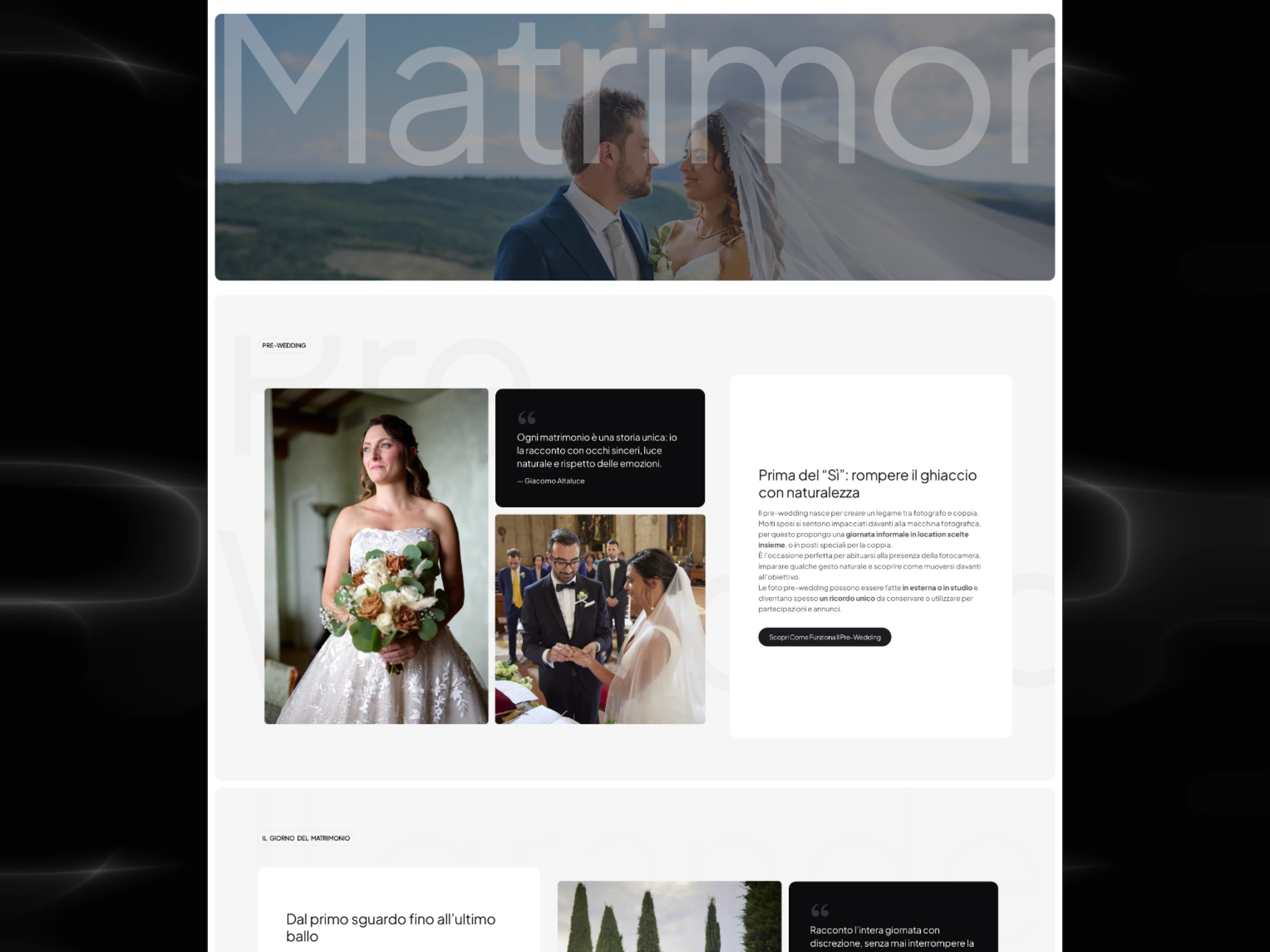 The primary challenge was harmonizing vastly different target audiences, such as private couples and large corporations, within a single platform without diluting the brand identity. Operating within the agency’s workflow, I managed a massive volume of text and visual content while ensuring excellent loading performance for high-resolution galleries. It was essential to translate a personal story of resilience into an authoritative professional asset, maintaining an austere and professional design.