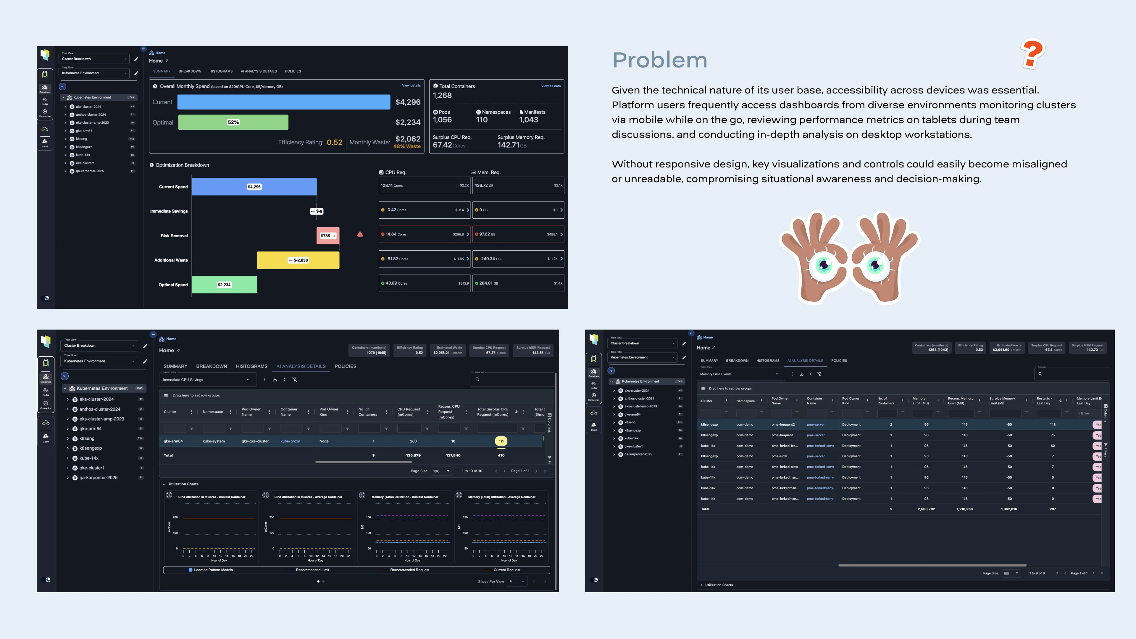 As the UX/UI Designer, I led the end-to-end design process, turning complex, data-heavy Kubernetes workflows into a clean, intuitive, and scalable experience.