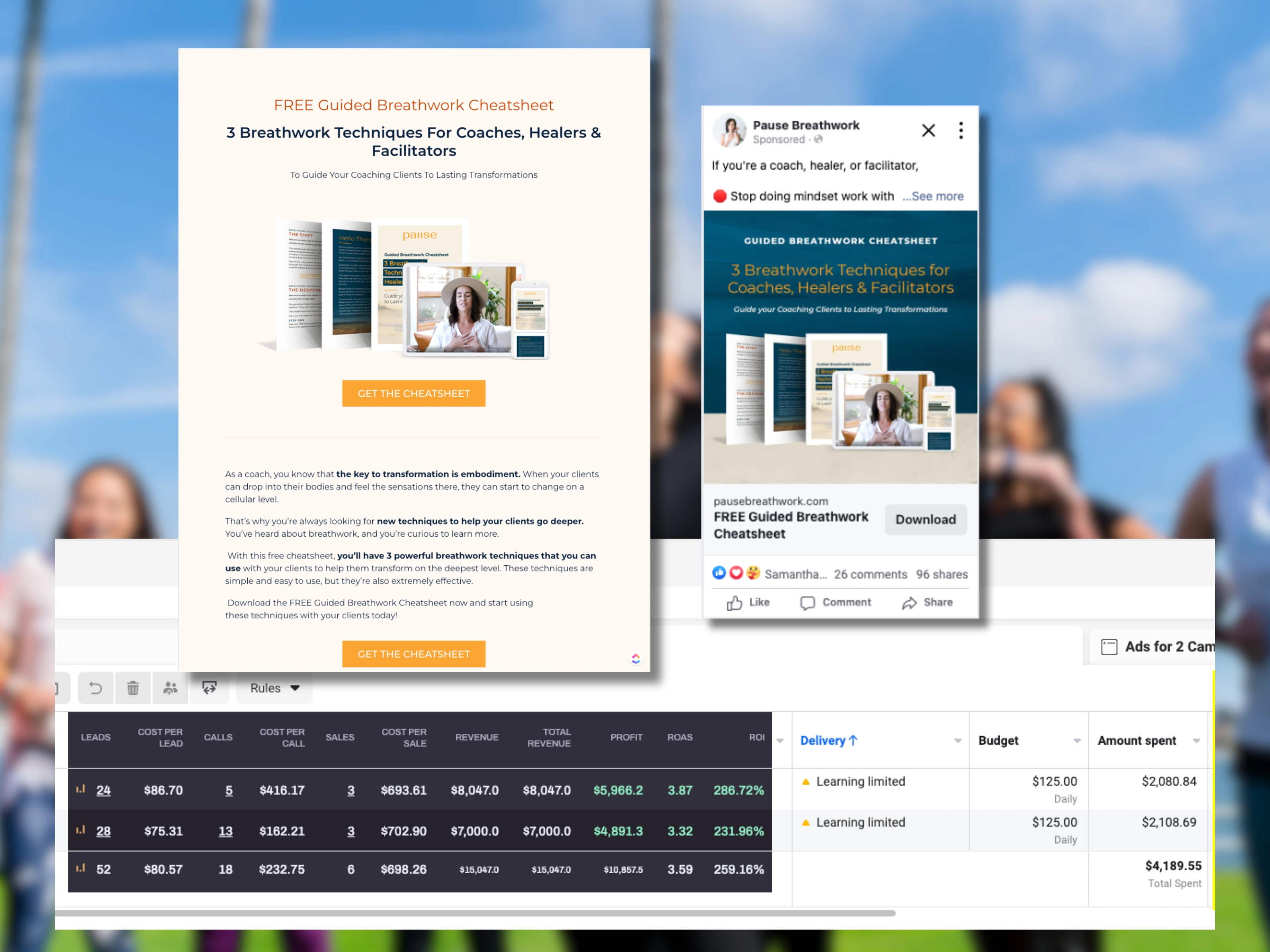 Pause Breathwork wanted to move away from launch-only sales and scale their evergreen coaching certification. I managed Meta + Google Ads, built an evergreen funnel in GoHighLevel, and restructured their webinar + email automation.