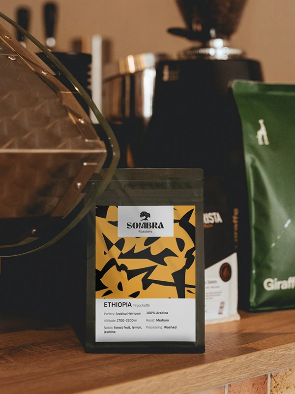 Brand identity and label design using graphic illustrations for a specialty coffee shop and roastery