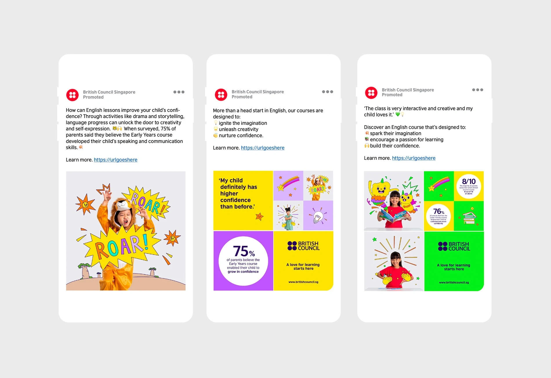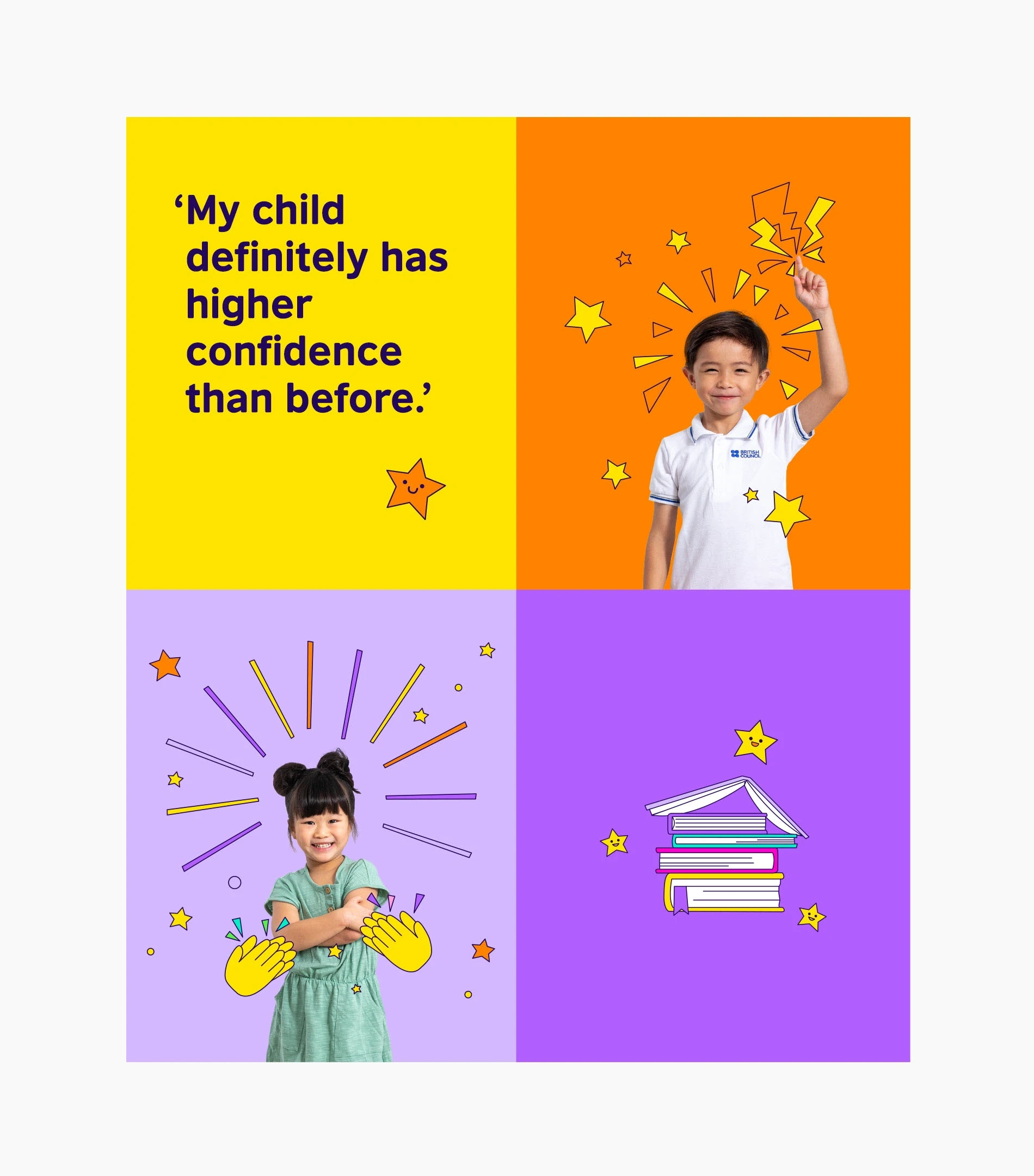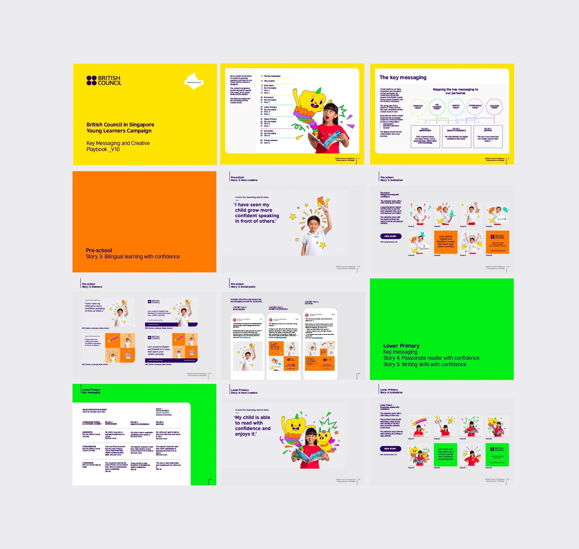 British Council Singapore tasked us with developing a series of fresh visuals to enhance their Young Learners courses. We began by thoroughly exploring their value propositions across different age groups and conducted a customer survey to gather key insights and statistics. From there, we created storyboards, organised photoshoots, designed illustrations, and produced animations.