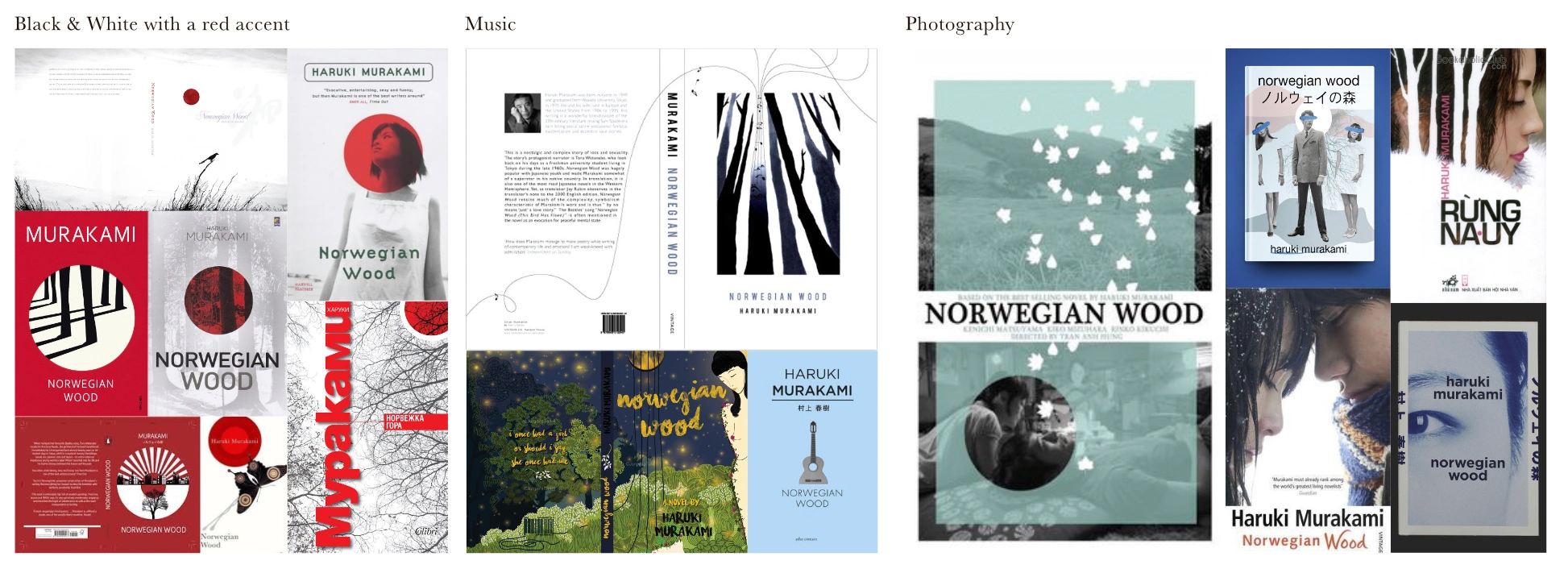 By abstracting the idea of “wood” into tree rings, the cover avoids literal forest imagery and instead uses a symbolic representation of memory, time, and psychological depth. The visual language draws from woodcut textures and organic line work, echoing the repetitive, meditative nature of both the proverb and Murakami’s writing.