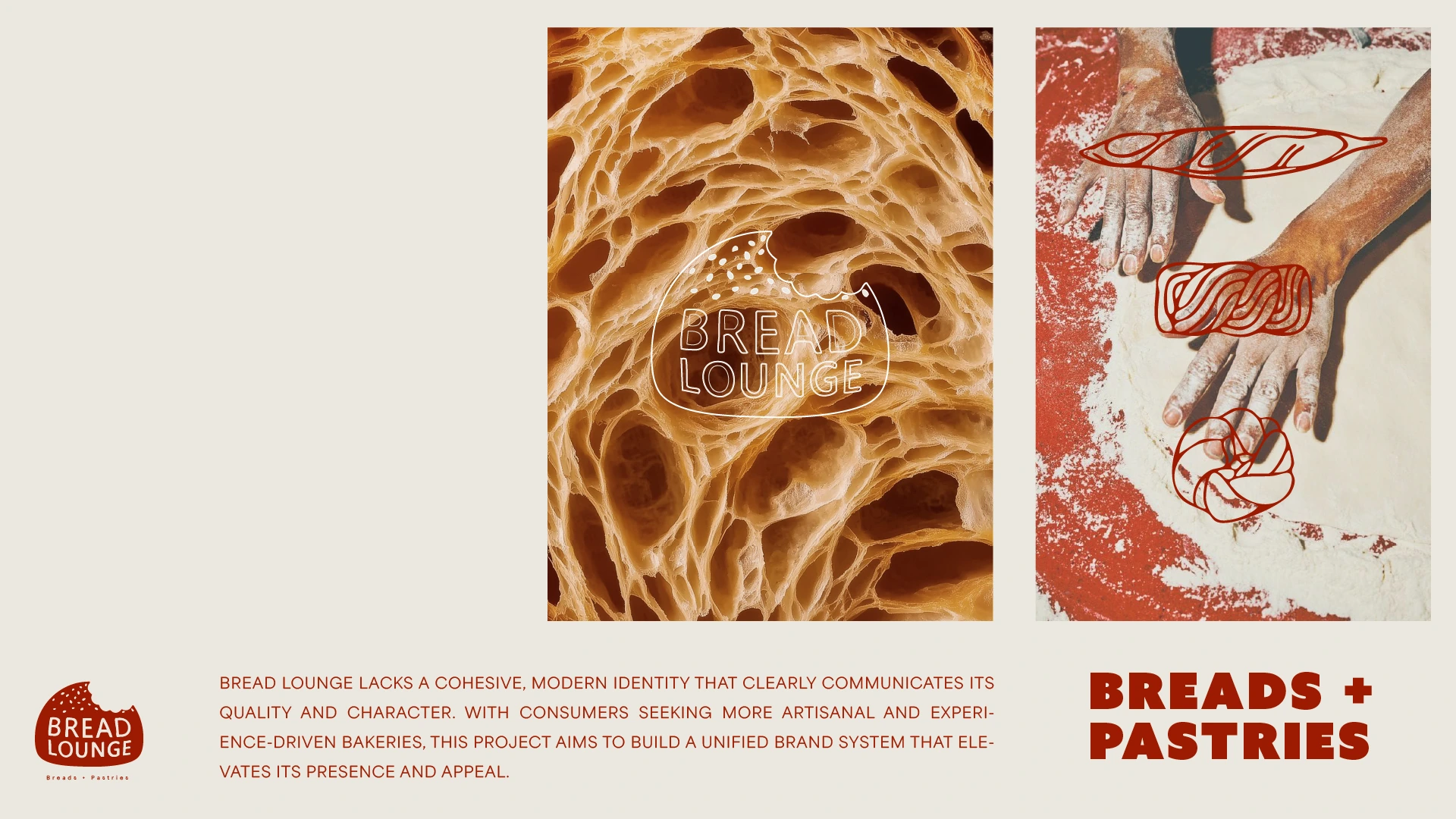 Bread Lounge is a contemporary bakery offering simple, clean, and thoughtfully crafted breads and pastries designed for everyday indulgence. While the bakery is known for its quality and craftsmanship, its current identity lacks a cohesive and modern visual expression that resonates with today’s consumers—especially those seeking artisanal, experience-driven bakery environments.