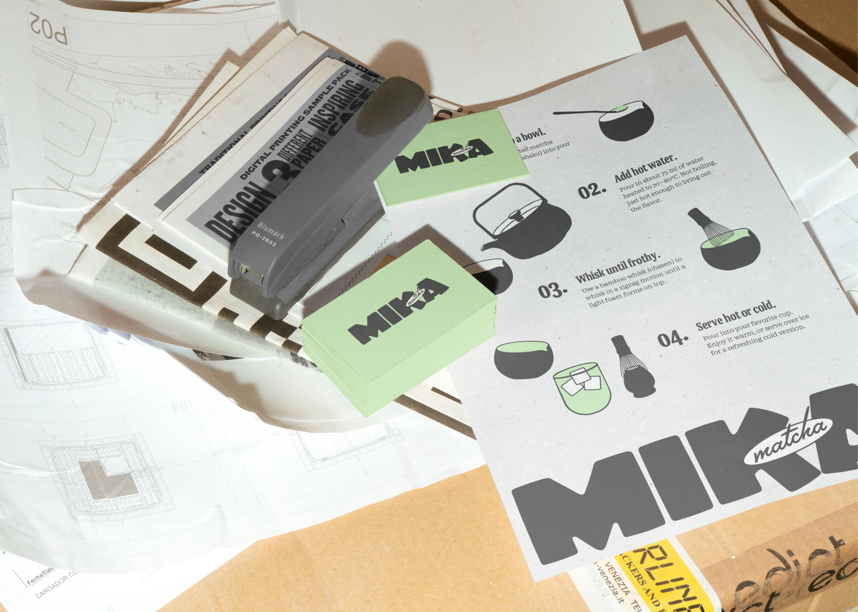 I developed a bold yet minimal identity system that reflects Mika Matcha’s commitment to quality, ease, and modern lifestyle. Every design choice reflects their fresh, grounded personality. The hand-drawn illustrations bring an approachable, crafted feel to the brand, while the clean layout and structured system support a sense of reliability and energy.