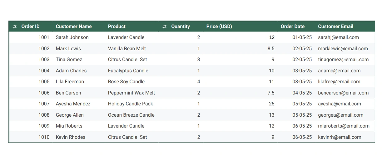 A spreadsheet that's structured in a clear way. it is formatted professionally. I try to understand the clients needs, even when they don't say it directly.