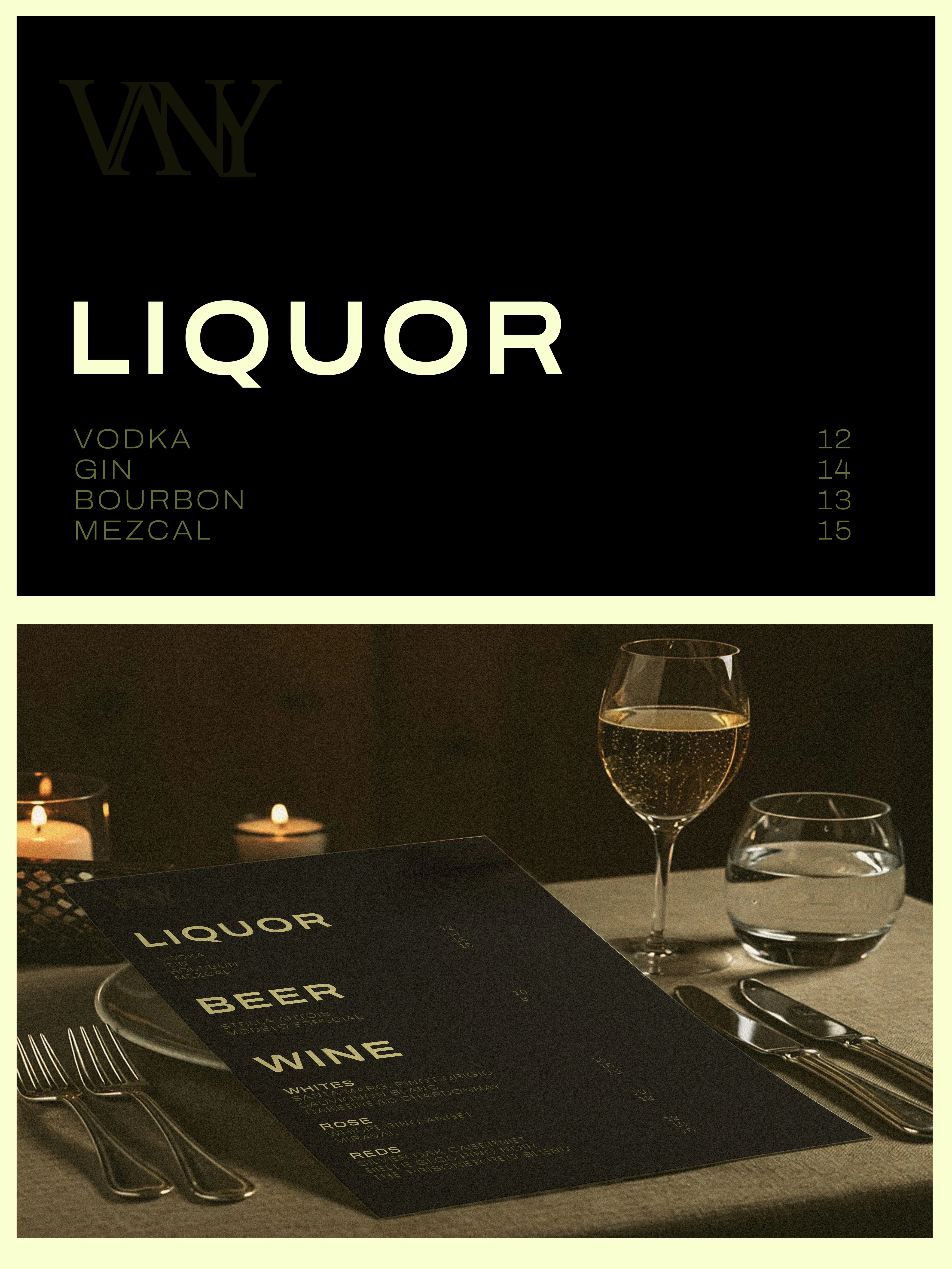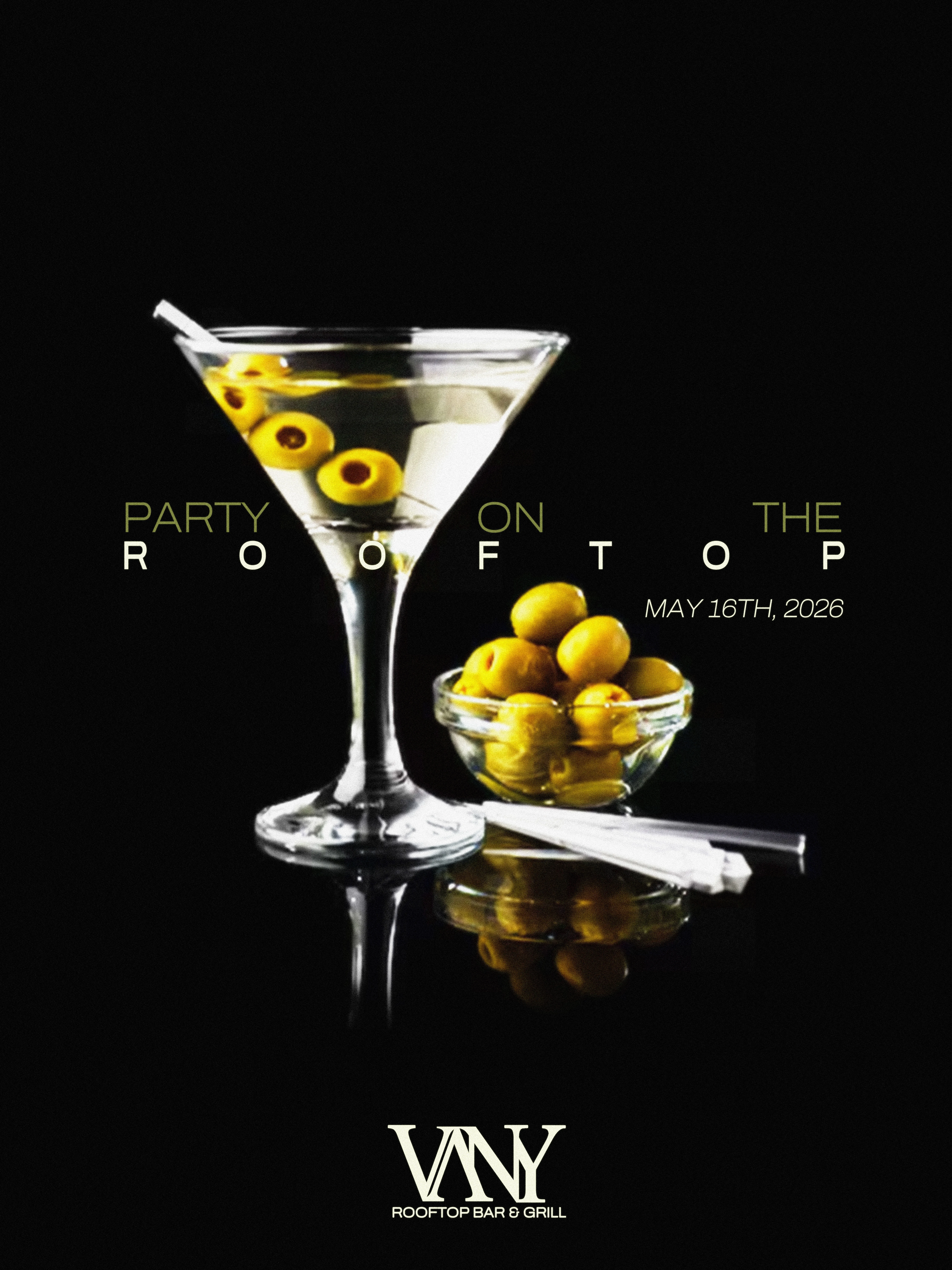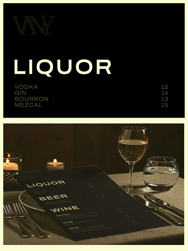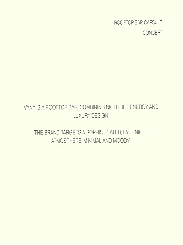 VANY IS A ROOFTOP BAR, COMBINING NIGHTLIFE ENERGY AND LUXURY DESIGN. THE BRAND TARGETS A SOPHISTICATED, LATE-NIGHT ATMOSPHERE. MINIMAL AND MOODY.