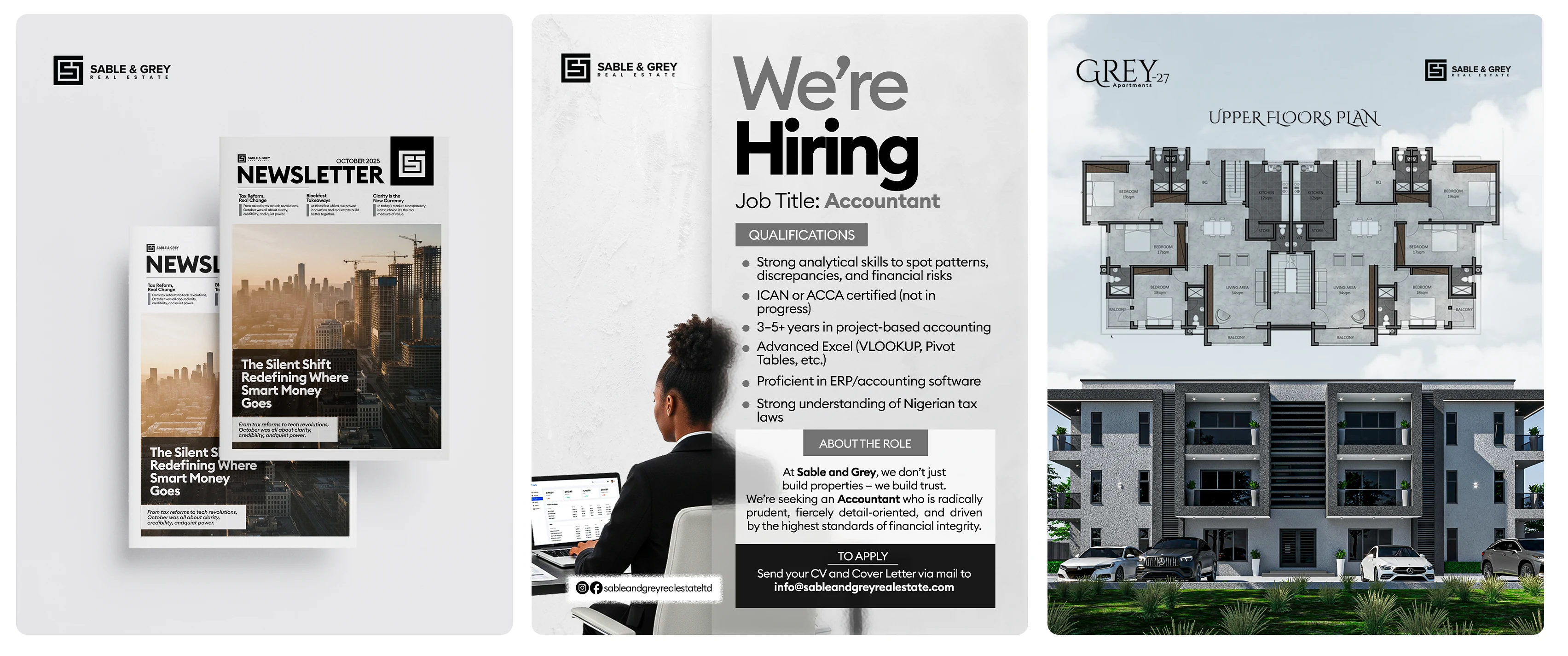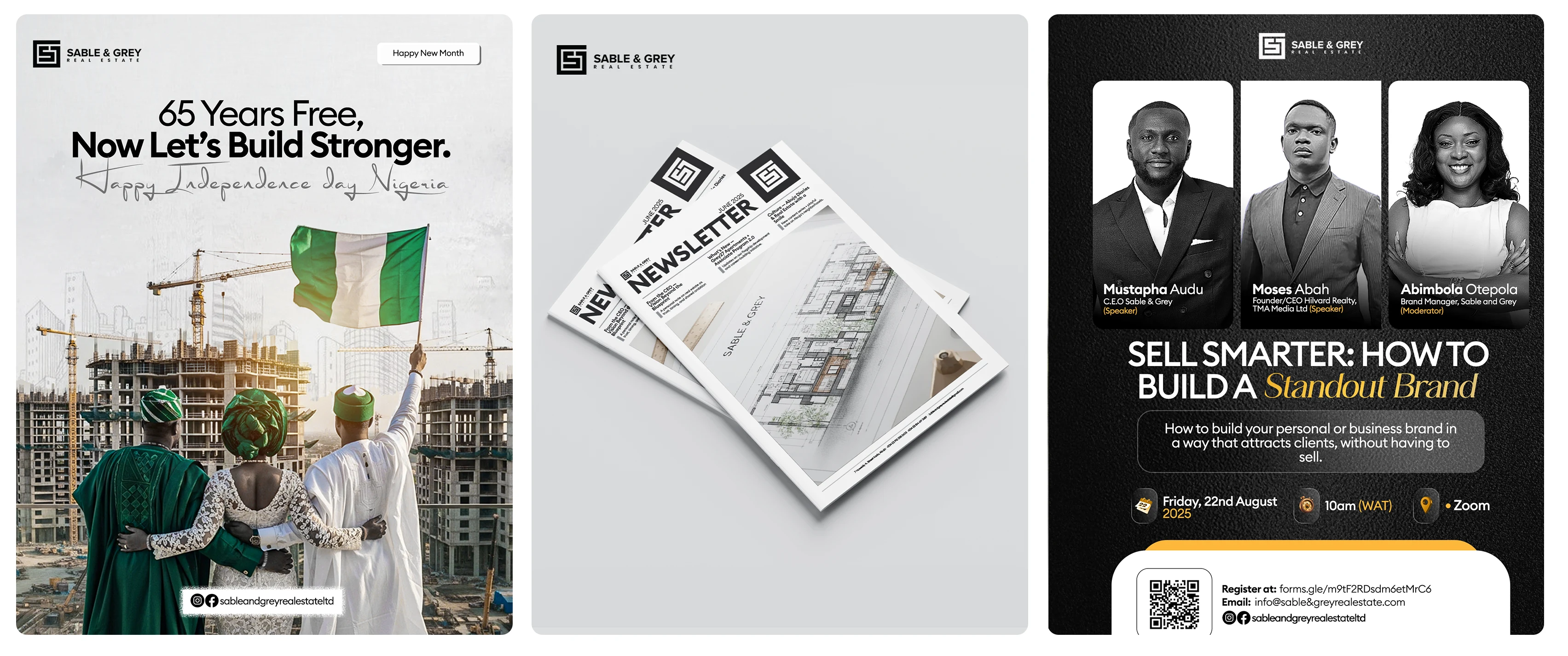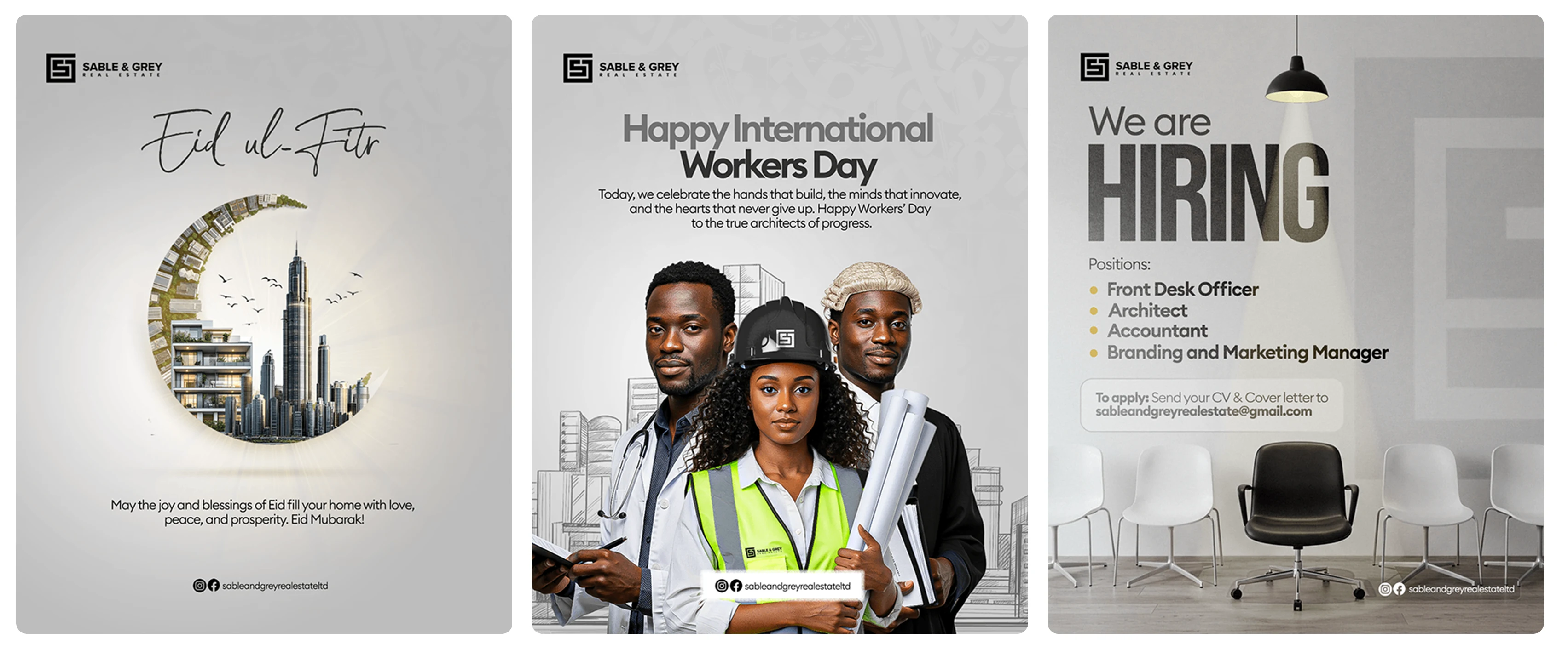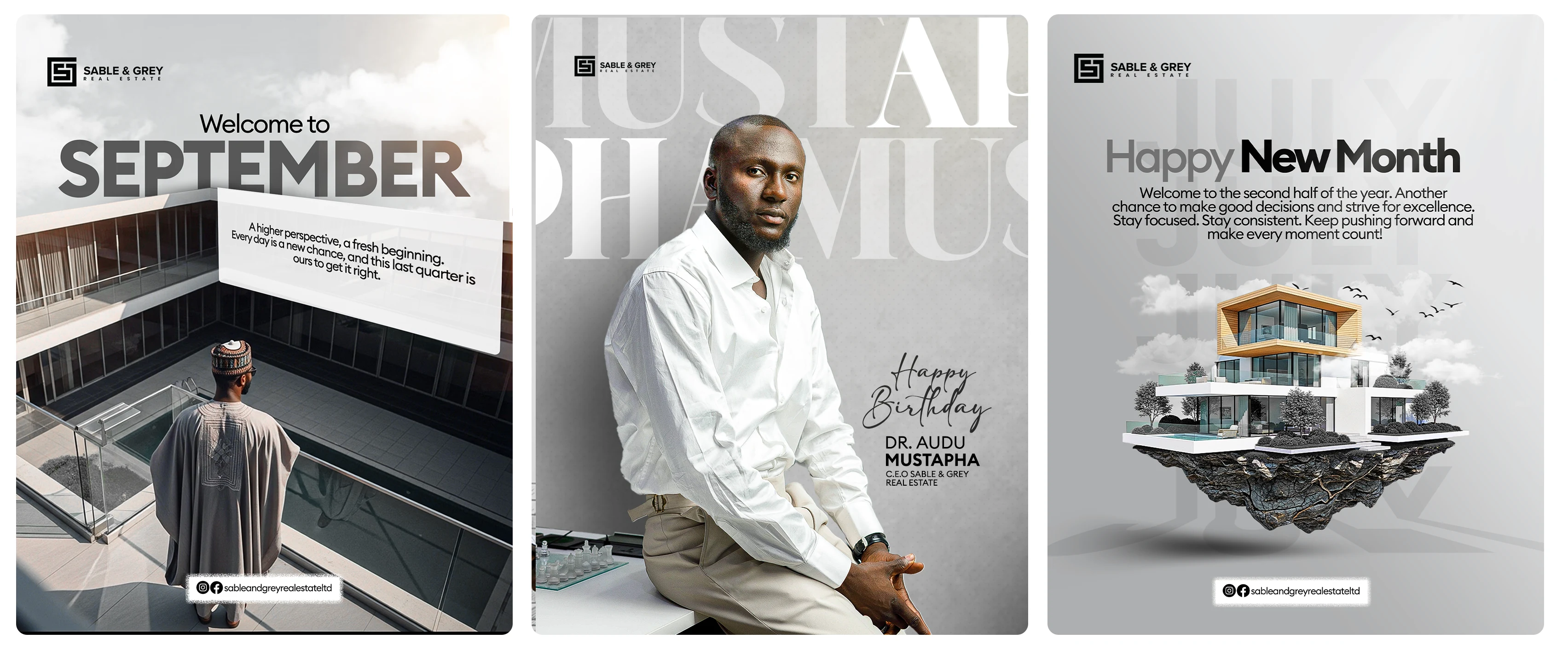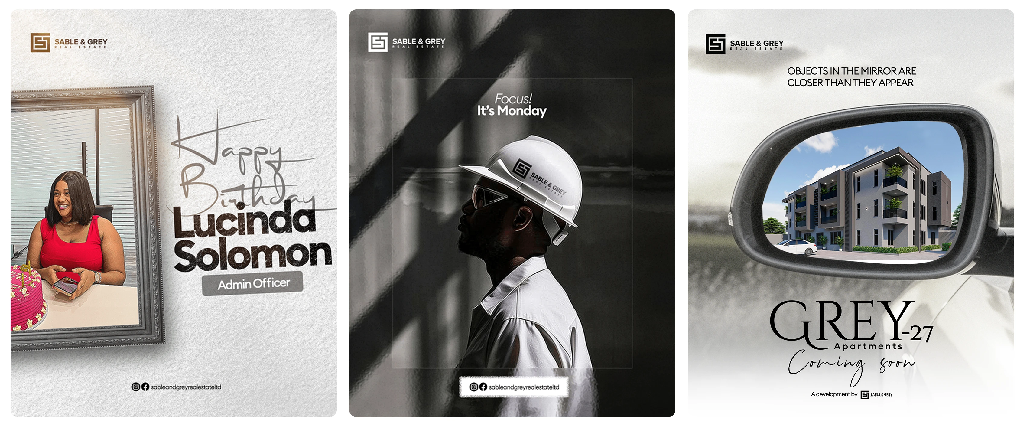 My role was to design sleek, modern graphics using their brand colors black, white, and grey to convey a sense of sophistication and exclusivity. I embraced a minimalist design approach to reflect the brand's luxurious nature using clean layouts, intentional spacing, and refined typography to communicate premium quality without clutter.
