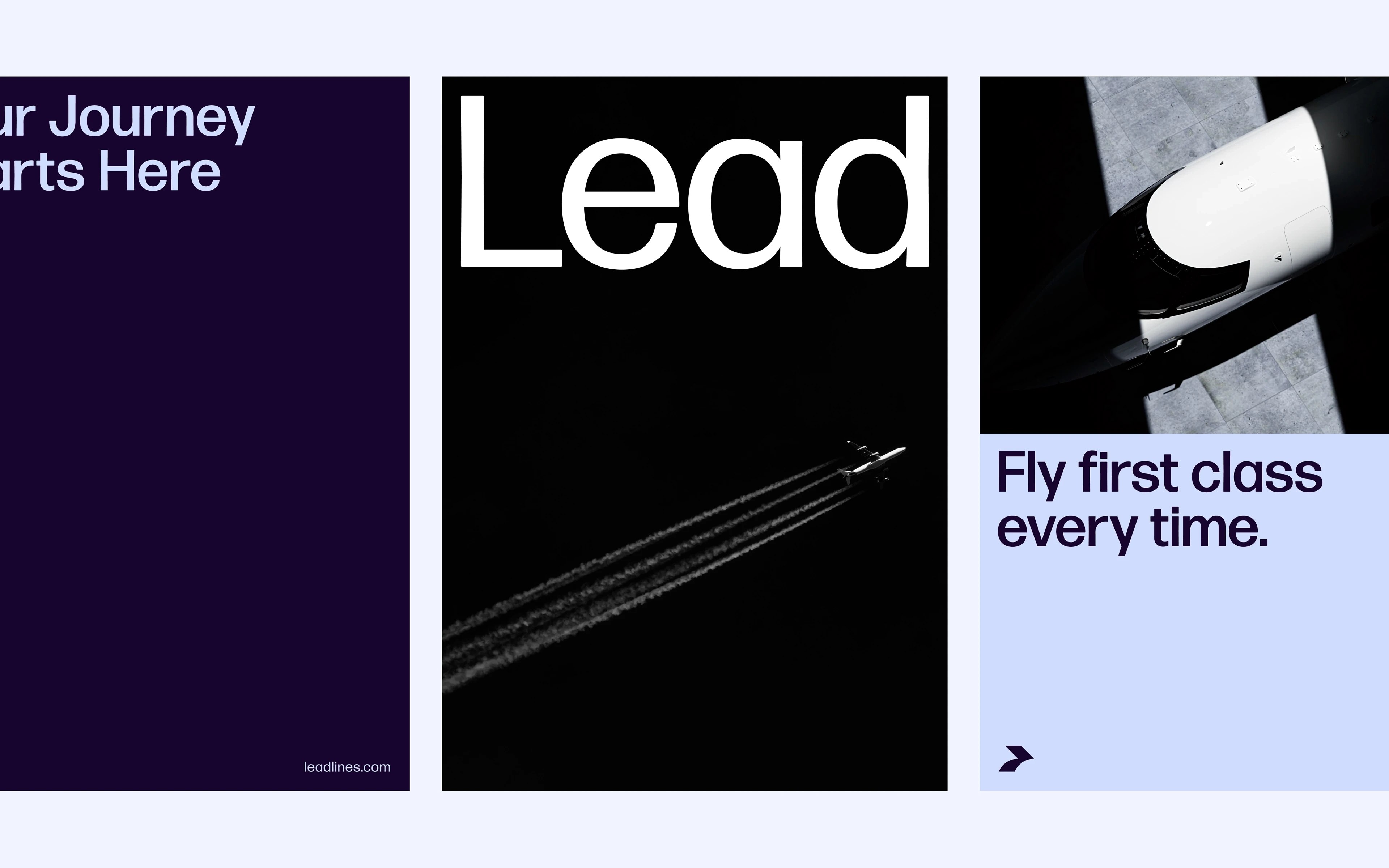 Leadlines redefines the standards of premium aviation services through an exceptional visual identity that embodies leadership, elegance, and innovation.