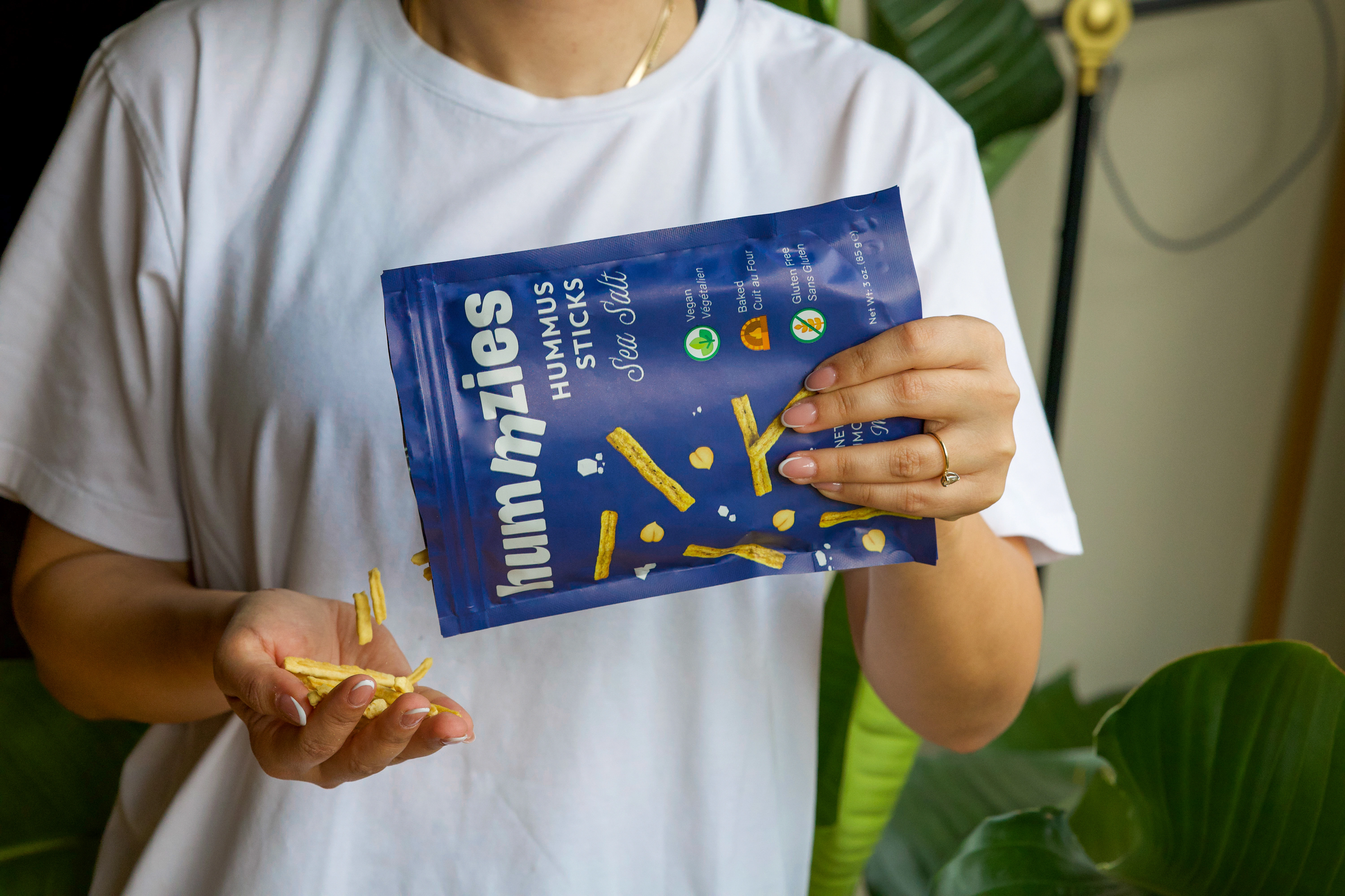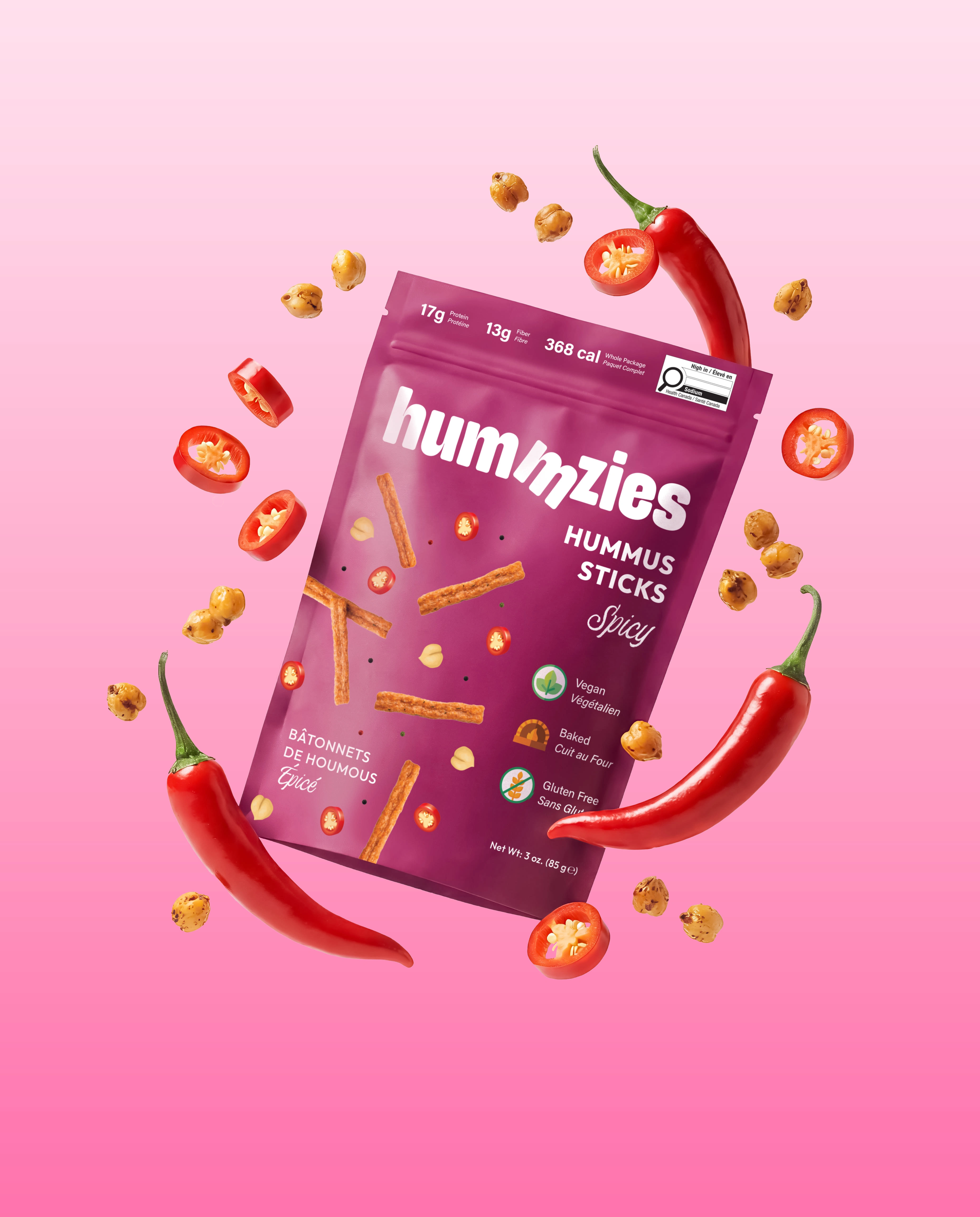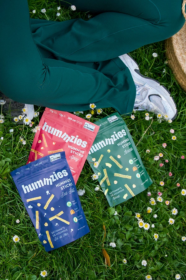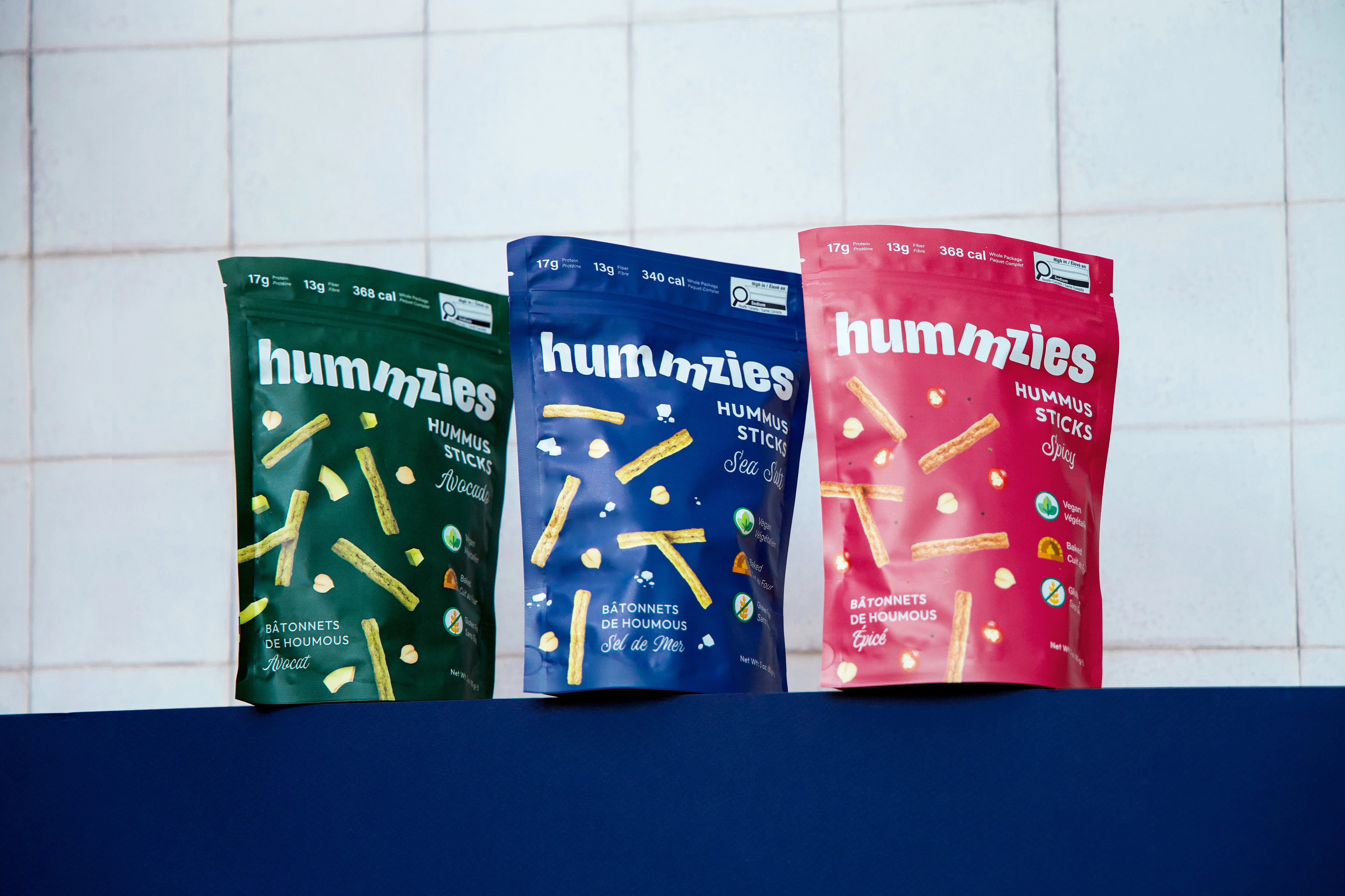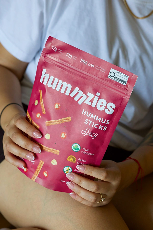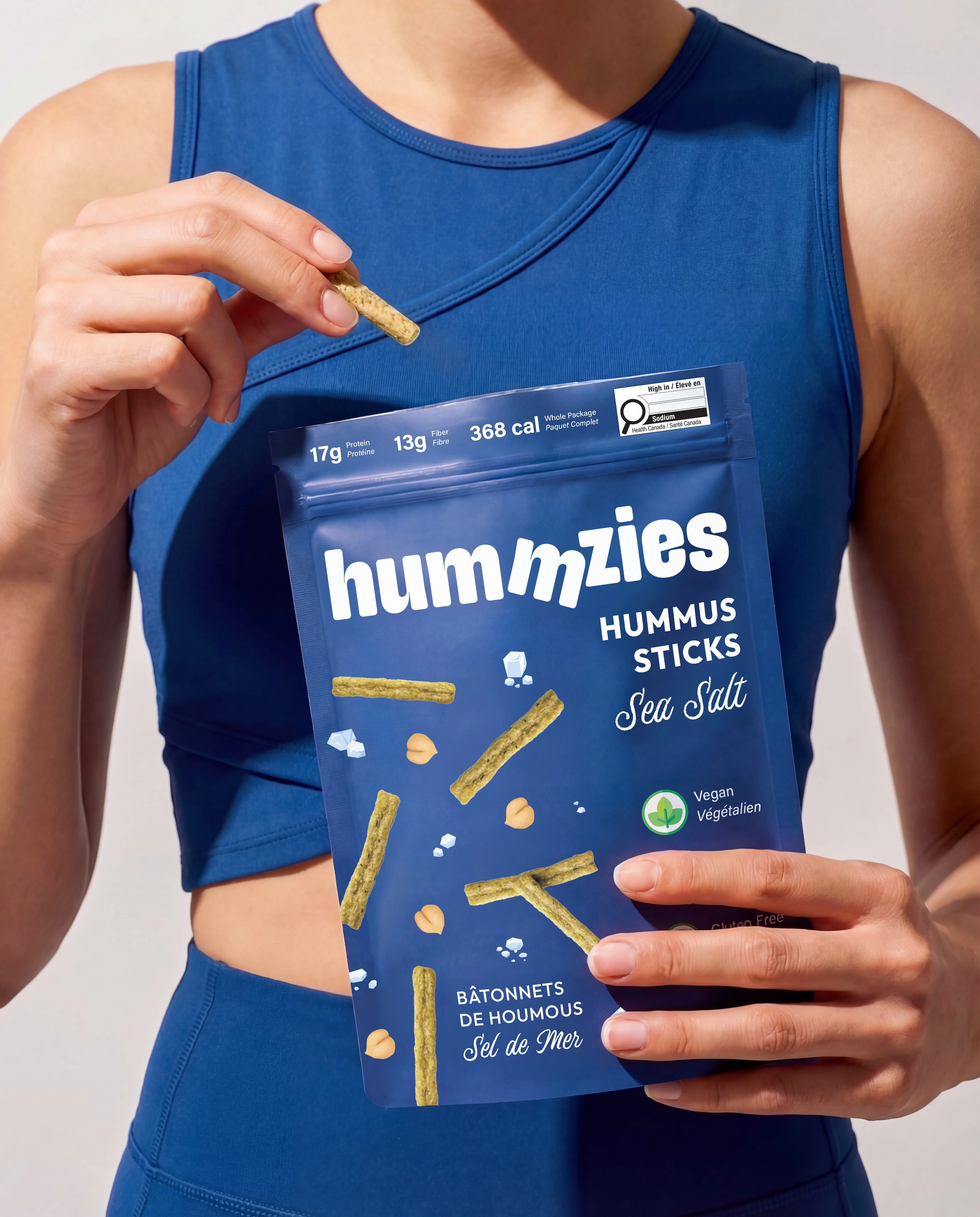 Our field research revealed a common trend among healthy snack brands: light colors, pastel tones, and predominantly white backgrounds. Hummzies intentionally breaks this pattern. We opted for rich, saturated backgrounds — deep blue, bold red, and forest green — to create instant shelf impact and visual distinction. The minimal layout allows consumers to easily identify the product and its key benefits at a glance.