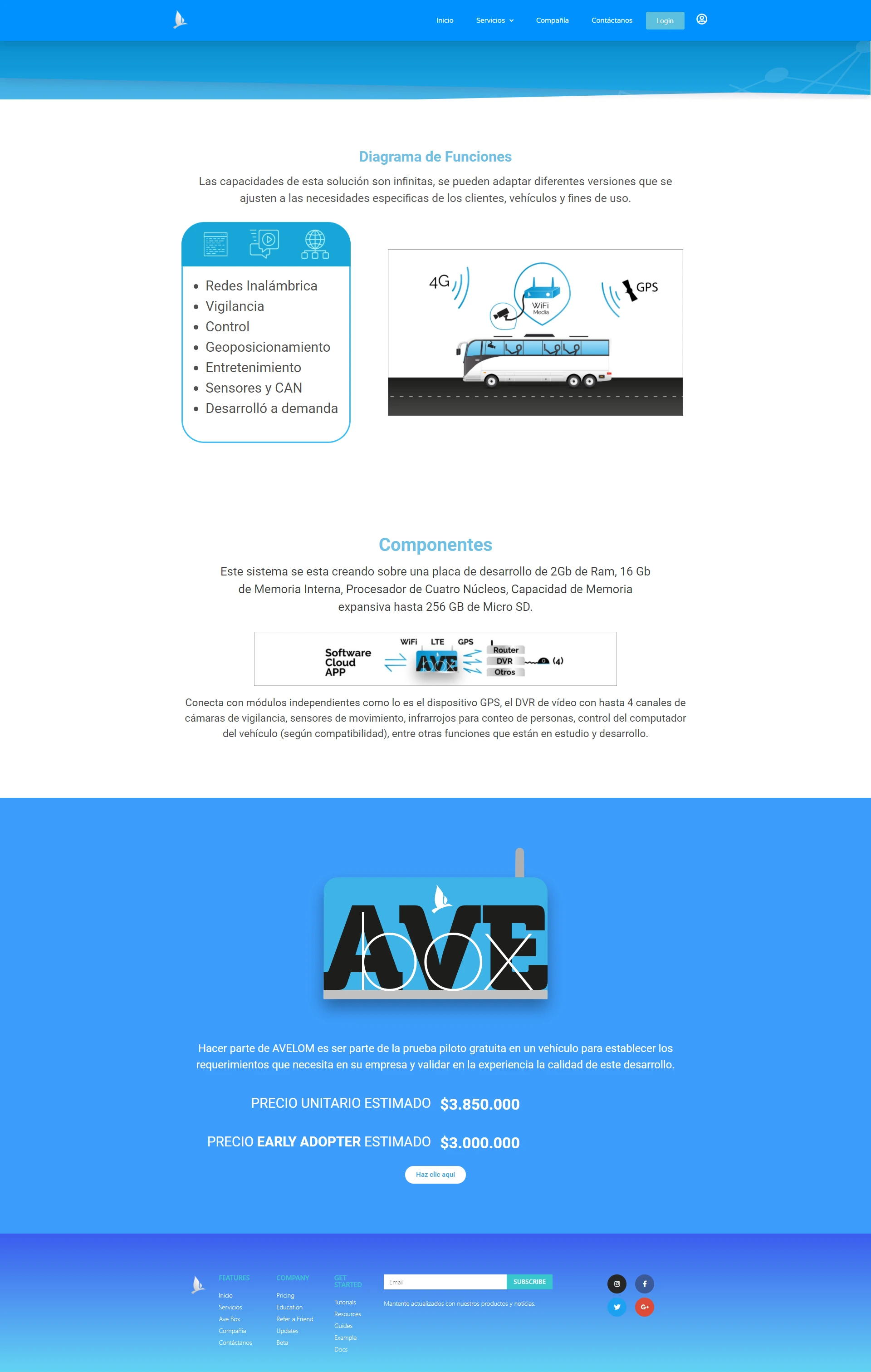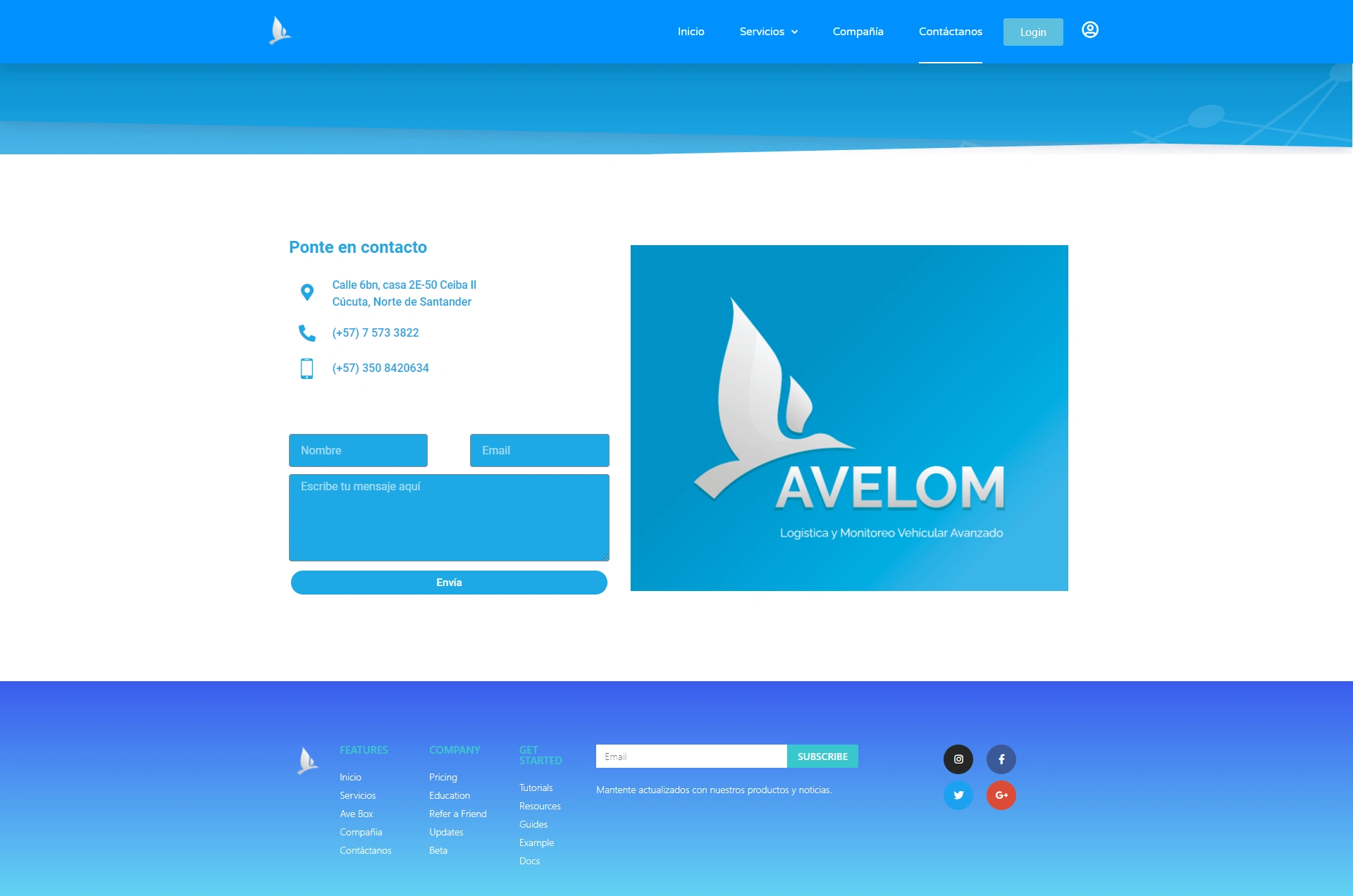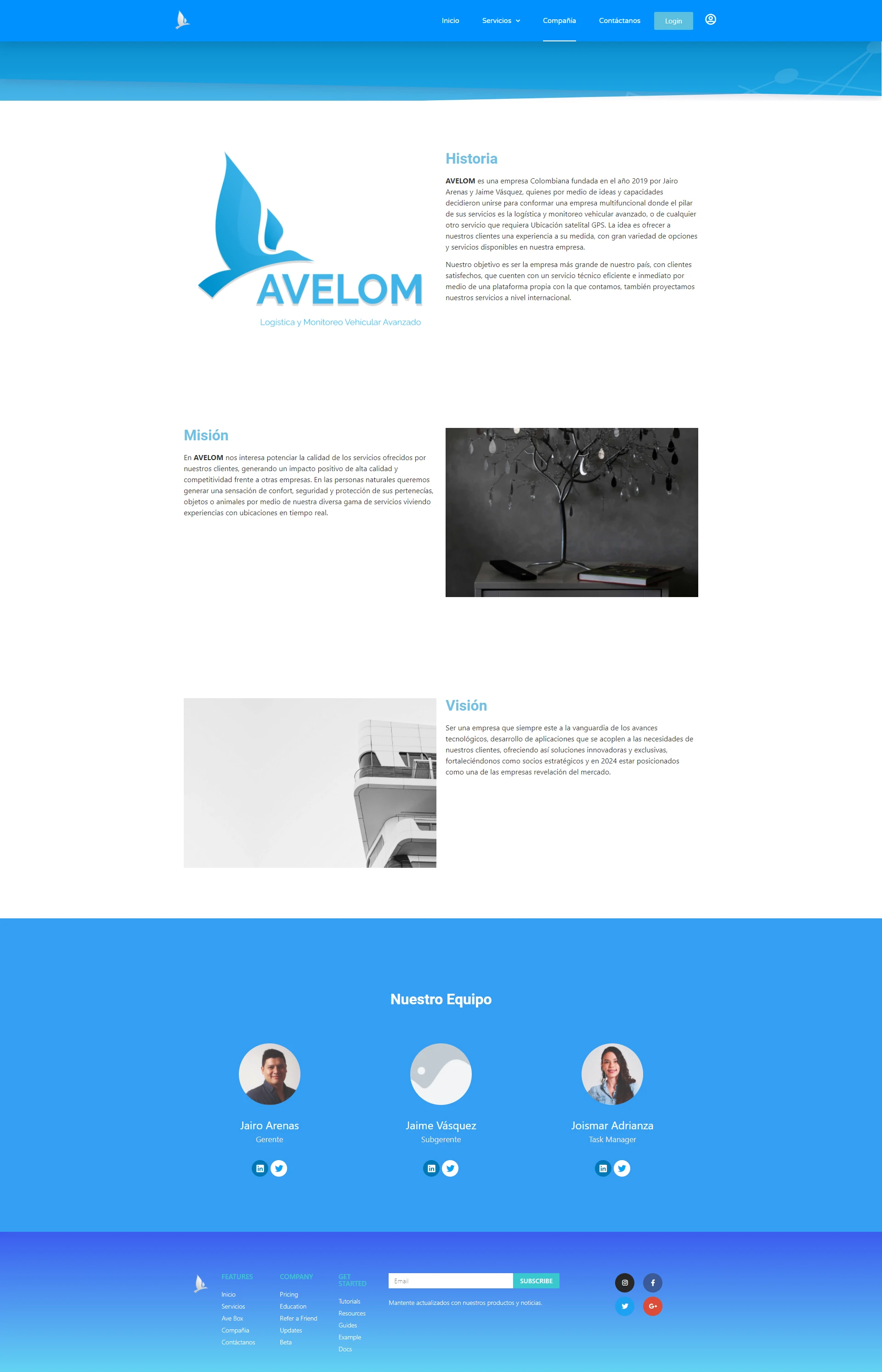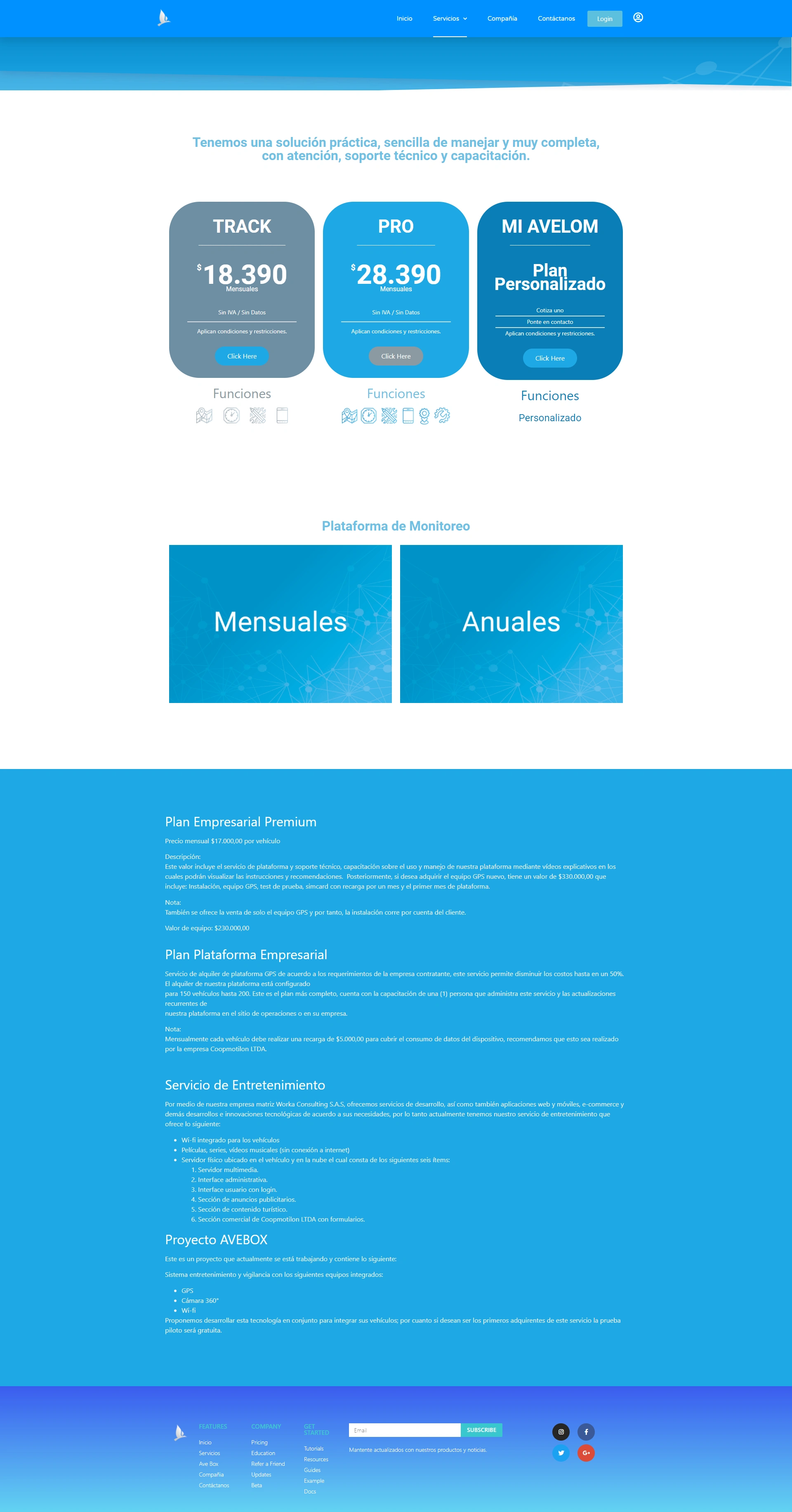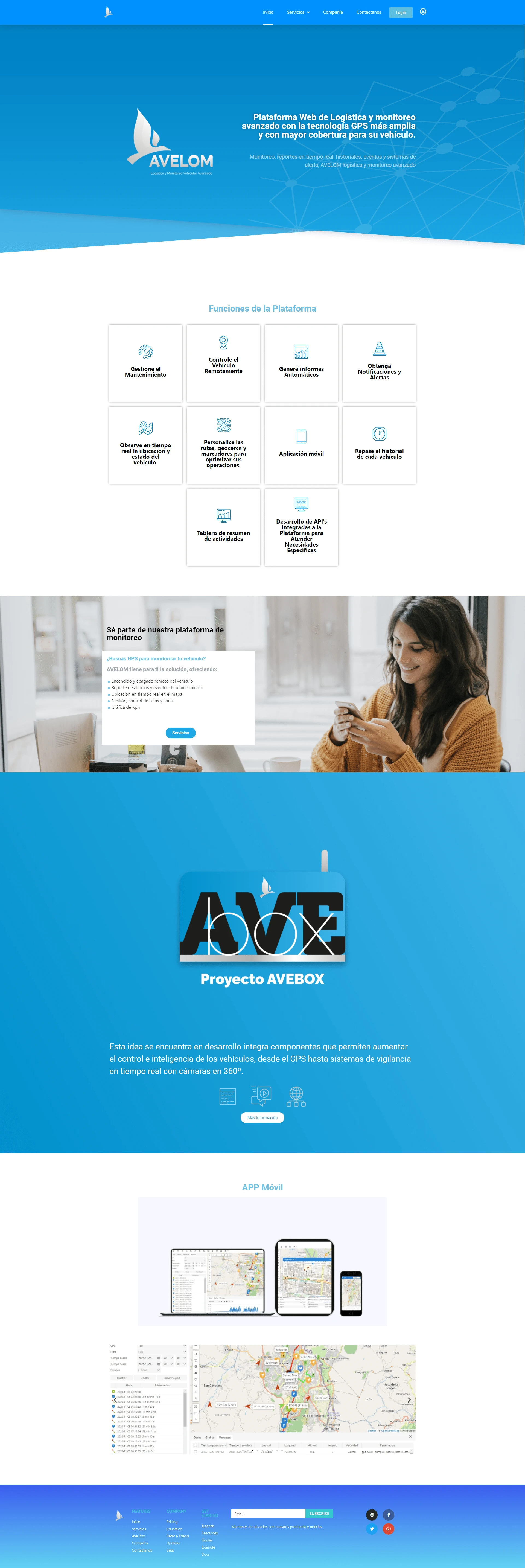 Página web creada para la maca AVELOM - Logistica y Monitoreo Vehicular Avanzado.