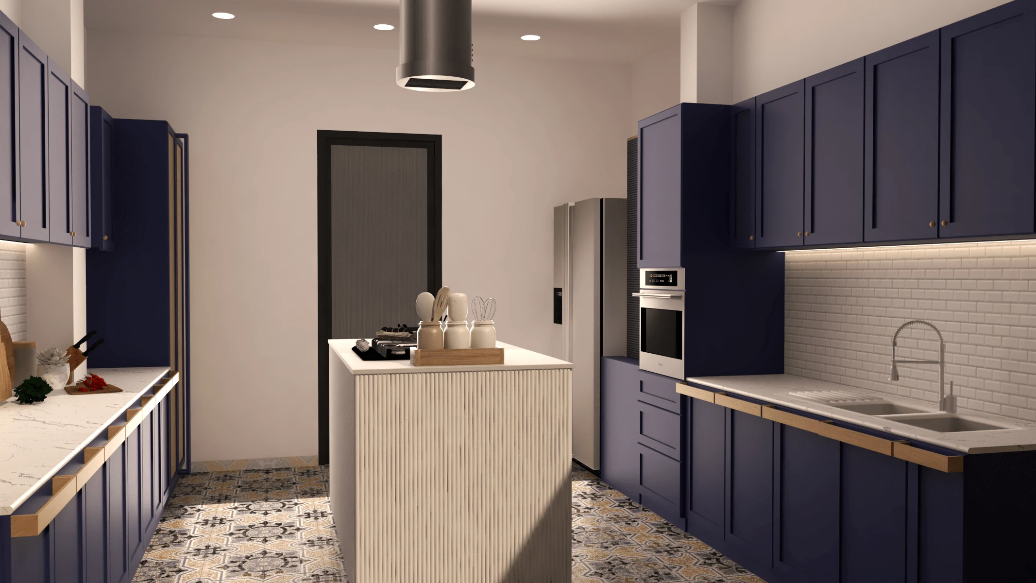 True to minimalist principles, the kitchen design embraces functionality and efficiency without compromising style. Every element serves a purpose, carefully curated to create a space that is both visually appealing and highly practical. The sleek cabinetry, adorned with handle-less doors, presents a seamless facade, allowing the eye to glide effortlessly across the room. The absence of clutter reinforces the minimalist aesthetic, enhancing the feeling of openness and calm.
