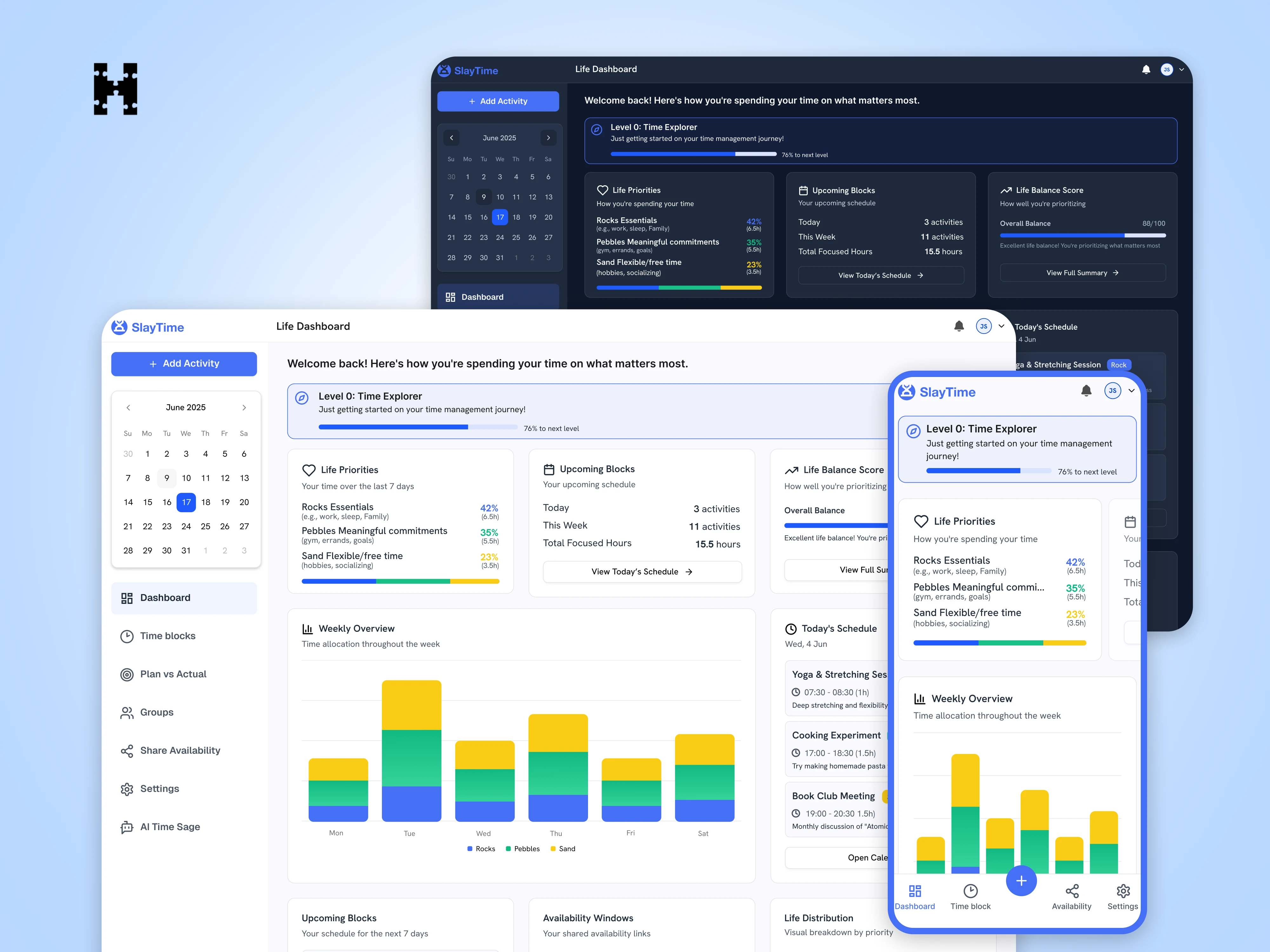 Designed the AI-powered Time Sage assistant interface that provides personalized time management guidance and recommendations. The conversational UI allows users to interact naturally with the AI, receiving smart suggestions for task prioritization, schedule optimization, and productivity improvements. The assistant analyzes user patterns, workload balance, and completion history to offer contextual advice aligned with the "Rocks, Pebbles, Sand" methodology. Clear, actionable recommendations appear in digestible formats, making AI-driven insights immediately useful. The design balances automation with user control, ensuring the AI enhances rather than dictates decision-making.