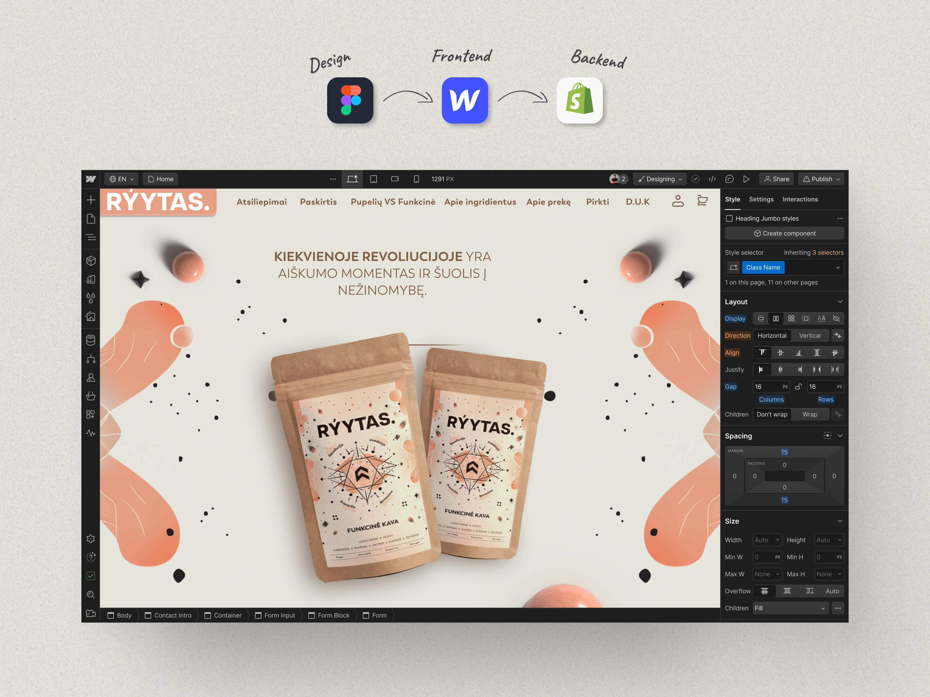 Ryytas, a premium Lithuanian coffee brand, required a bilingual (English/Lithuanian) e-commerce platform that combined Webflow’s design flexibility with Shopify’s robust backend. The project involved creating a membership-driven experience with localized content, seamless integrations, and performance optimization to reflect the brand’s artisanal quality.