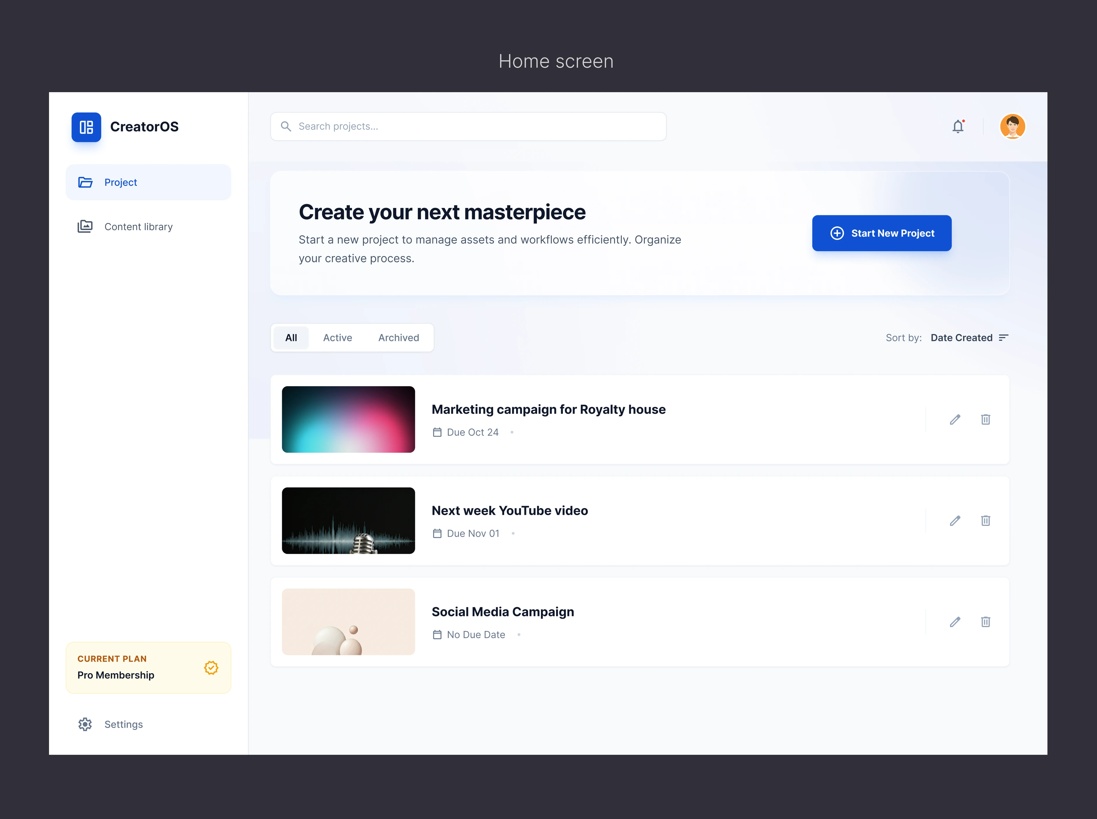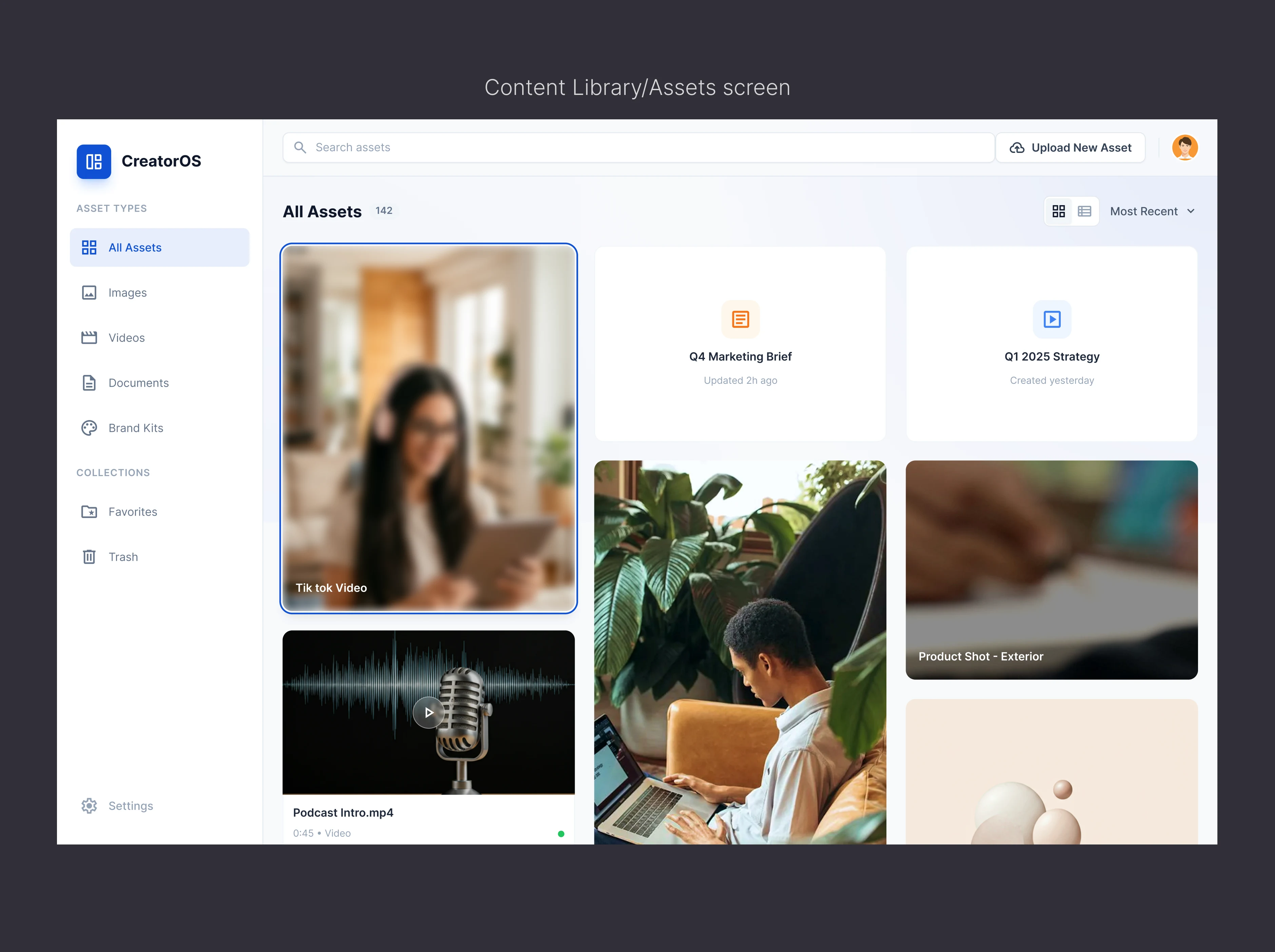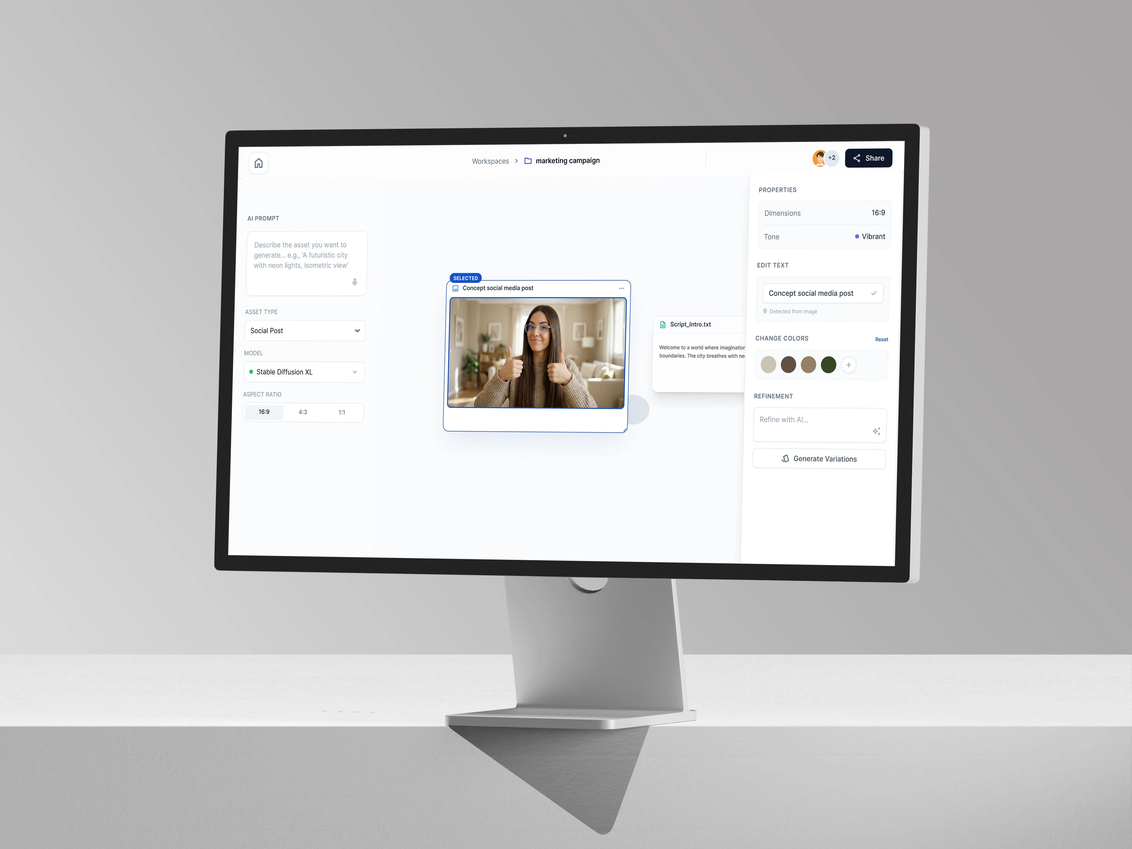 Creators often rely on disconnected tools to generate content, manage assets, edit variations, and export final outputs. While AI has accelerated content creation, it has not solved the fragmentation of the creative workflow itself. This results in frequent context switching, broken creative momentum, and poor visibility into how assets evolve within a project. The goal was to design a system that supports the full lifecycle of creative assets while keeping creators focused on execution.